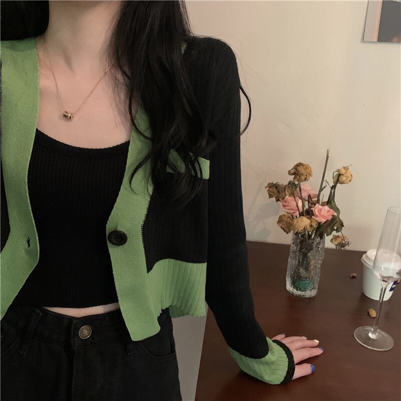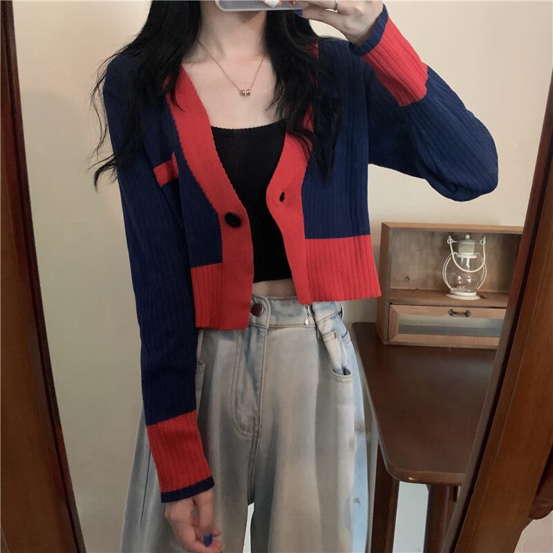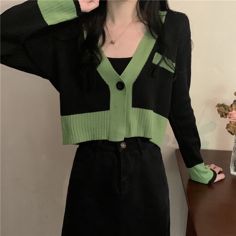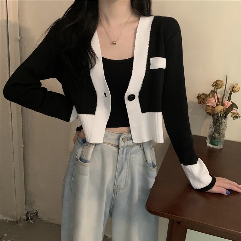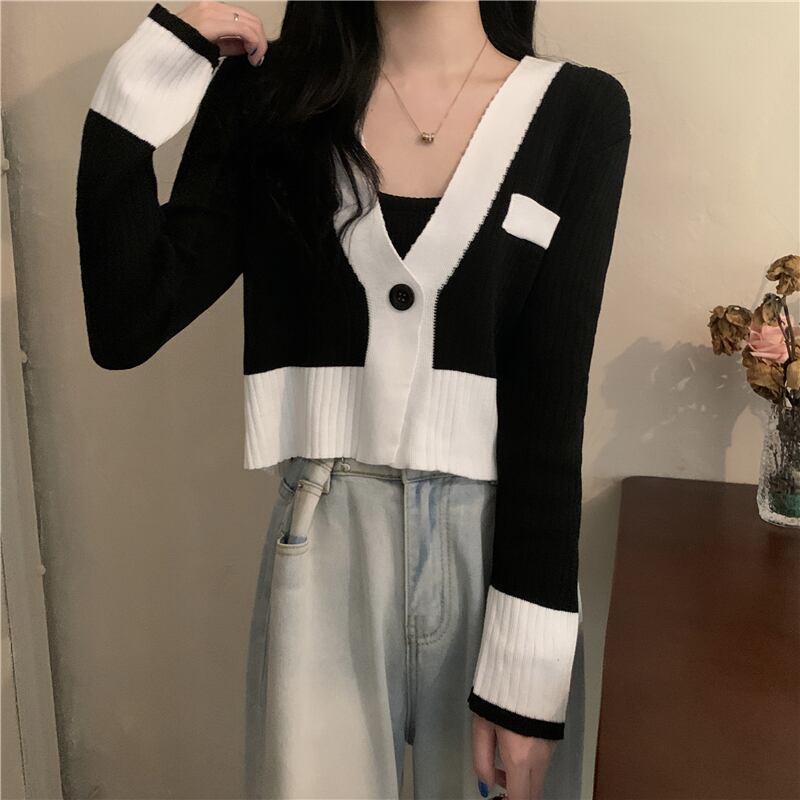 香港風 レトロ 初秋 Vネック ニット カーディガン レディース コート ハイウエスト ショート デザイン 長袖 BM風 シック トップス ハイウェスト ロング オータム 秋物 7460013249025257 | framboise21