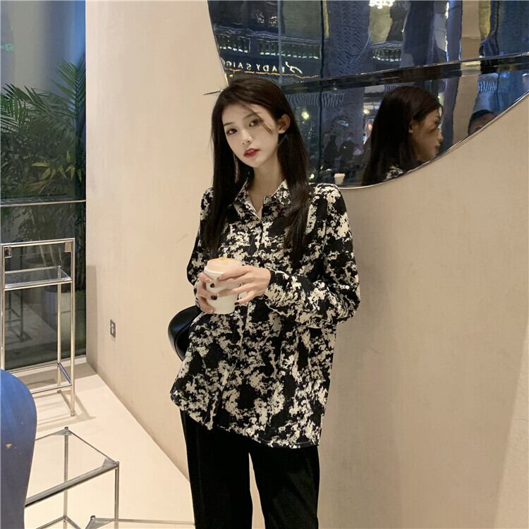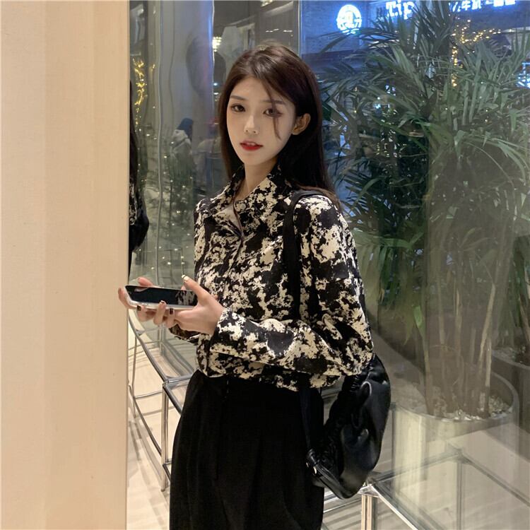 レトロな香港風味の花柄シャツ女性の秋のデザイン小さなスタイルの長袖トップシャツ 2022 初秋の新しいスタイル ロング レッド オータム 秋物 7460026533156728 | framboise21