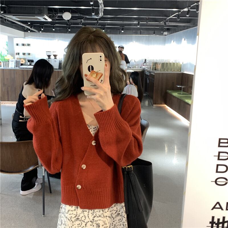グリーン ショート ソフト ワクシー セーター レディース 秋冬 ニット カーディガン コート 怠惰なスタイル ルーズ アウターウェア 長袖 Vネック トップ ロング オータム 秋物 ウィンター 冬物 7460057624567256 | framboise21