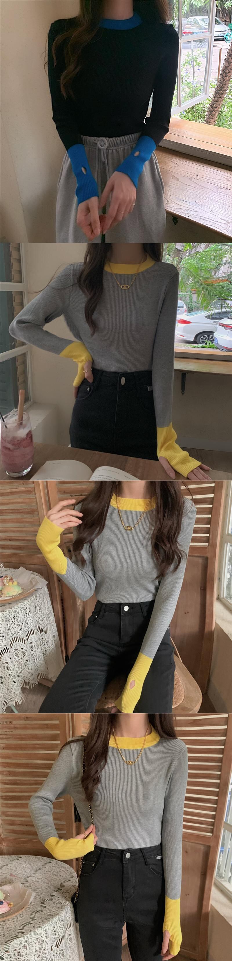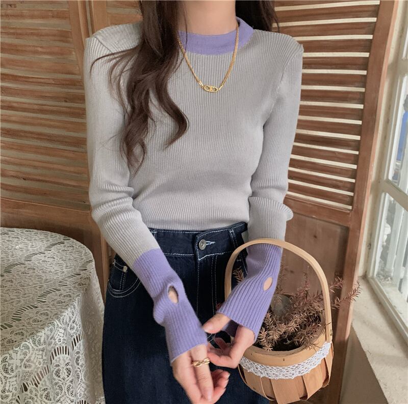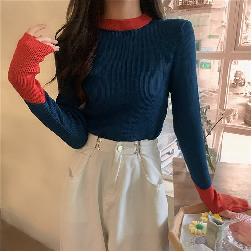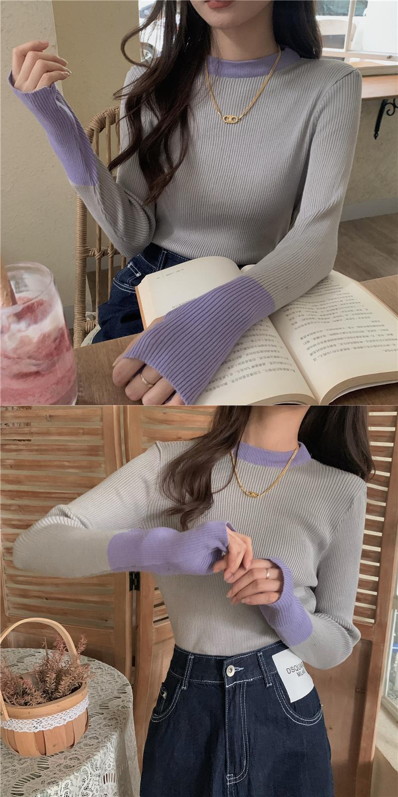 配色セット指長袖ニットトップスレディースデザインセンスニッチグレーボトムスシャツ秋冬インナーセーター ロング オータム 秋物 ウィンター 冬物 7460040154372230 | framboise21
