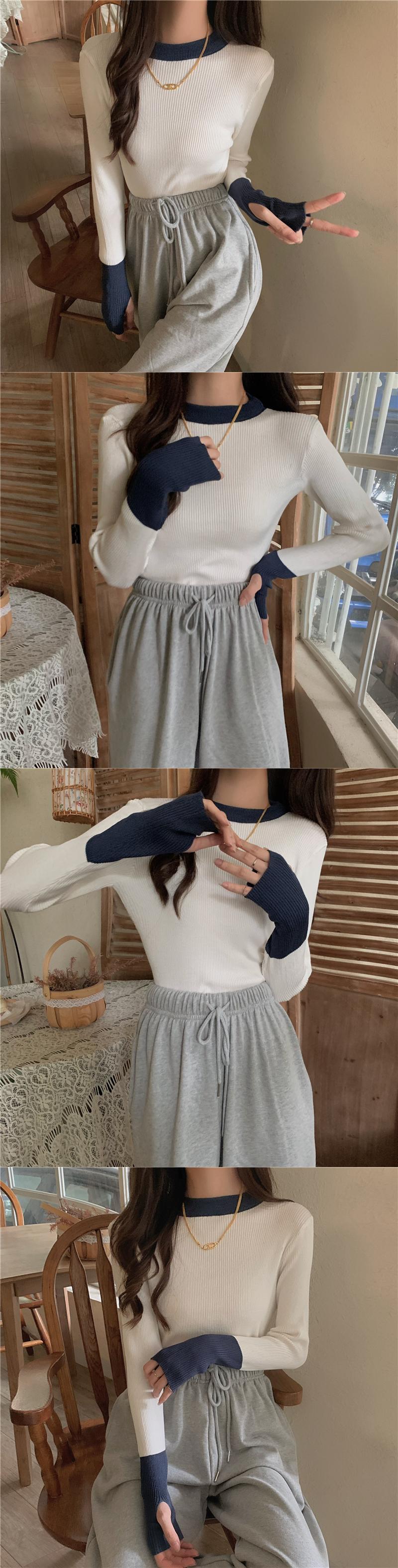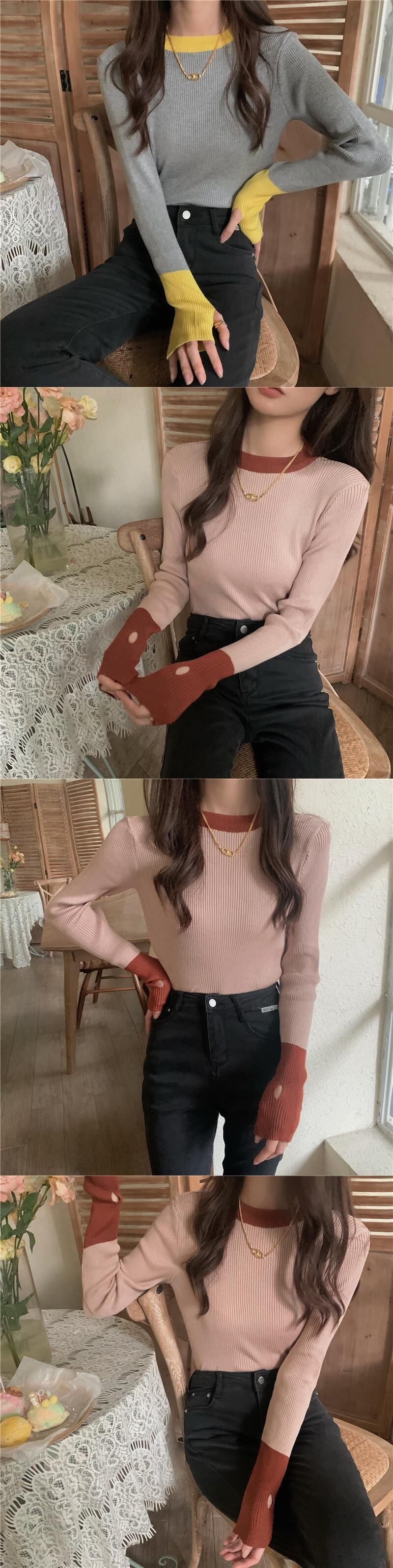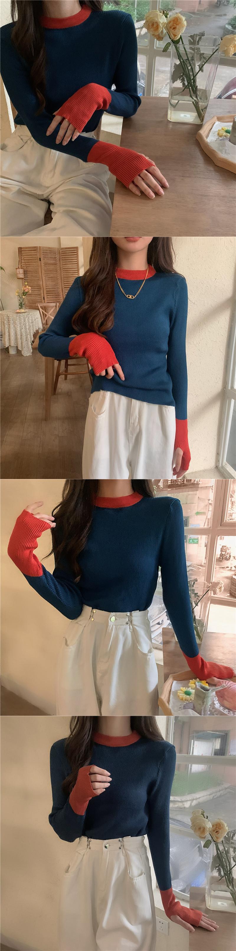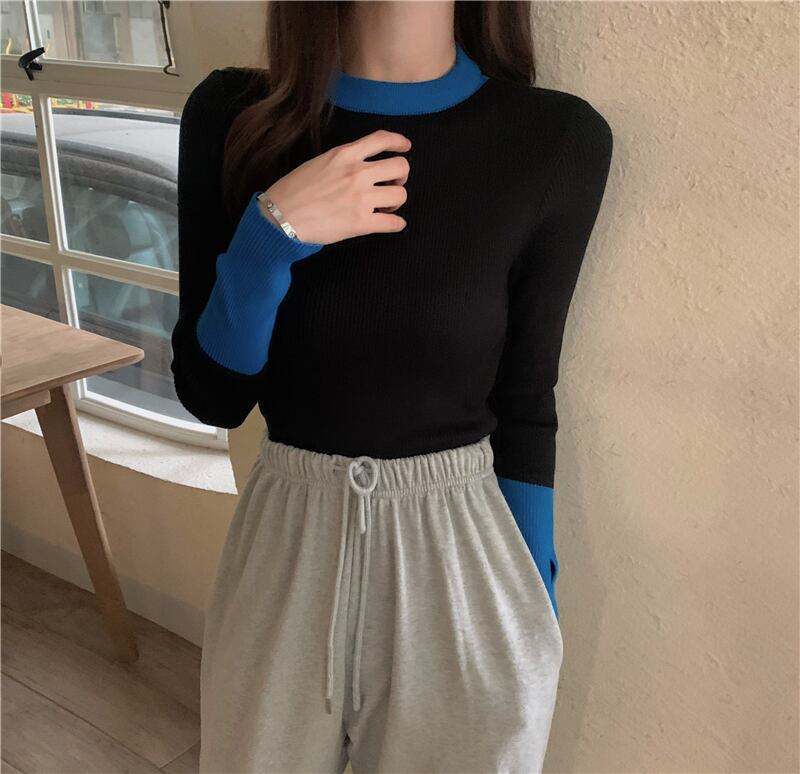 配色セット指長袖ニットトップスレディースデザインセンスニッチグレーボトムスシャツ秋冬インナーセーター ロング オータム 秋物 ウィンター 冬物 7460040154372230 | framboise21