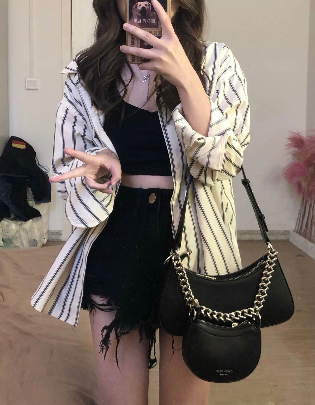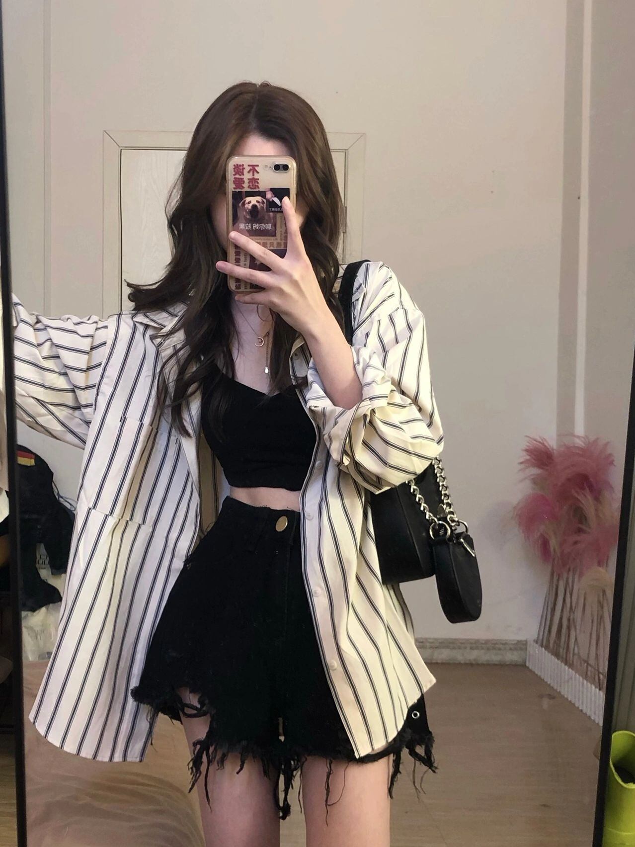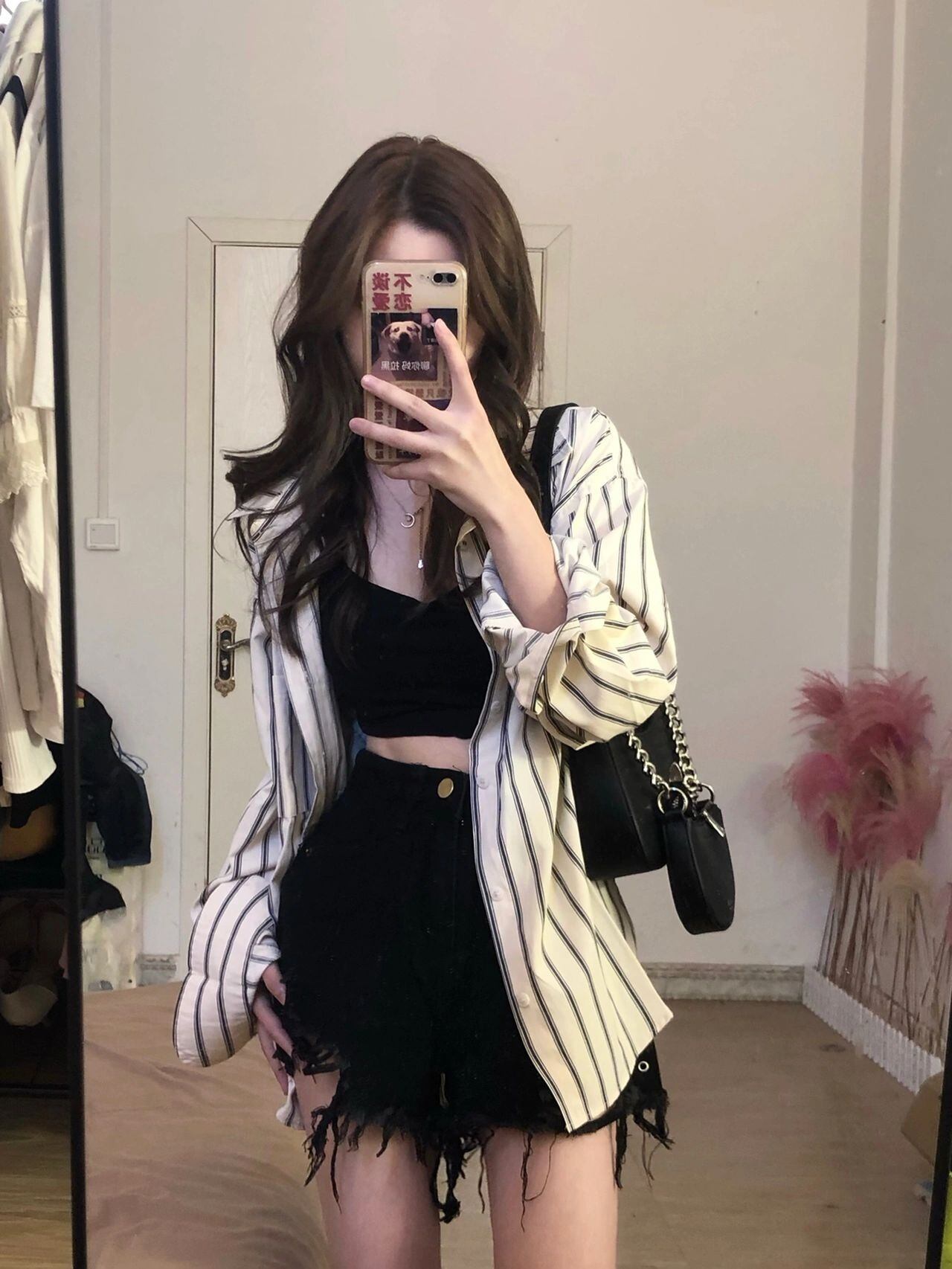 ストライプ シャツ ジャケット レディース 2022年秋 新作 レトロ デザイン センス ゆったり インナー レイヤード 長袖 ボトムス トップス ロング レッド オータム 秋物 746008119086481 | framboise21