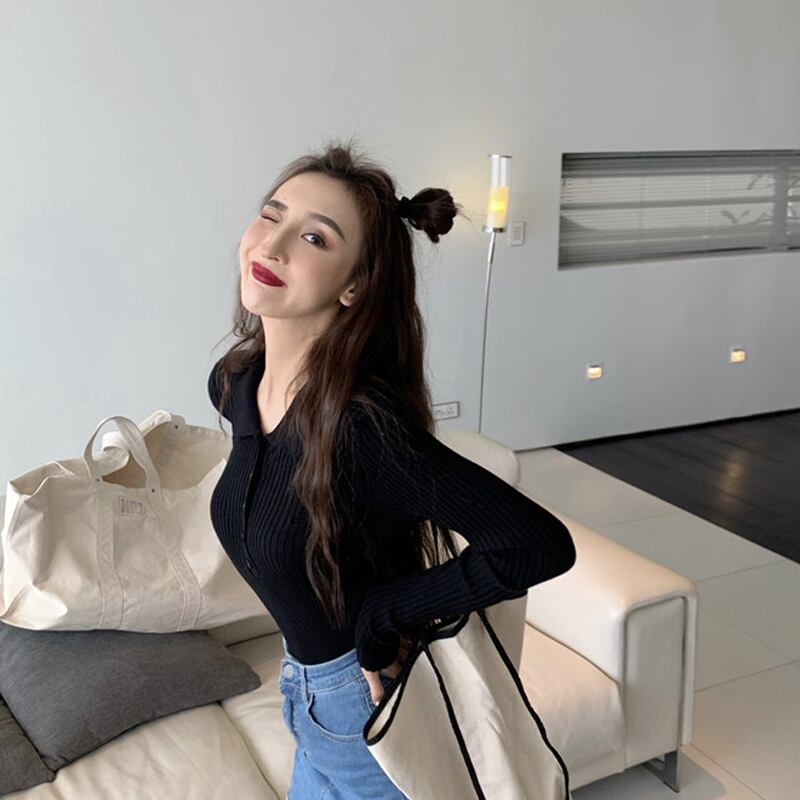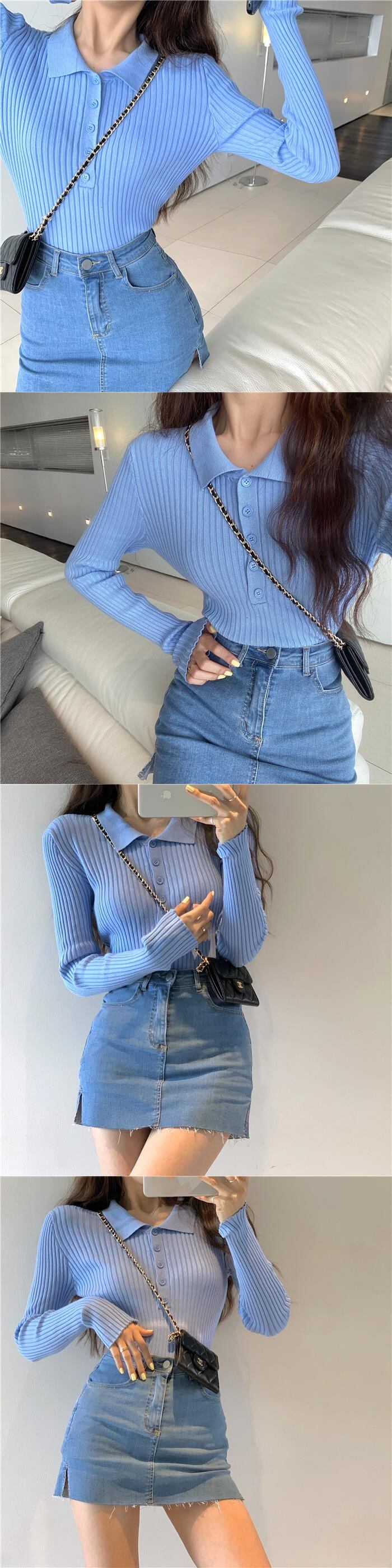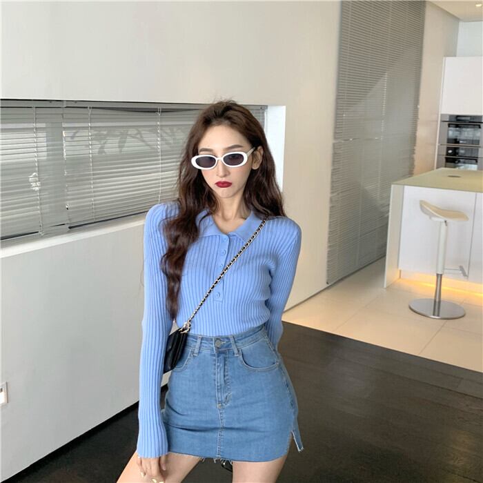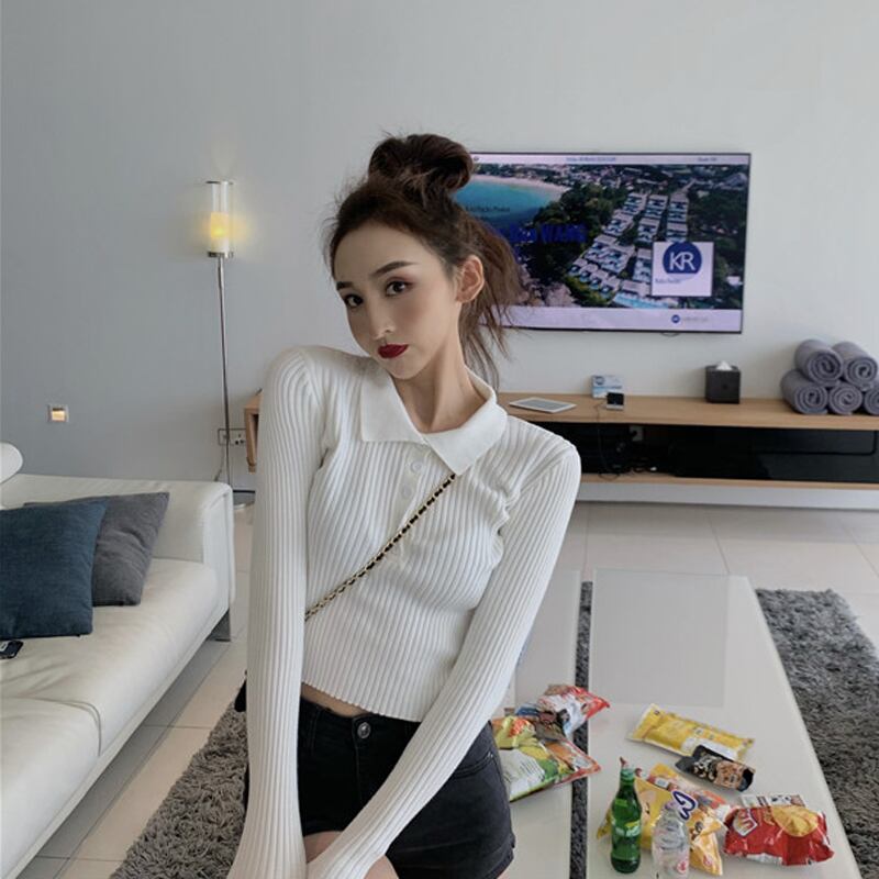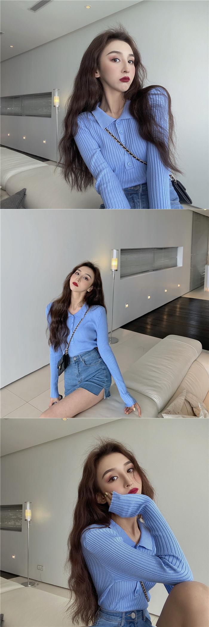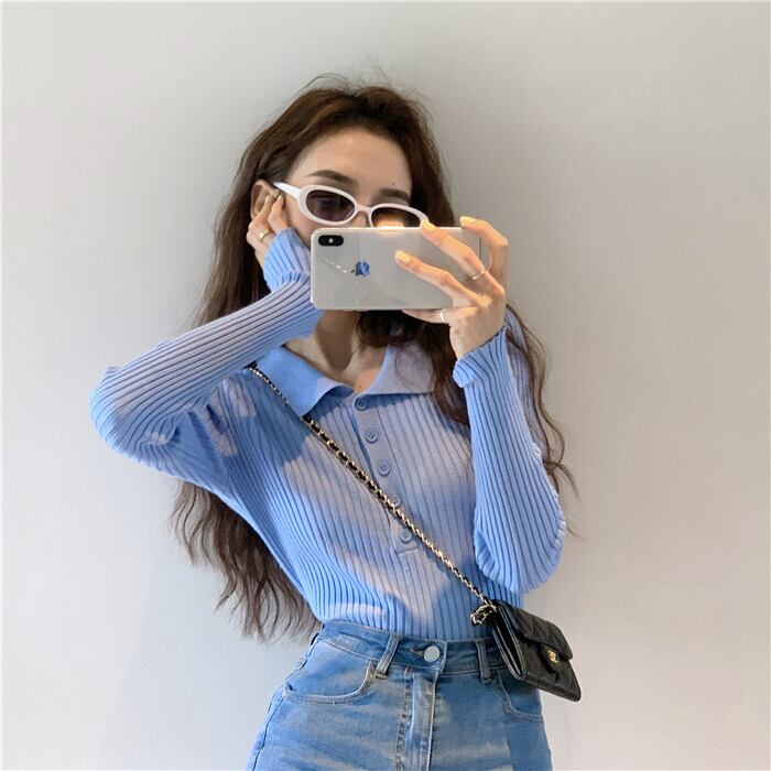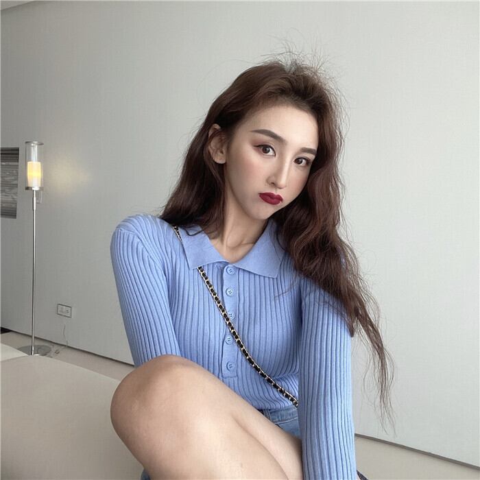 ポロカラー ボトムス シャツ レディース 秋冬 ニットセーター デザイン 洋風 スリムフィット オールマッチ ピット ストライプ 長袖 トップス ロング オータム 秋物 ウィンター 冬物 7460013463558119 | framboise21