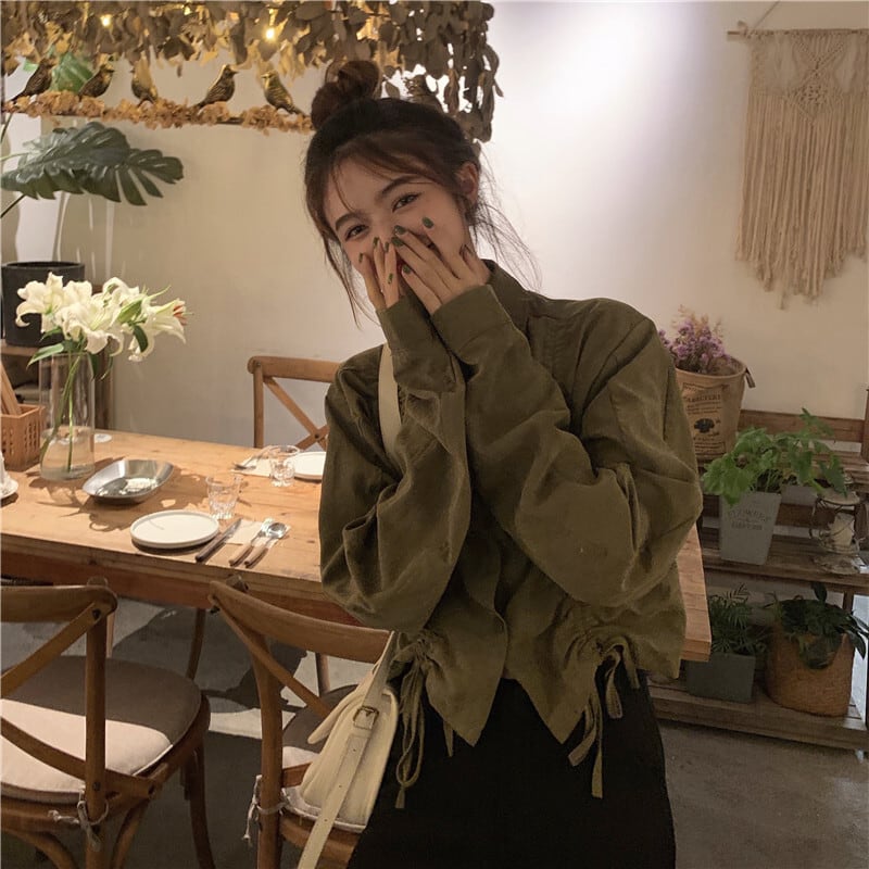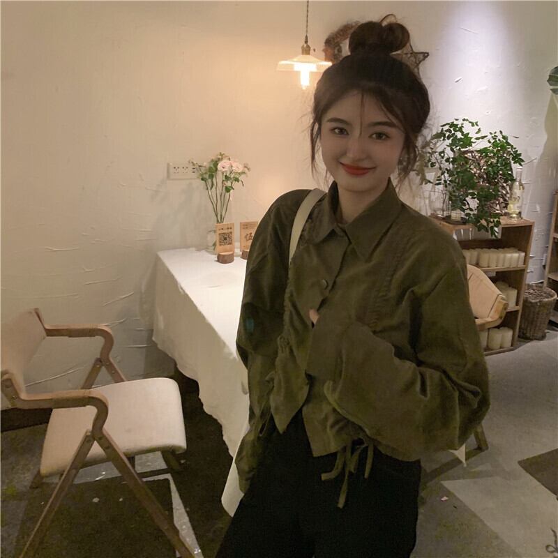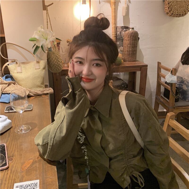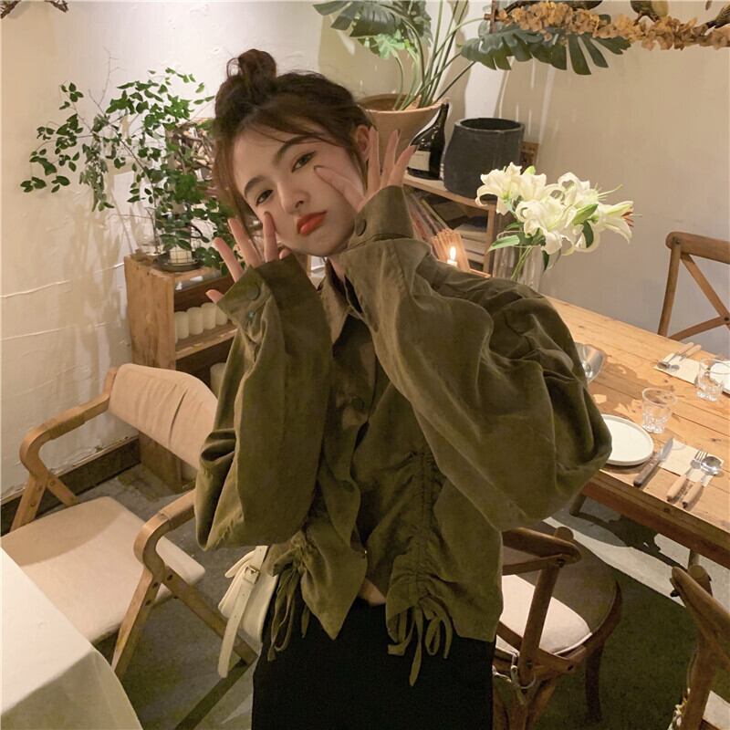巾着ショート シャツ ジャケット女性の 2022 初秋の新しいレトロな香港スタイル デザイン ニッチ シックなトップ長袖 ロング オータム 秋物 7460070073874948 | framboise21