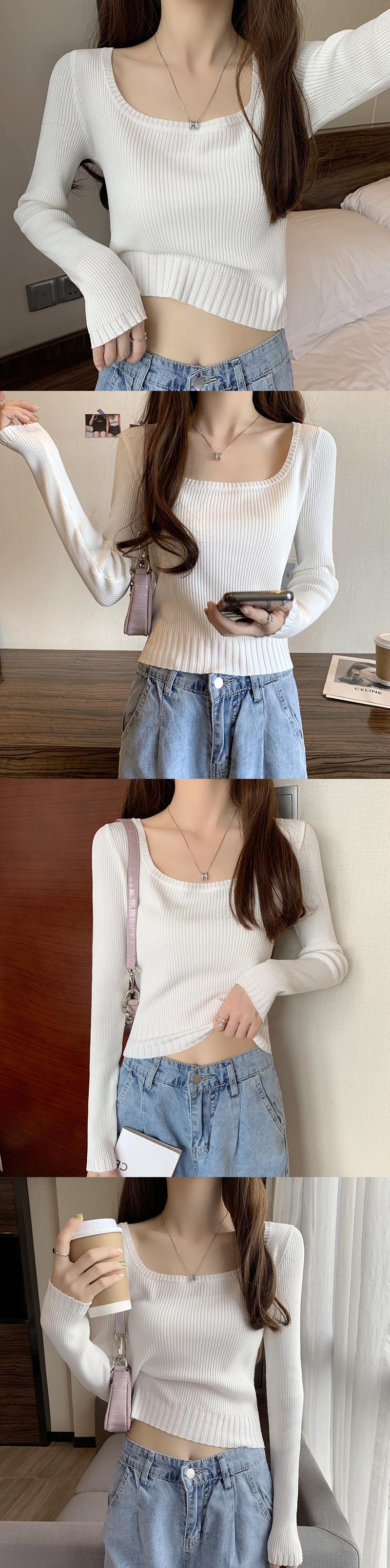 白 ニット ボトムス シャツ レディース 春秋 薄手 スクエアカラー 半袖 Tシャツ タイトUネック ショート 長袖 トップス 冬 ロング ホワイト スプリング 春物 オータム 秋物 ウィンター 冬物 Tシャツ スクウェア 7460056061029032 | framboise21