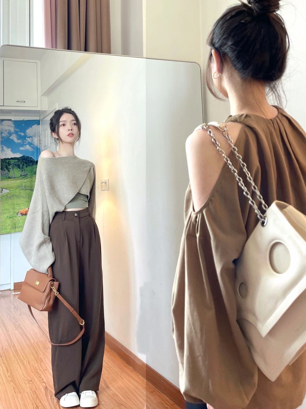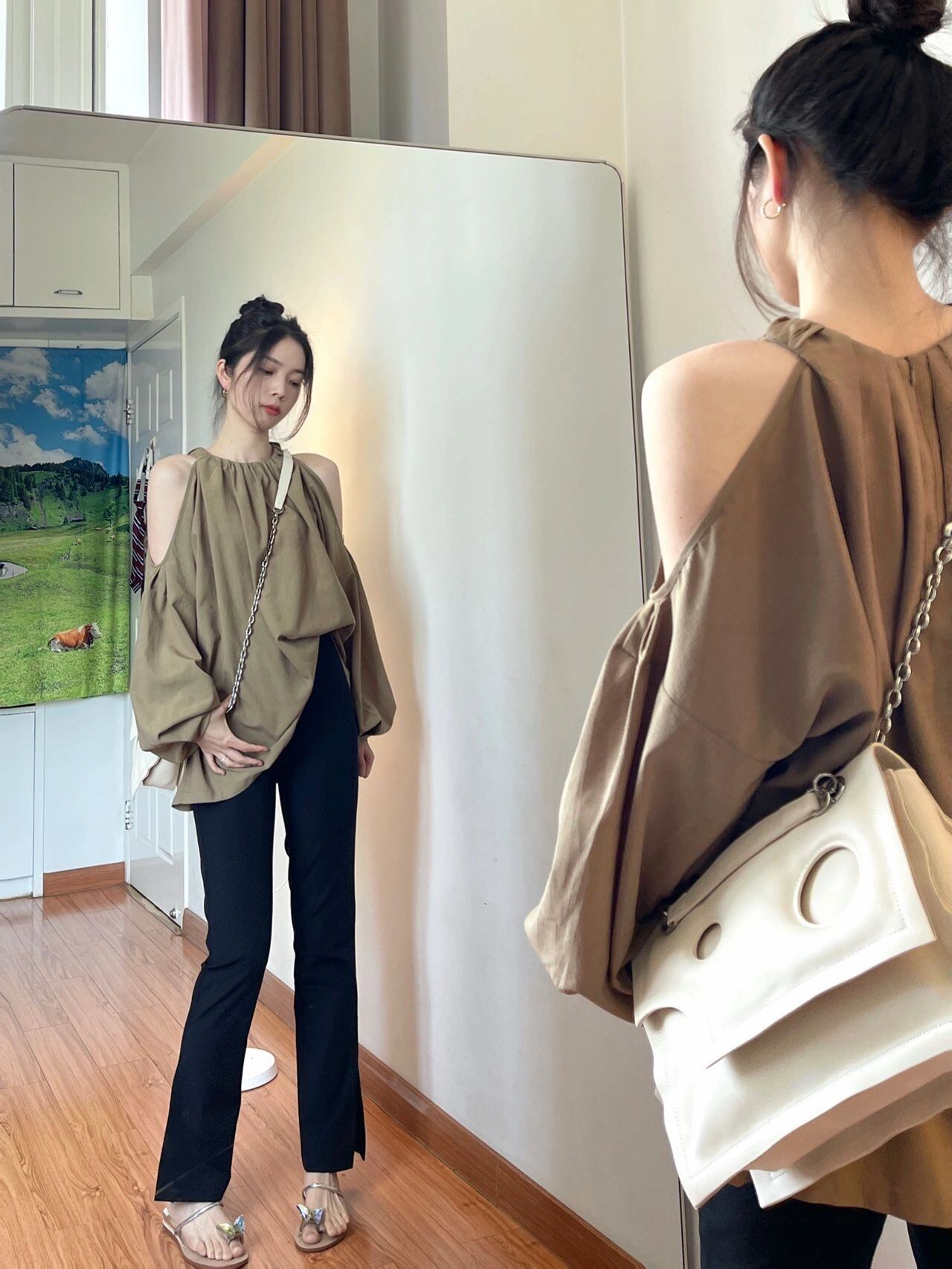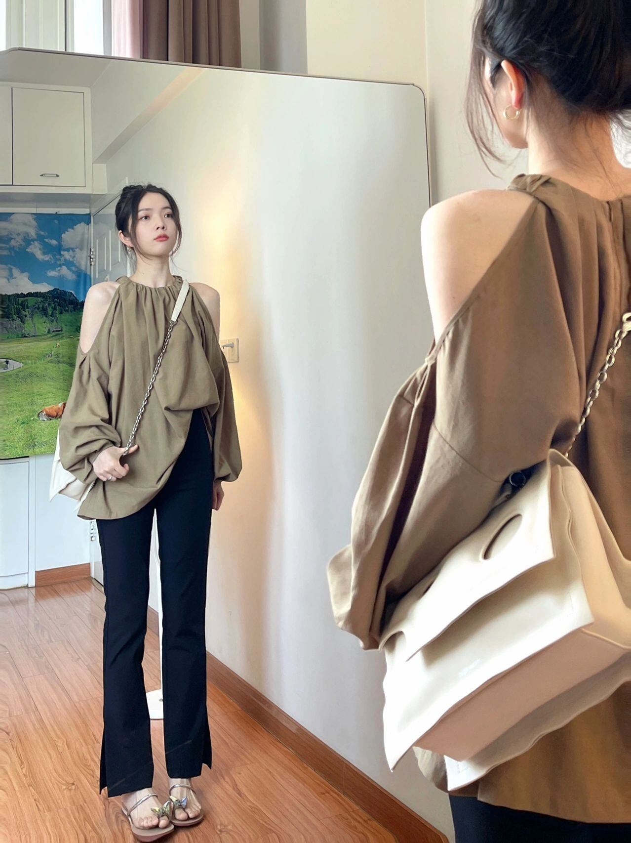カーキ長袖シャツ女性の 2022 年秋の新しいシックなデザインのファッション緩い肩肩日焼け止めトップ夏 ロング サマー 夏物 オータム 秋物 7460015812137344 | framboise21