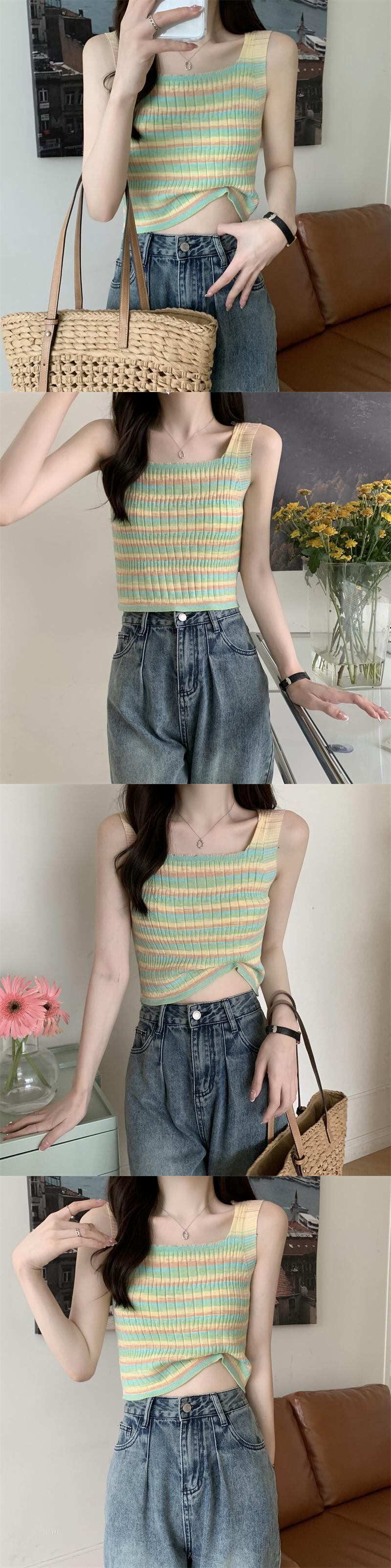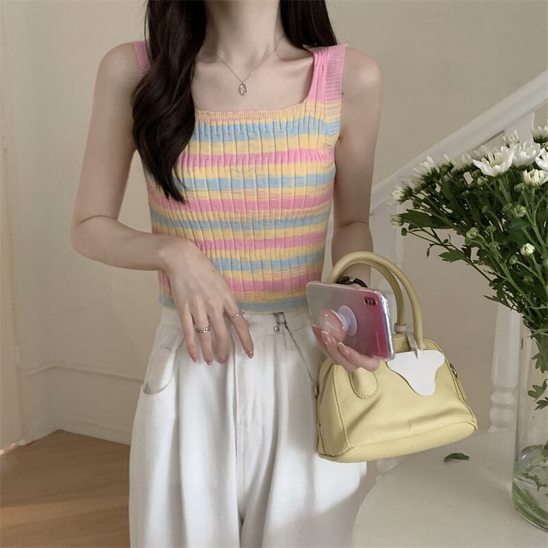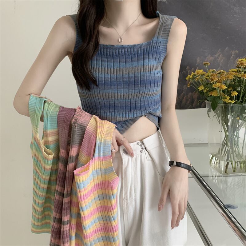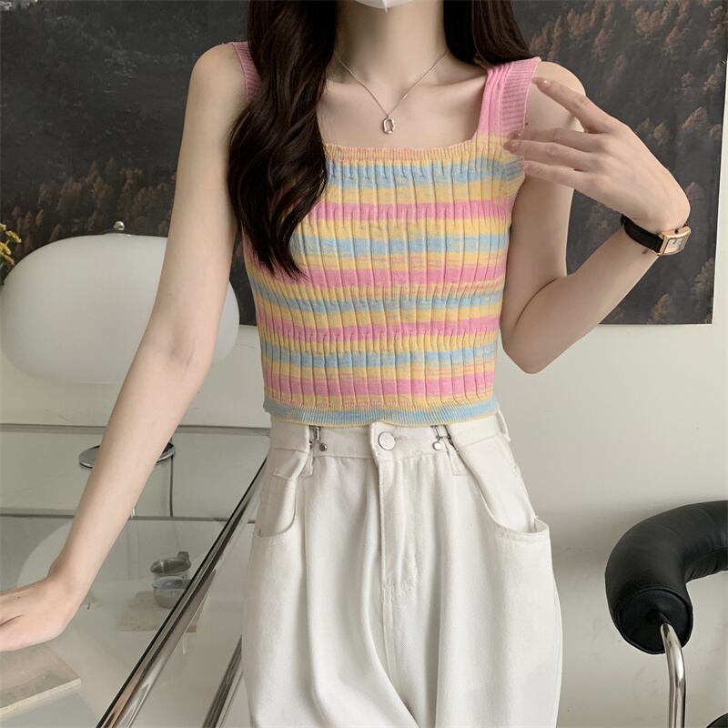 Hyun Ya スタイル デザイン感 ニッチ レインボー ストライプ キャミソール ショート ボトムス トップス ミルク 甘夏 アウター 大人ガーリー スウィート キュート カジュアル サマー 夏物 7460092391299243 | framboise21