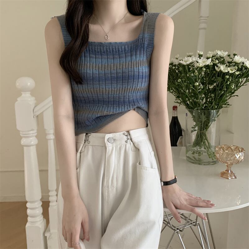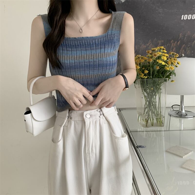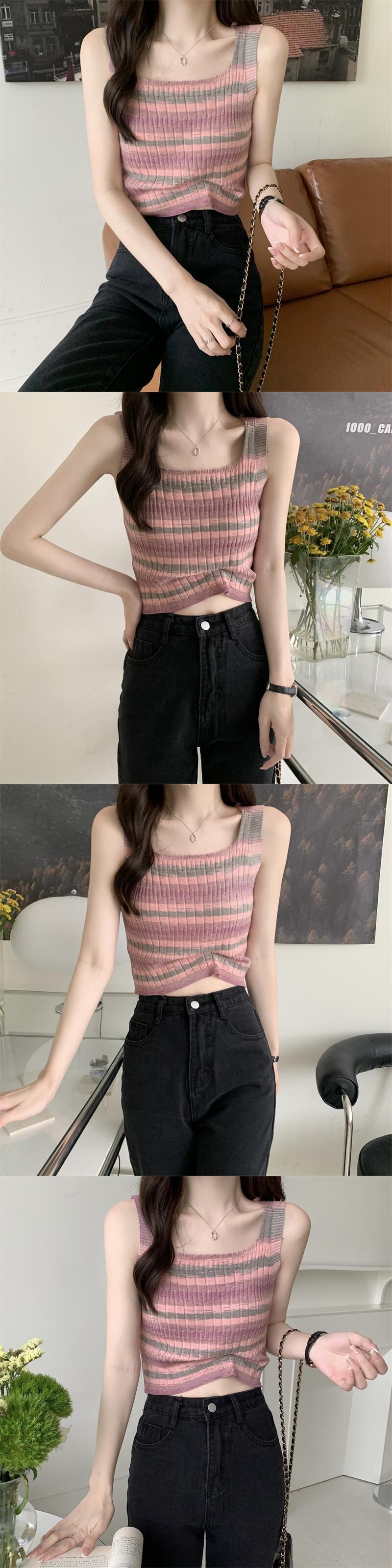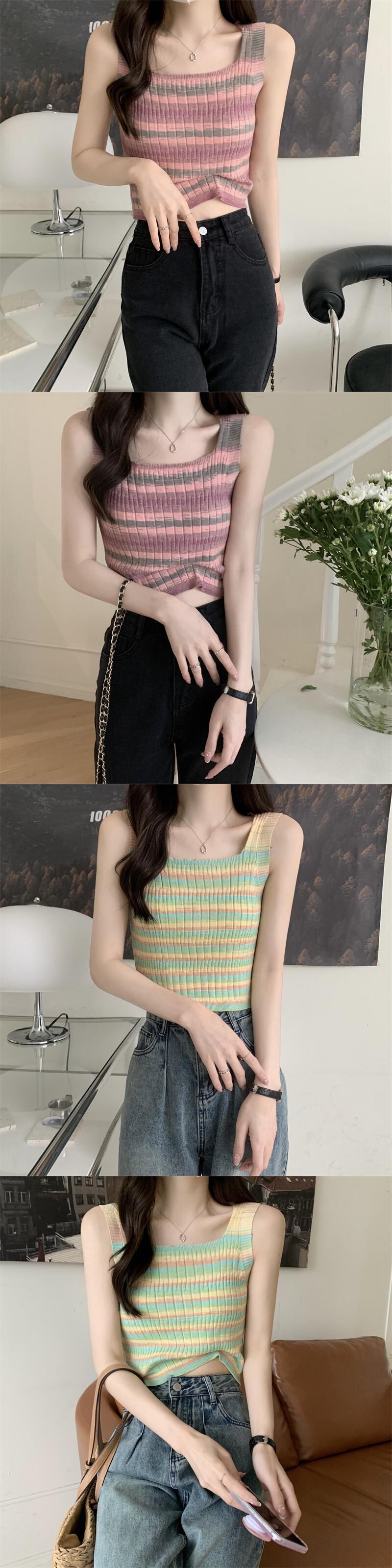 Hyun Ya スタイル デザイン感 ニッチ レインボー ストライプ キャミソール ショート ボトムス トップス ミルク 甘夏 アウター 大人ガーリー スウィート キュート カジュアル サマー 夏物 7460092391299243 | framboise21