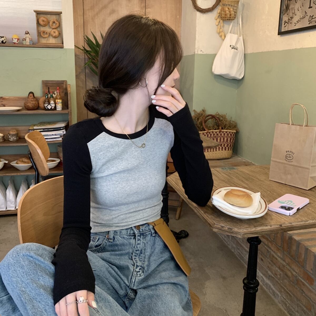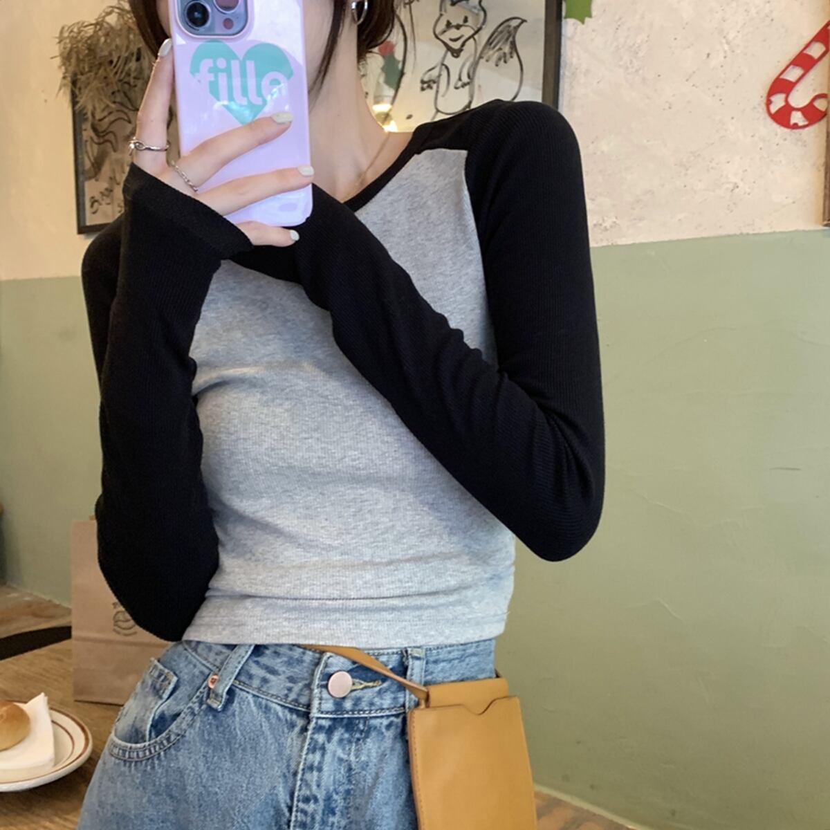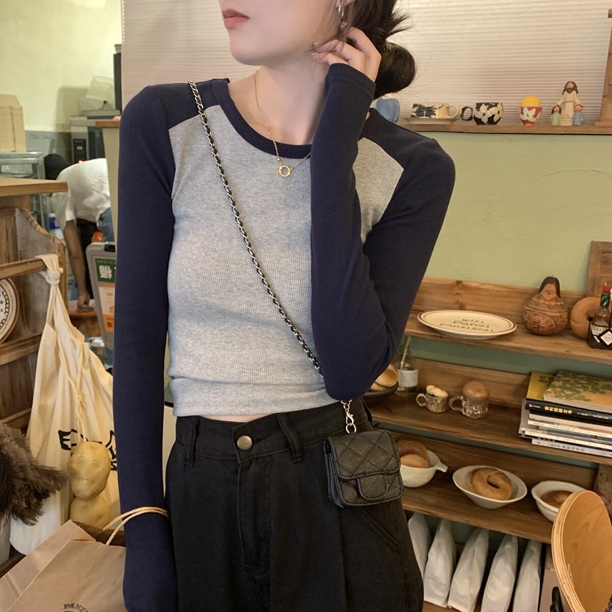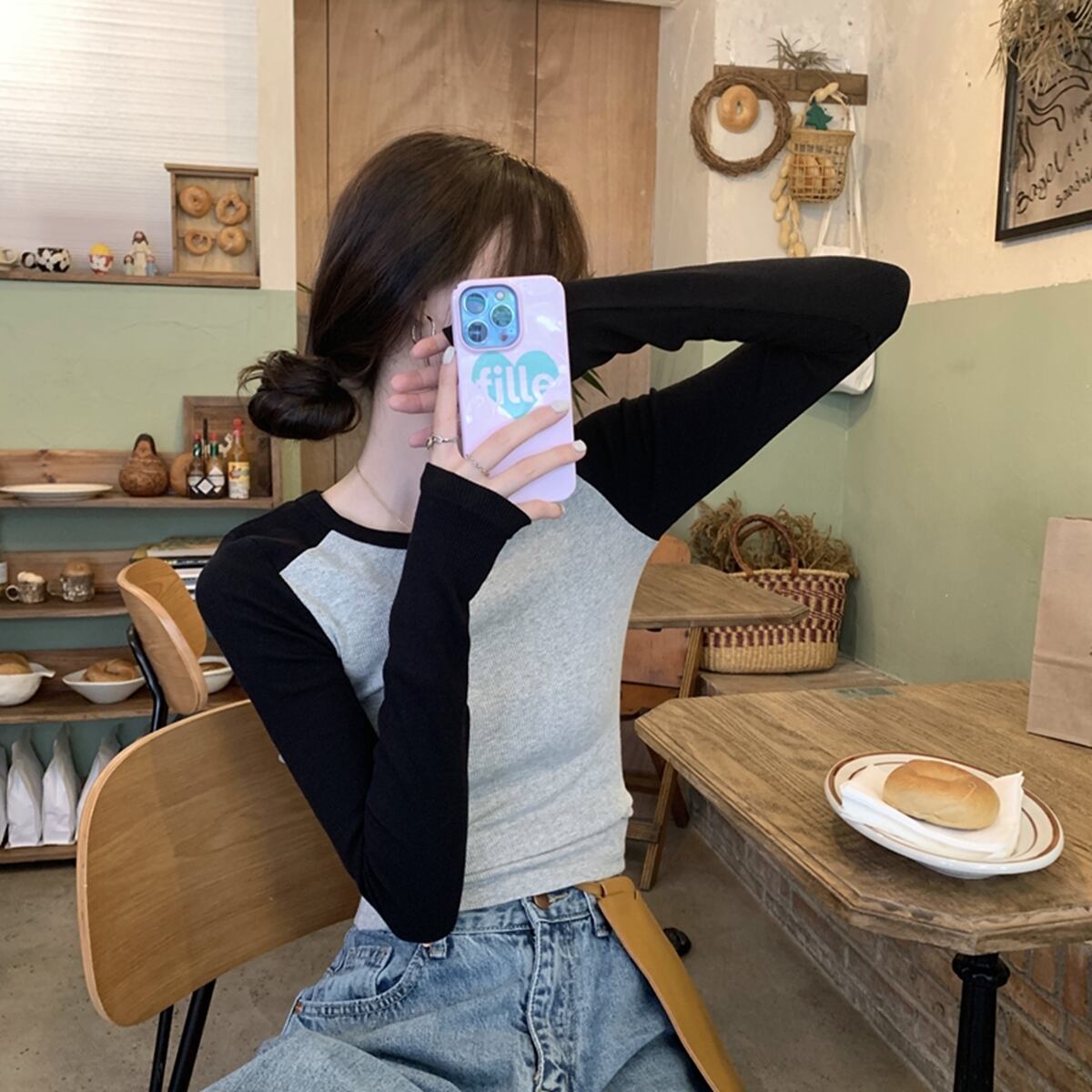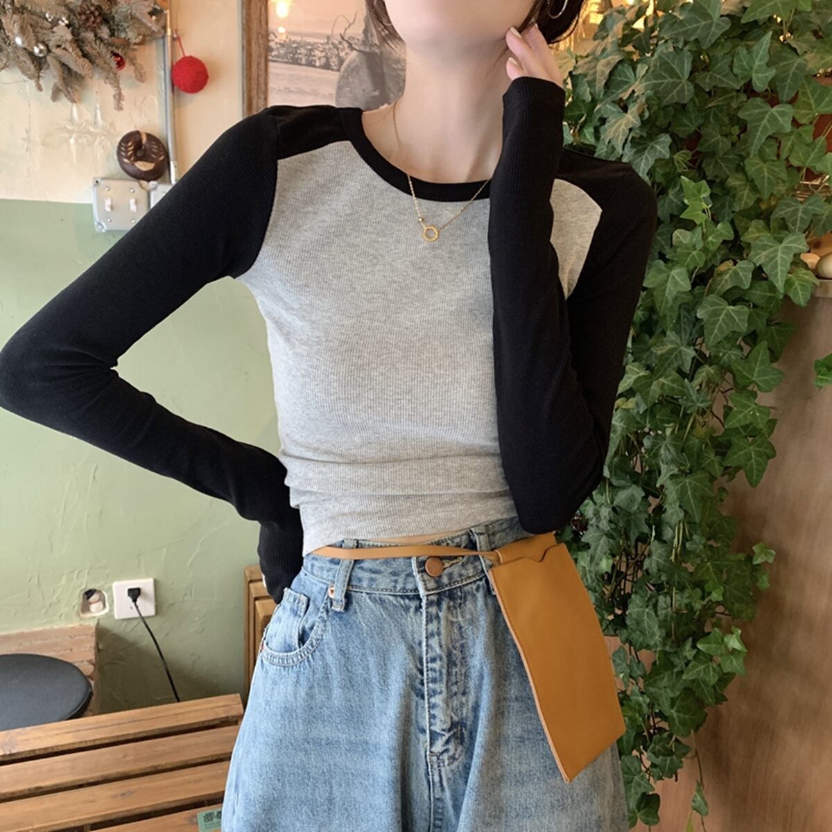 長袖 フロントショルダー tシャツ レディース 秋 薄手 ボトムス シャツ デザイン センス ニッチ スモールボディ スリム ショート トップス ロング オータム 秋物 7460033286371776 | framboise21