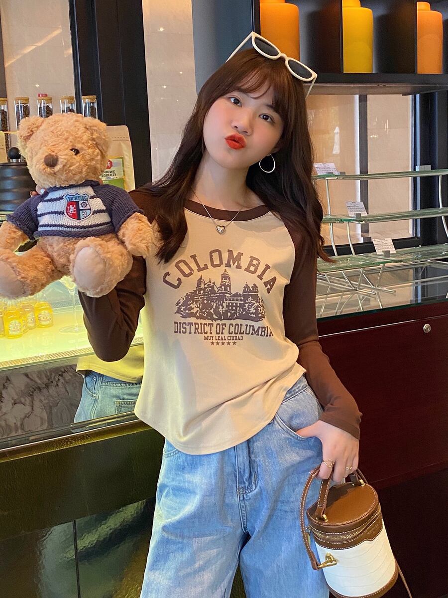 長袖 tシャツ レディース 秋の新作 アメリカンレトロ デザインセンス スリムフィット ステッチ入り ボトムスシャツ ショートトップ ロング オータム 秋物 7460033385140342 | framboise21