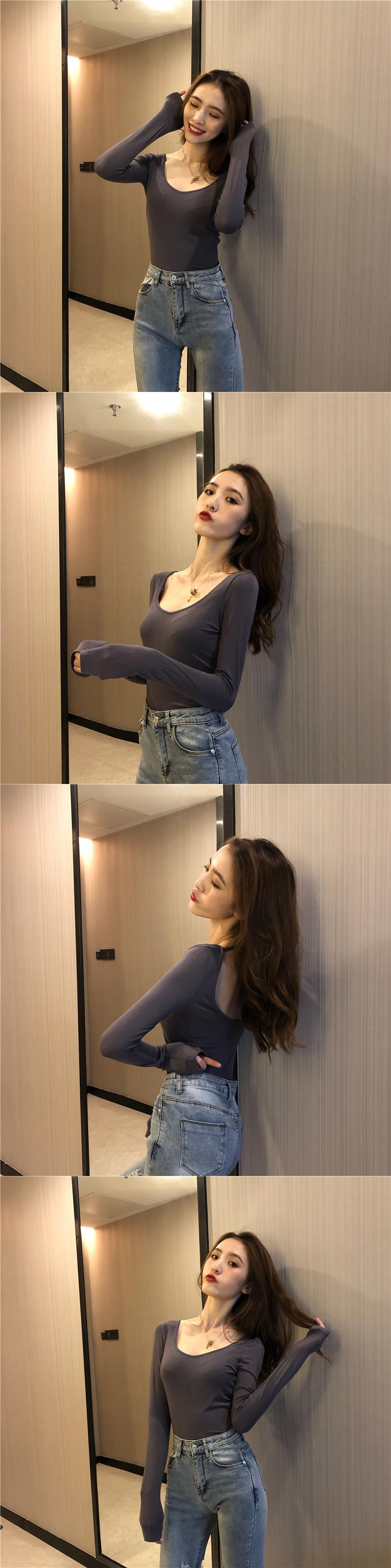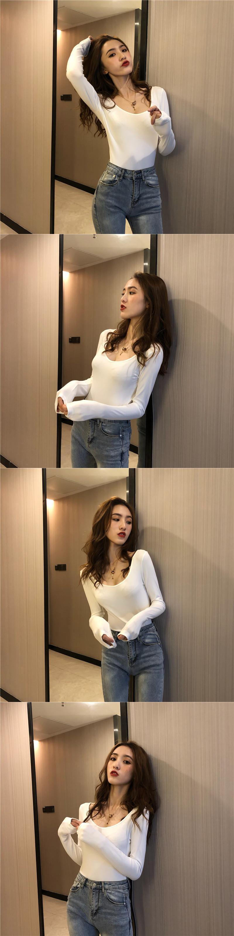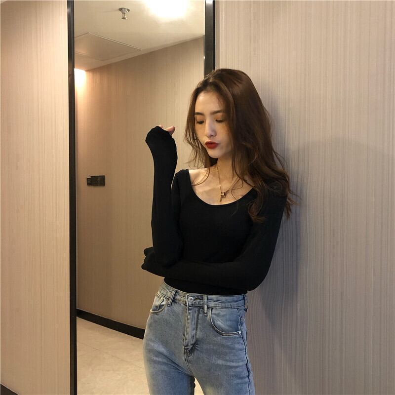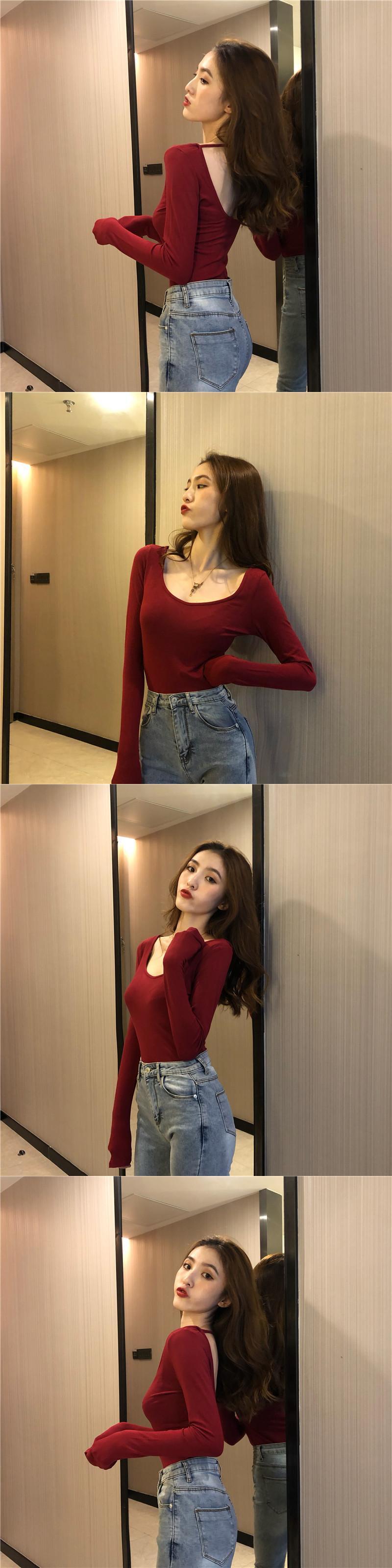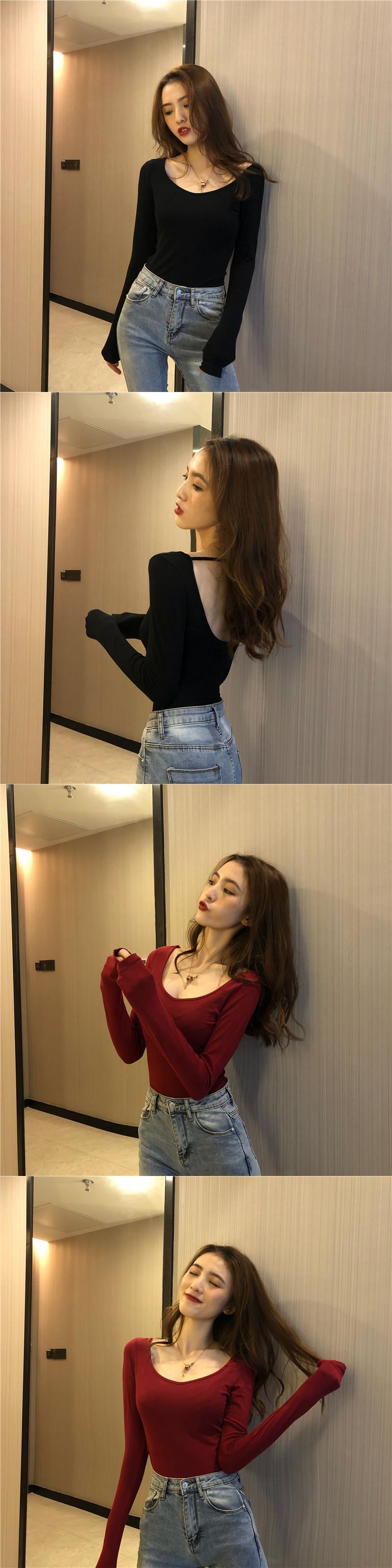 黒のボトムトップの女性の2022年初秋の新しいウエスタンスタイルのスリムフィット、セクシーな中空の背中の開いた長袖Tシャツ ロング ブラック オータム 秋物 7460058493577607 | framboise21