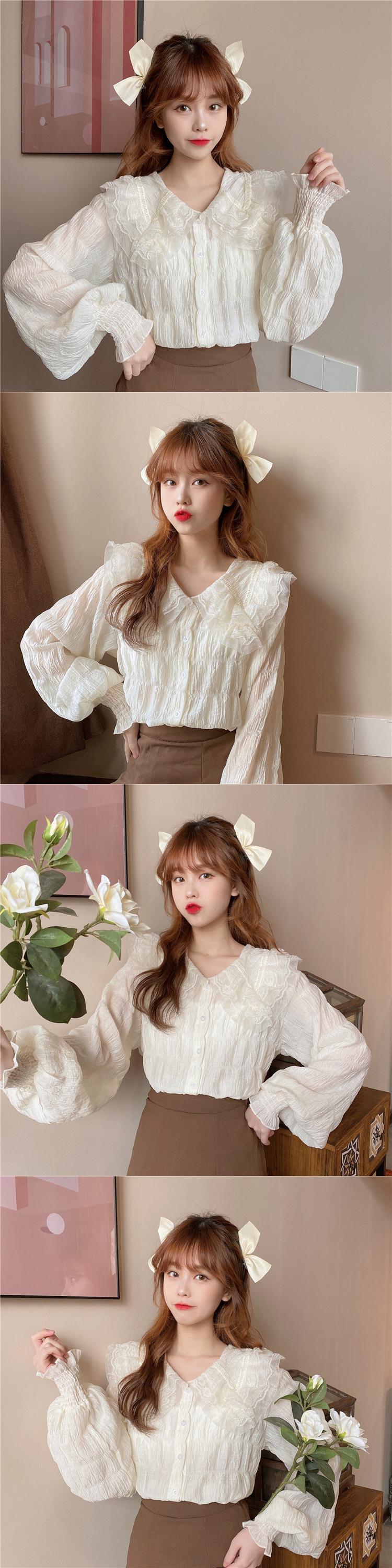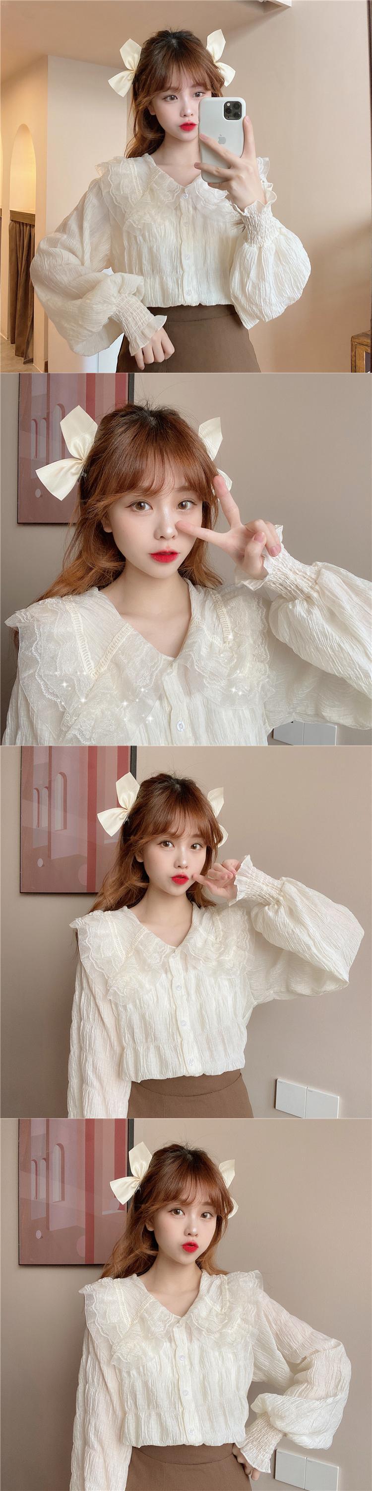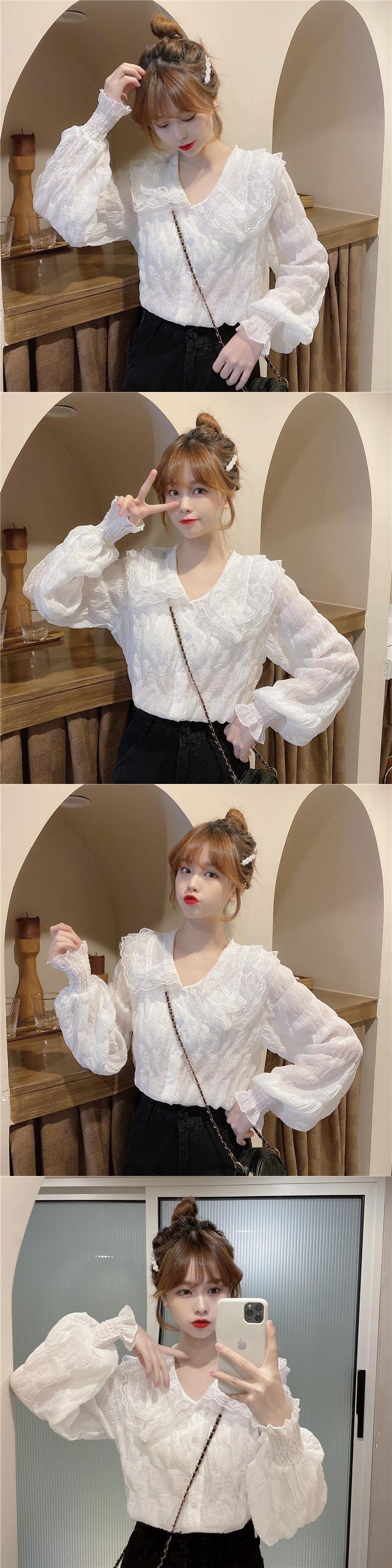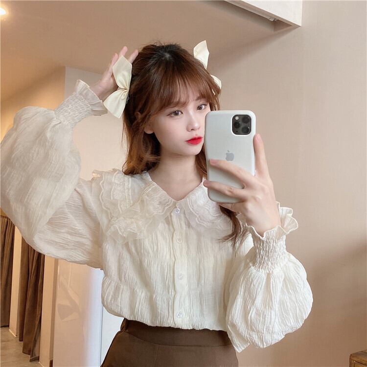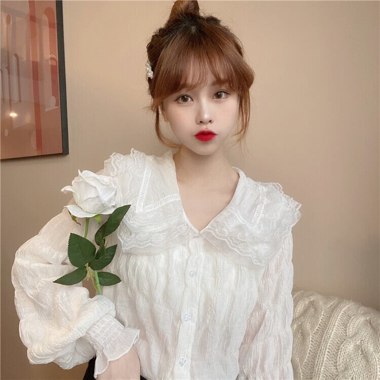 スイートホワイト ドールカラー シフォンシャツ レディース 春秋 フレンチ感覚 小さめ 洋風 小さめシャツ シック トップス トレンド 大人ガーリー スウィート キュート カジュアル スプリング 春物 オータム 秋物 746005660464500 | framboise21