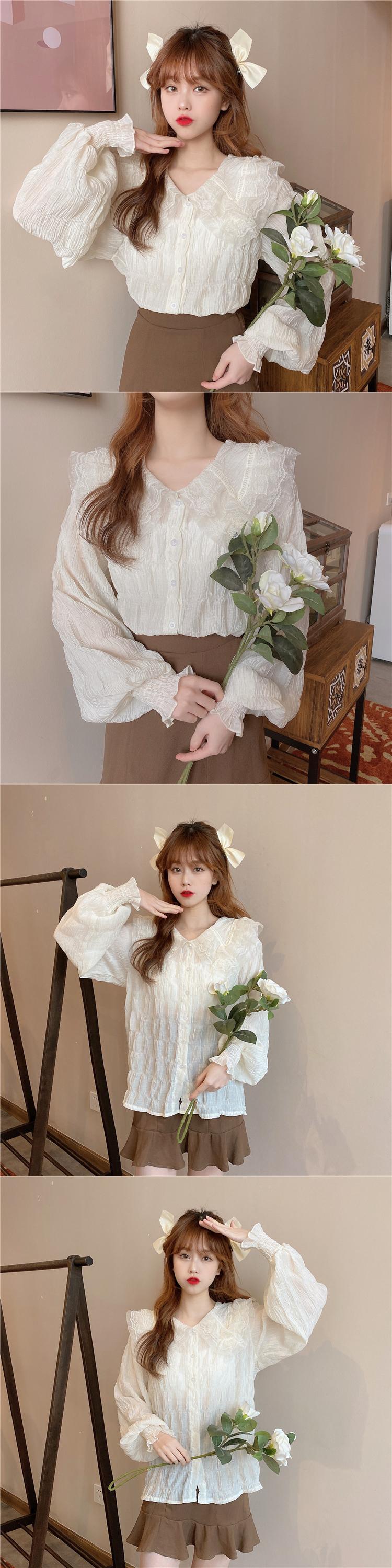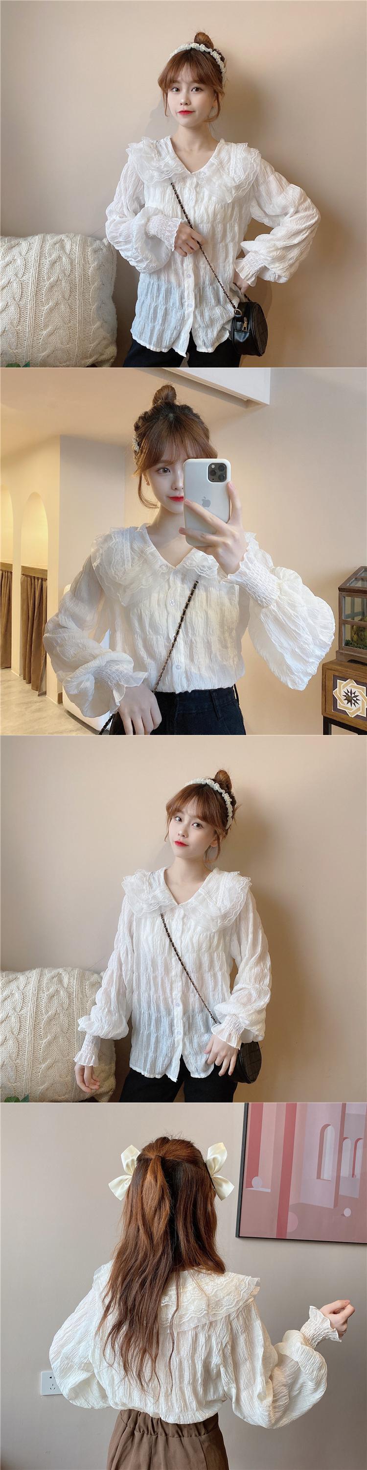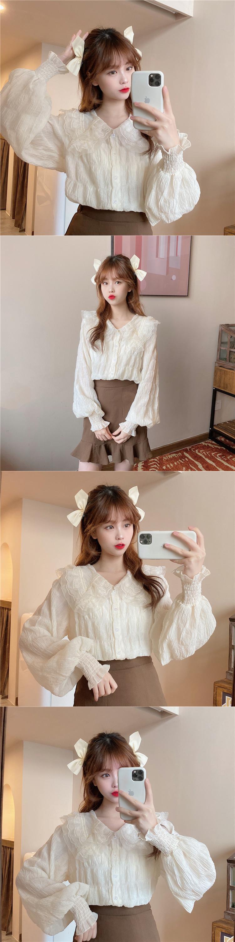 スイートホワイト ドールカラー シフォンシャツ レディース 春秋 フレンチ感覚 小さめ 洋風 小さめシャツ シック トップス トレンド 大人ガーリー スウィート キュート カジュアル スプリング 春物 オータム 秋物 746005660464500 | framboise21
