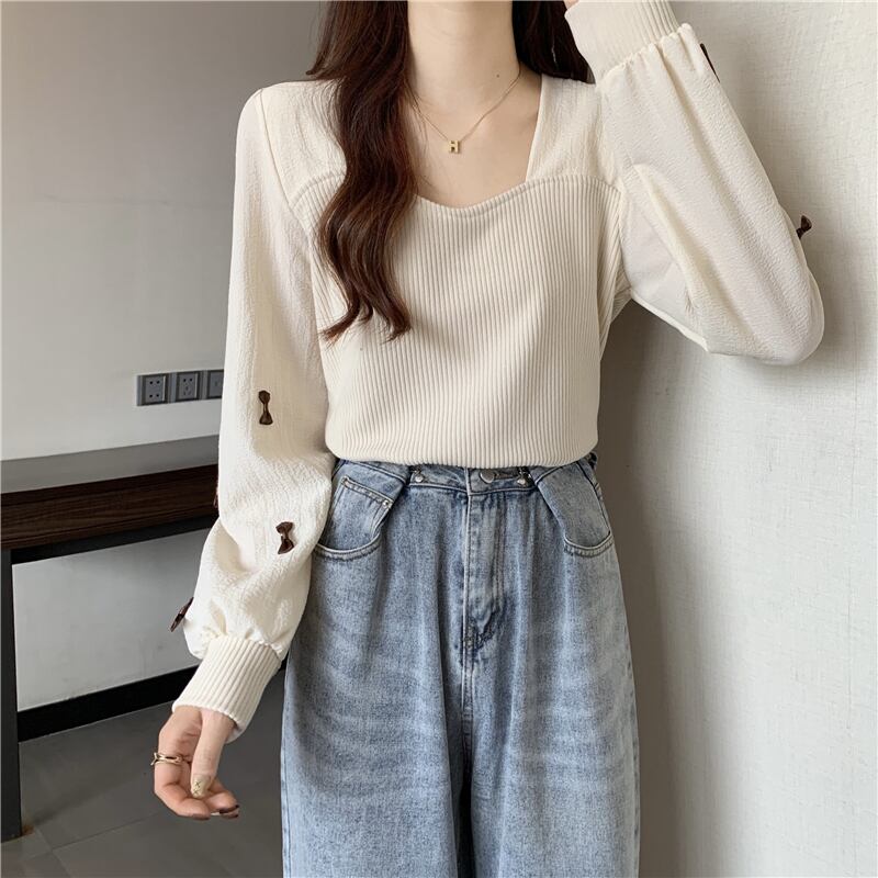 フレンチシックなインナー 小さめシャツ ウエスタン風 鎖骨 スクエアカラー 長袖 ボトムス トップス レディース デザインセンス ニッチシャツ 初秋 ロング オータム 秋物 スクウェア 7460090764675216 | framboise21
