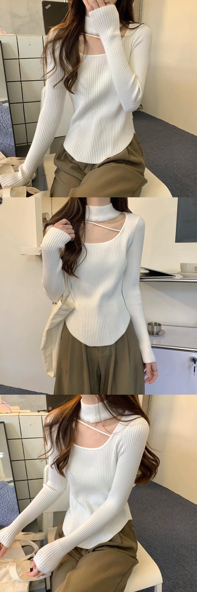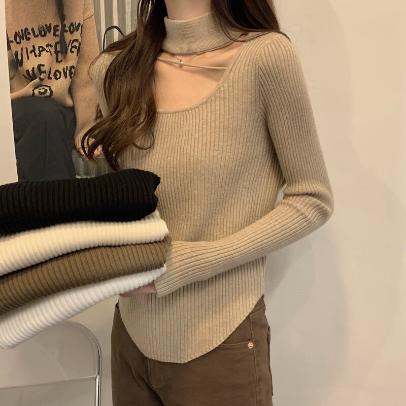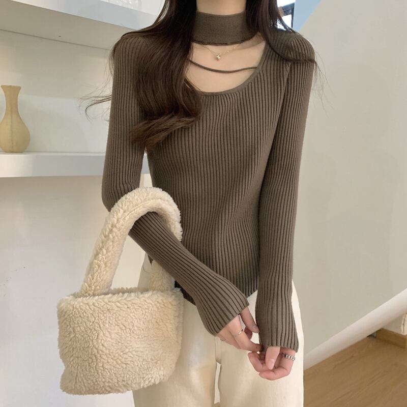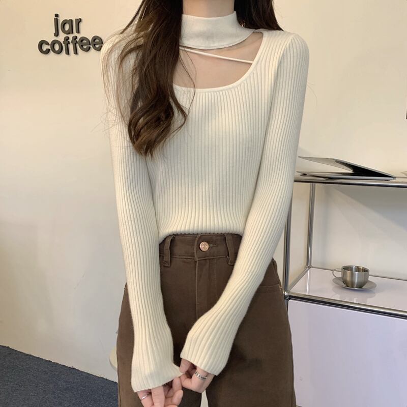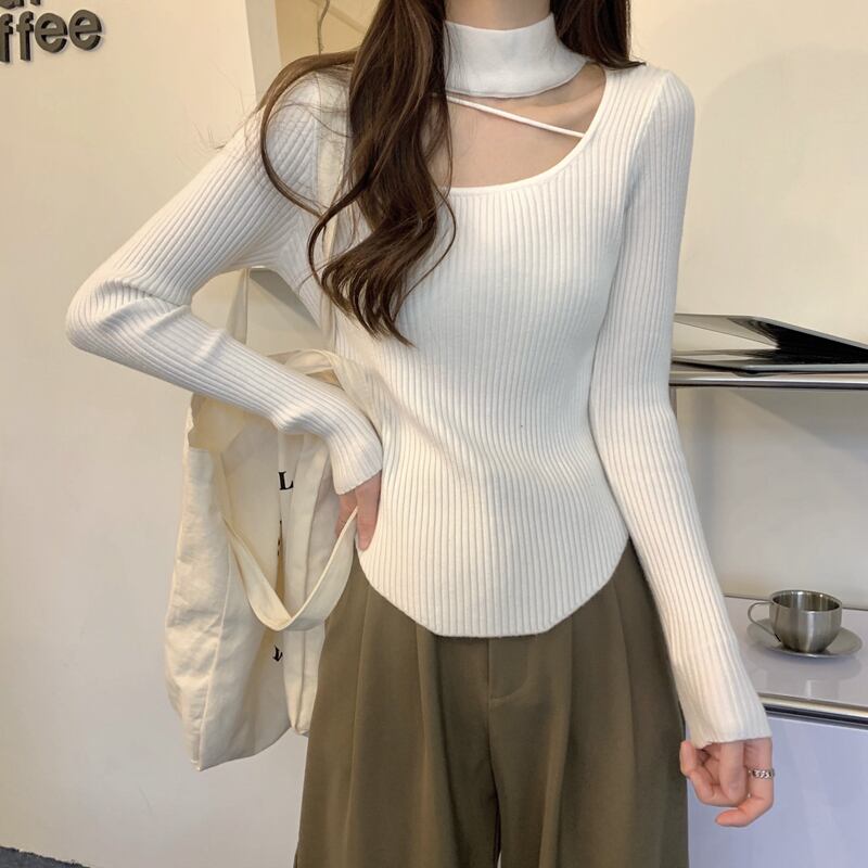 鎖骨露出に要注意 ホルターネック ニット ボトムス シャツ レディース 秋冬 デザインセンス スリムセーター イレギュラートップ オータム 秋物 ウィンター 冬物 746003796799458 | framboise21