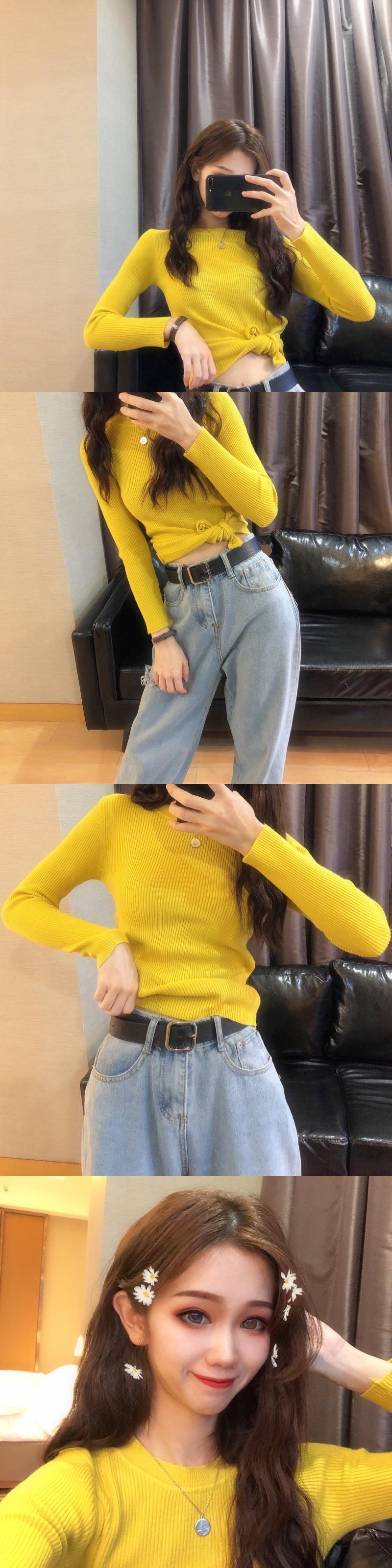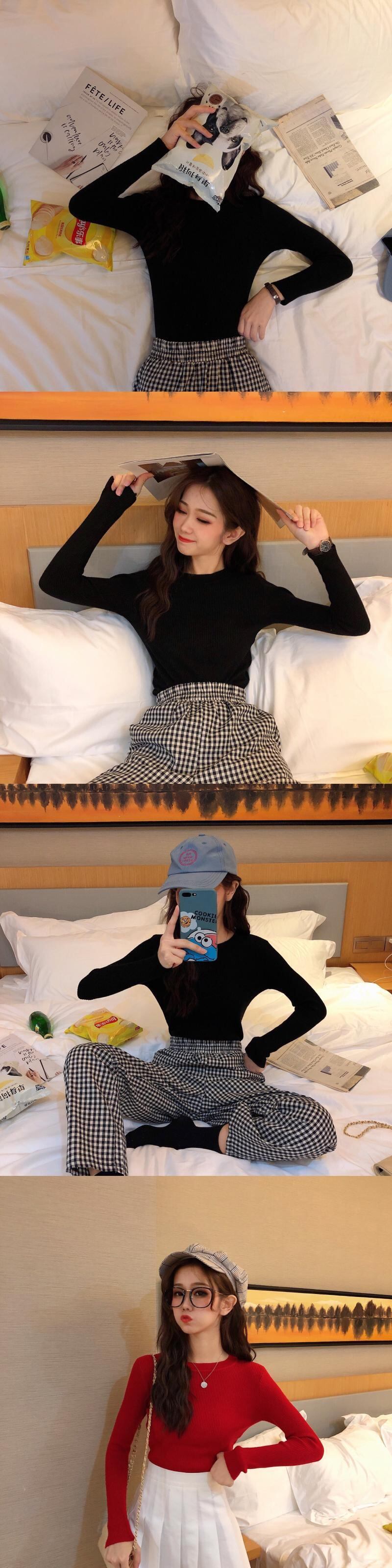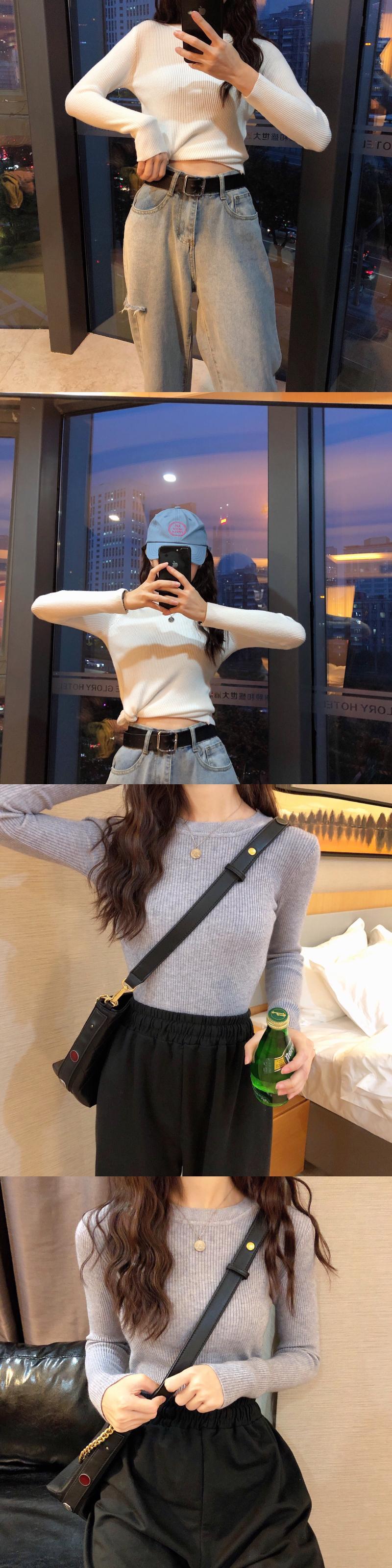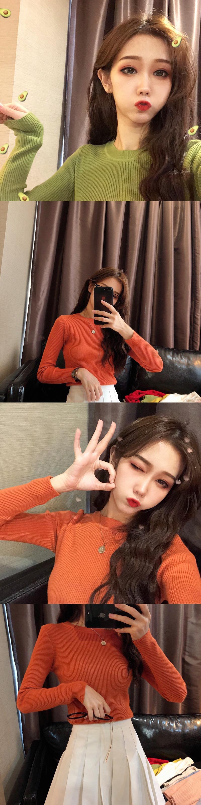 ニットボトムシャツ女性の秋と冬の長袖トップス、eign スタイル、ファッション、オールマッチ、セクシーなタイトフィットリブラウンドネックセーター ロング オータム 秋物 ウィンター 冬物 Oネック 7460023582679001 | framboise21