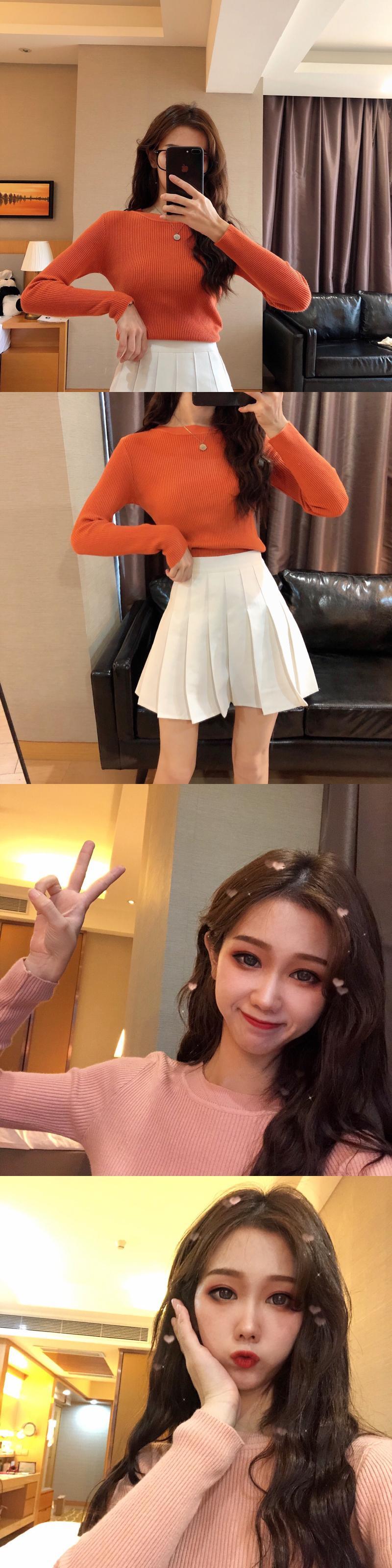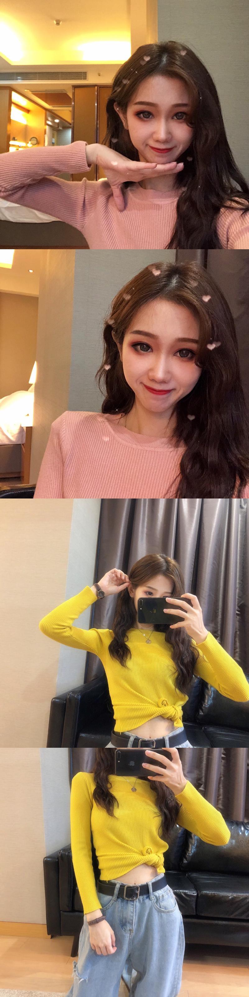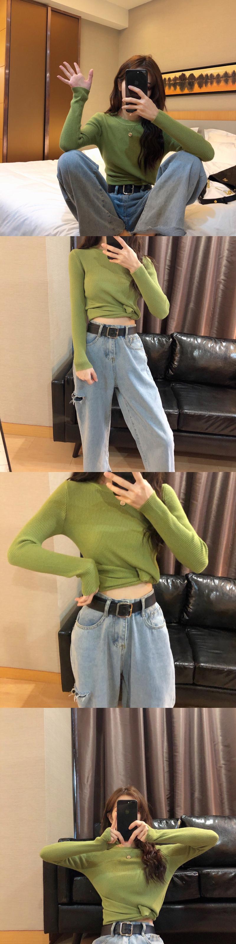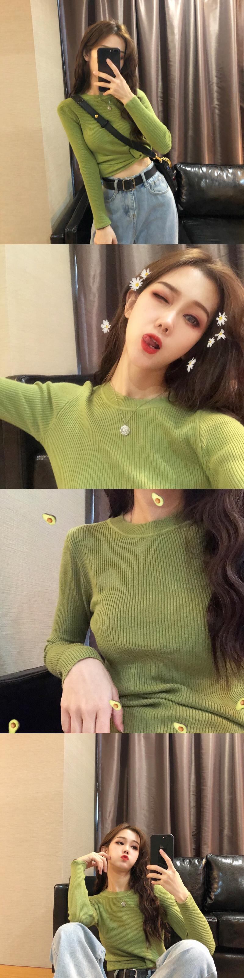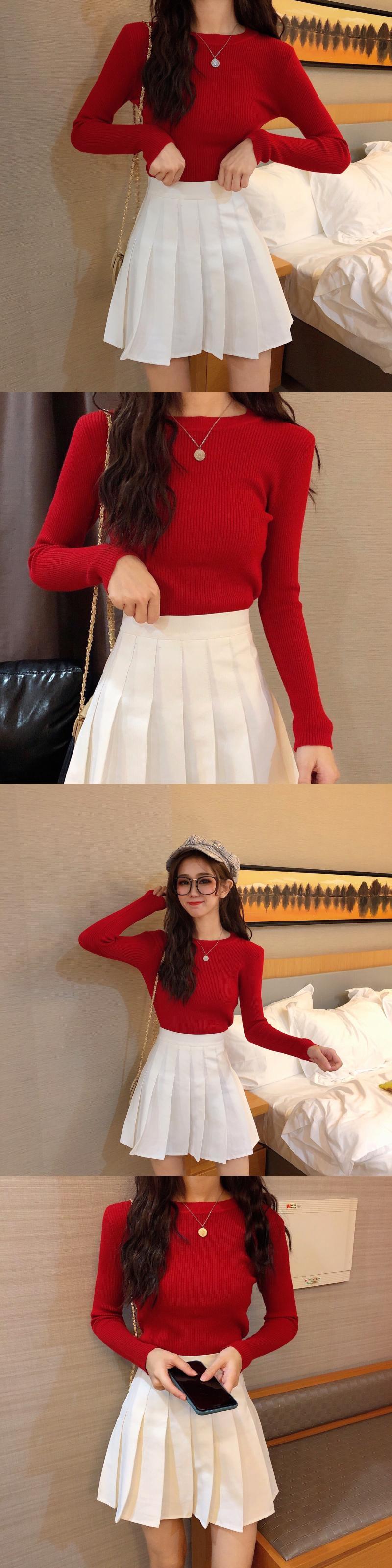 ニットボトムシャツ女性の秋と冬の長袖トップス、eign スタイル、ファッション、オールマッチ、セクシーなタイトフィットリブラウンドネックセーター ロング オータム 秋物 ウィンター 冬物 Oネック 7460023582679001 | framboise21