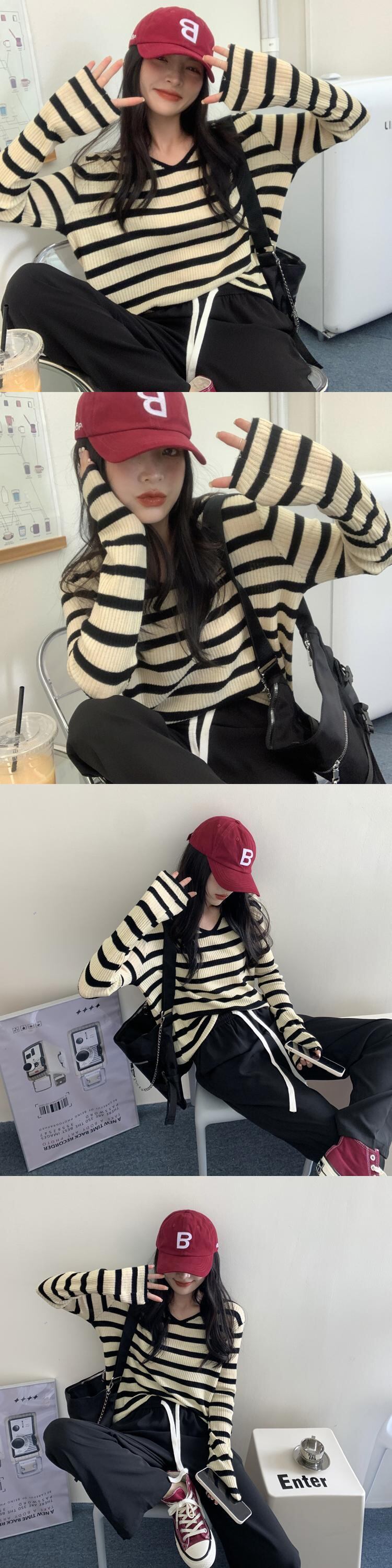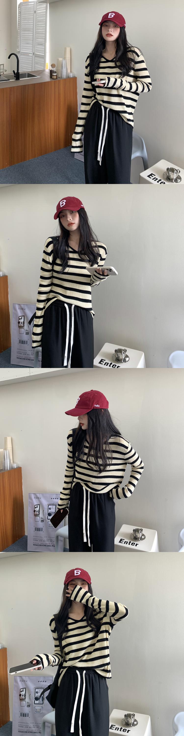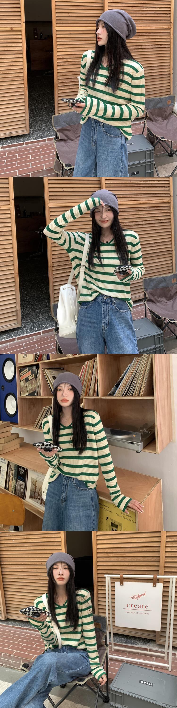 2022 秋の新作 v ネックストライプニット底入れシャツ女性の洋風デザインスリムフィット長袖トップトレンディ ロング オータム 秋物 Vネック 7460060041126346 | framboise21