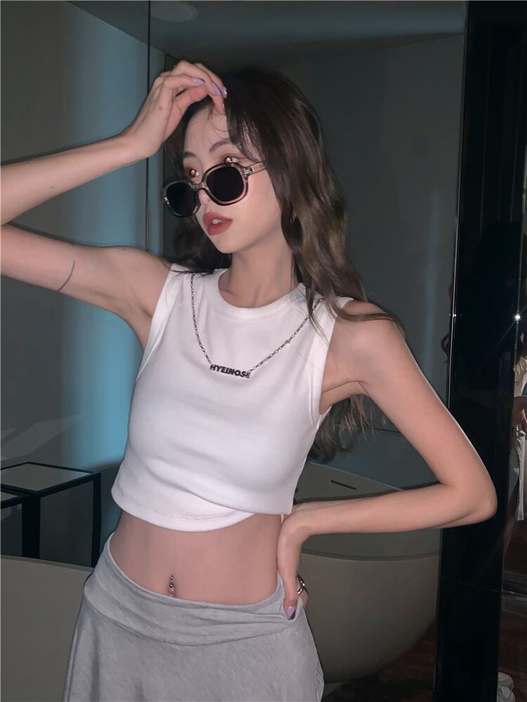 アメリカの純粋な欲望風bmノースリーブトップ女性の夏のハイウエストは、ペアの胸にベストを着て、ネックレスを贈ります ハイウェスト レース サマー 夏物 ピュア 7460062092105515 | framboise21