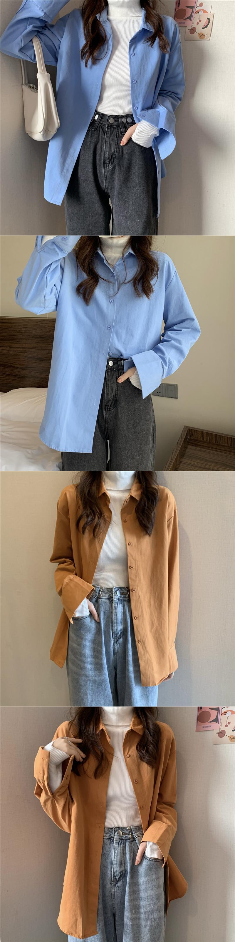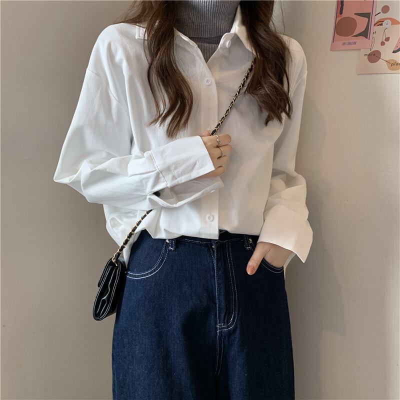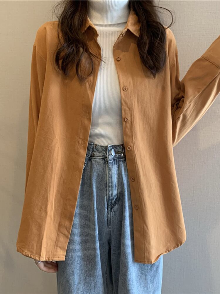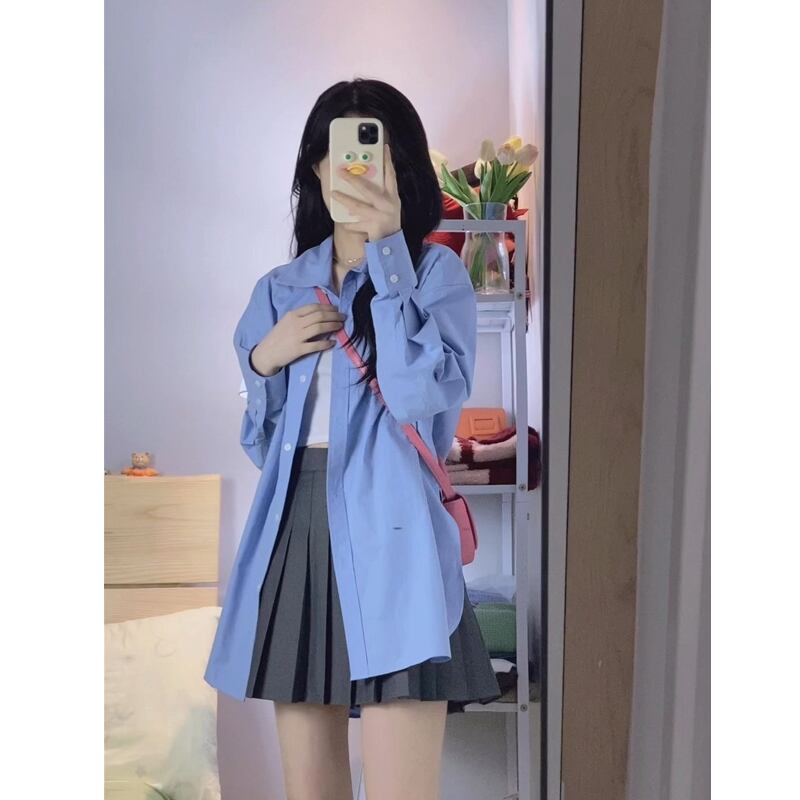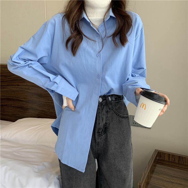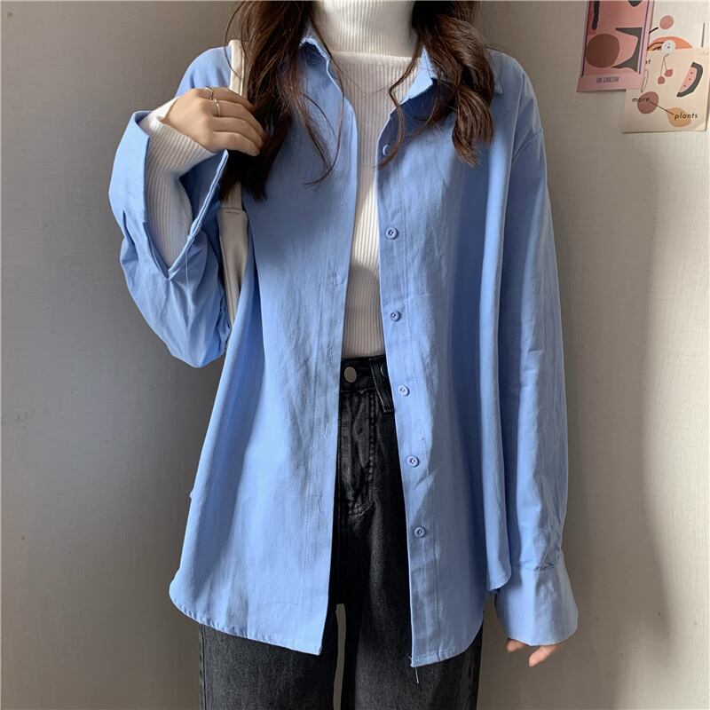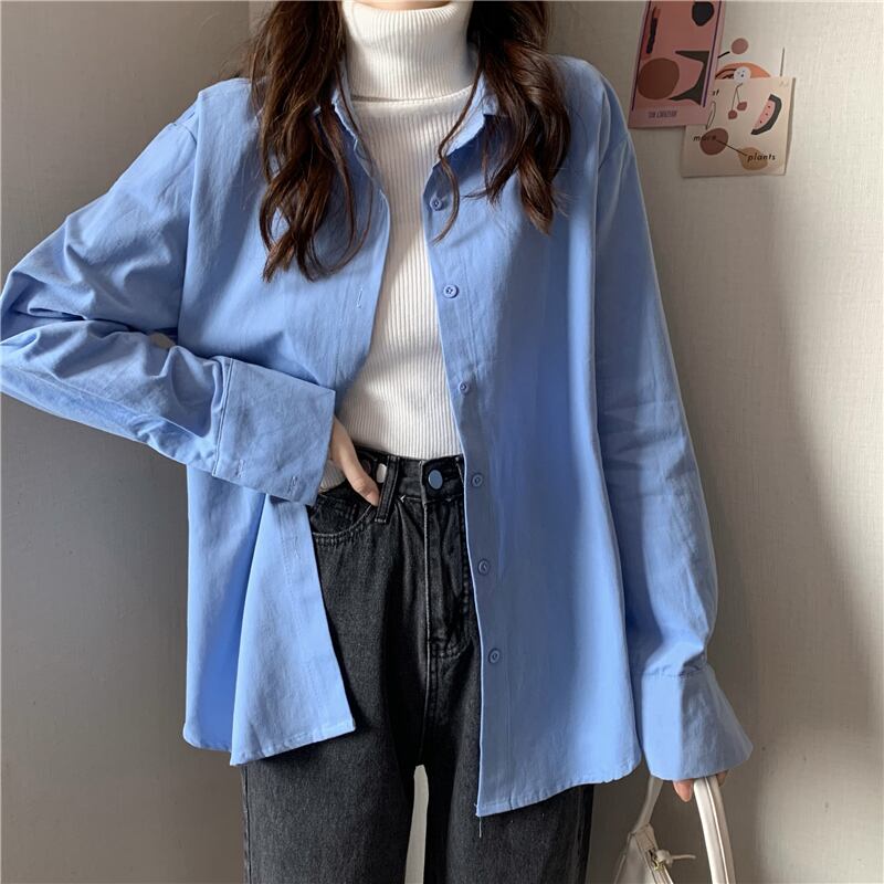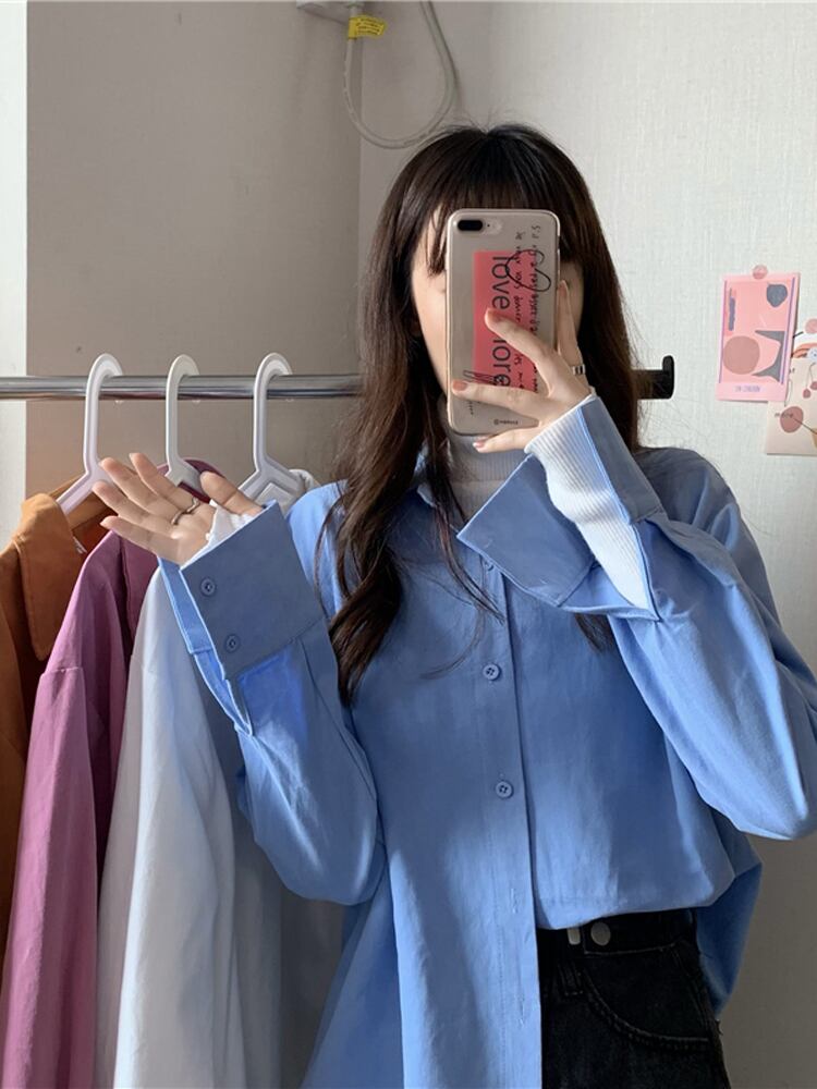 青い長袖シャツの女性の秋の折り畳まれたミッドレングスのコート緩い西洋スタイルのファッションカジュアルトップ 2022 新しいスタイル ロング ブルー オータム 秋物 74600462549489 | framboise21