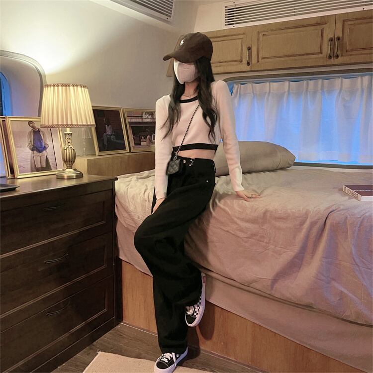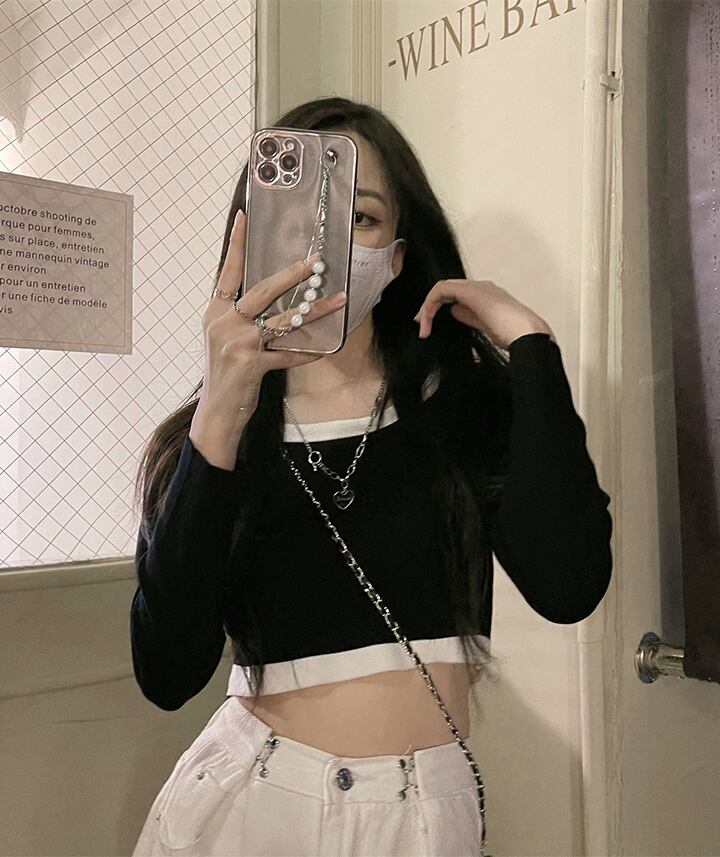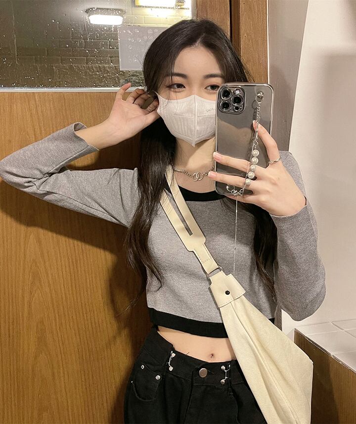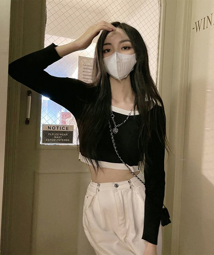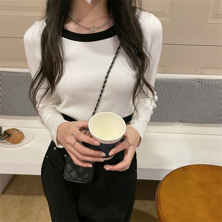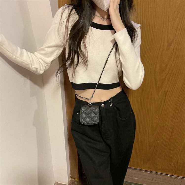 ショート甘辛いへそニットセータートップハイウエストインタイドボトミングシャツ春と秋スリム白長袖 tシャツ女性 ハイウェスト ロング ホワイト 大人ガーリー スウィート キュート カジュアル スプリング 春物 オータム 秋物 7460018901060336 | framboise21
