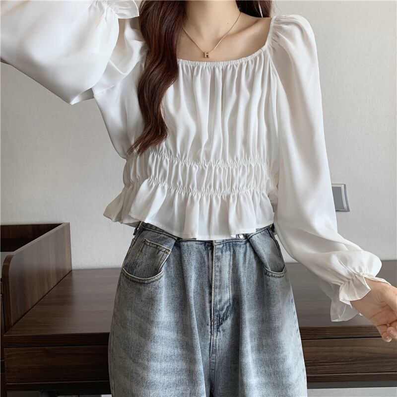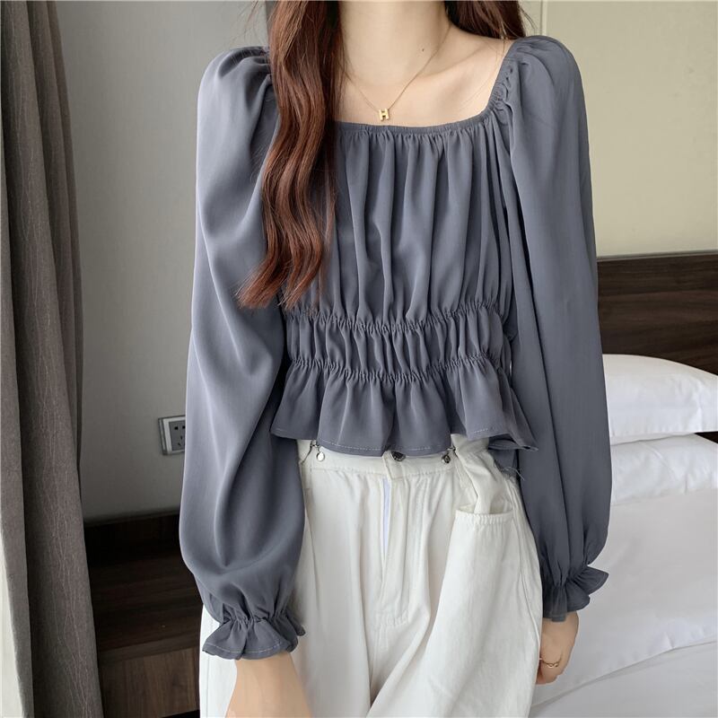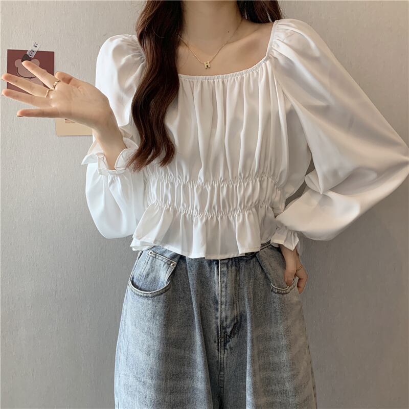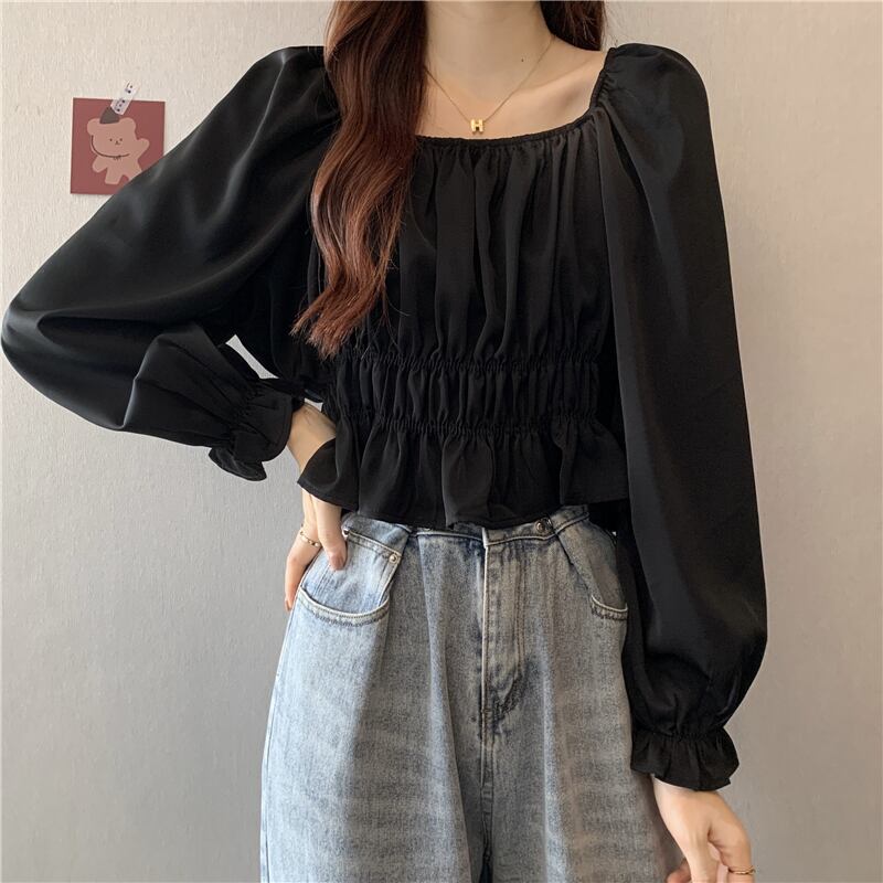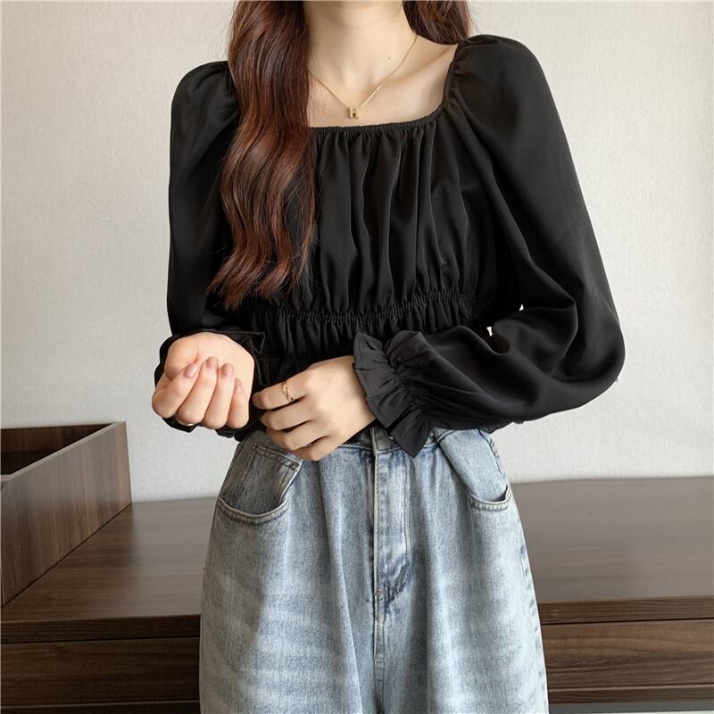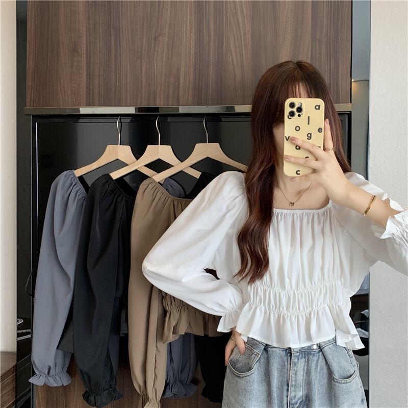 フレンチパフスリーブスクエアカラーショートトップレディースデザインニッチ長袖へそ春秋シックウエストシャツ ロング スプリング 春物 オータム 秋物 スクウェア 7460077686463592 | framboise21