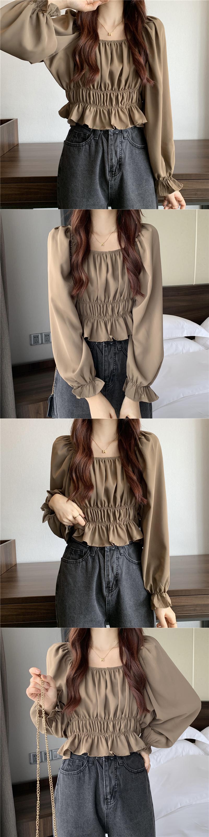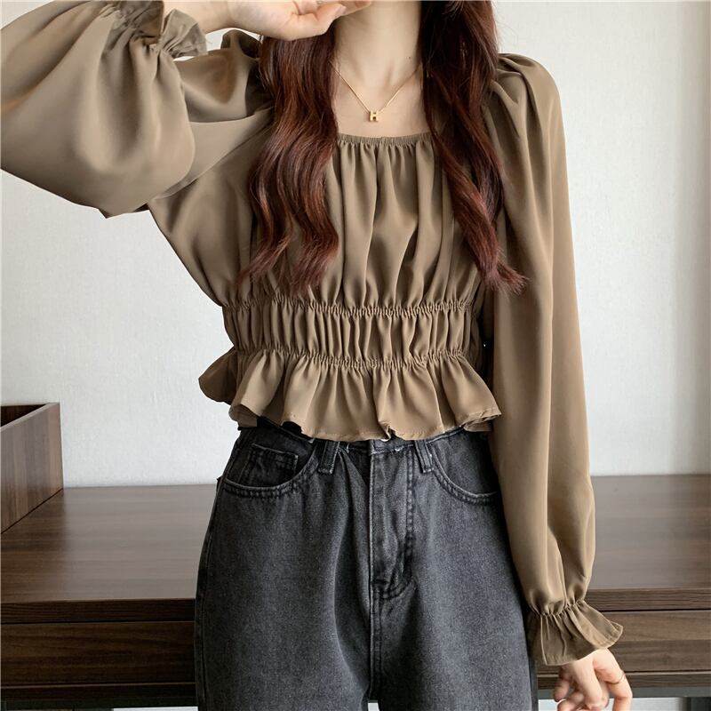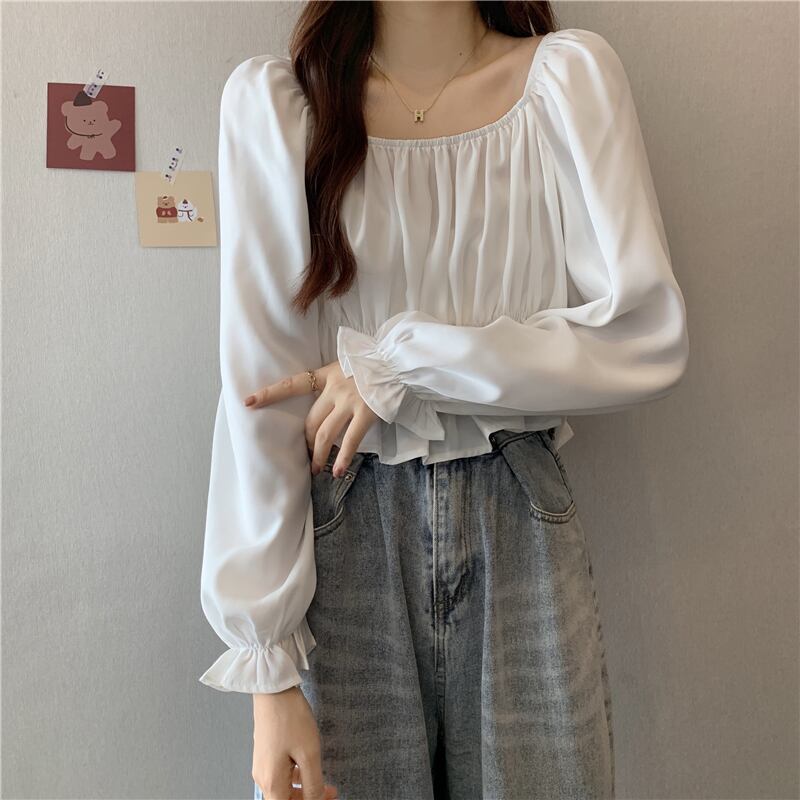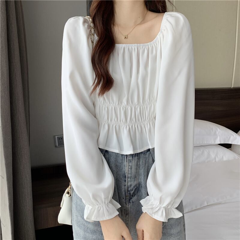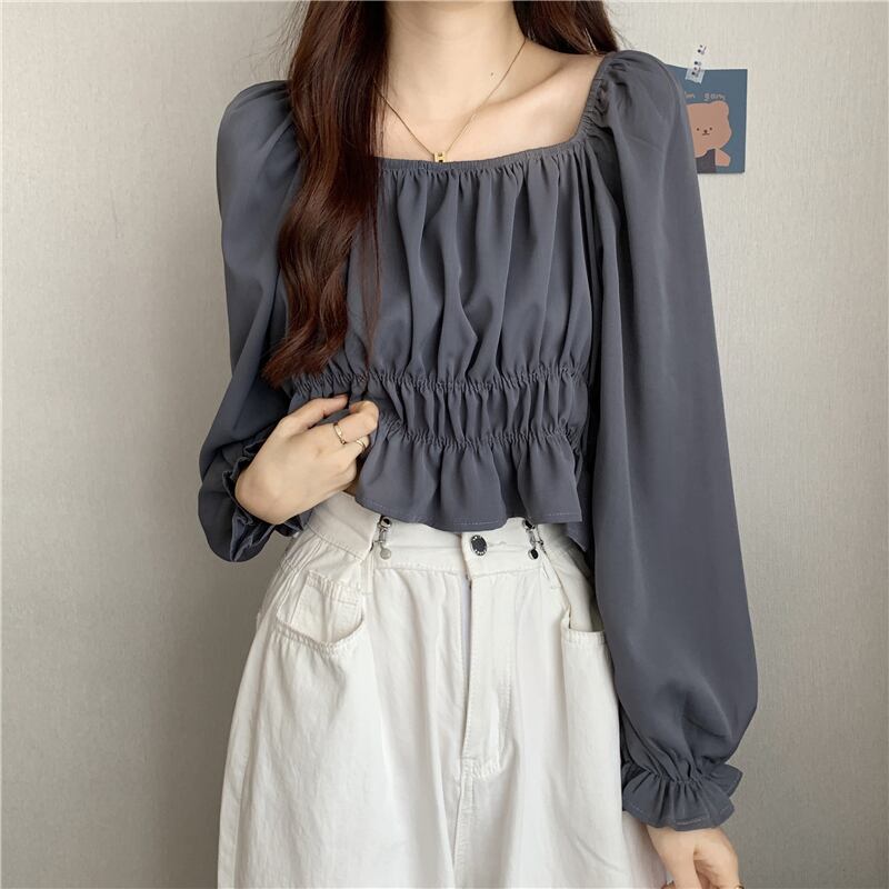 フレンチパフスリーブスクエアカラーショートトップレディースデザインニッチ長袖へそ春秋シックウエストシャツ ロング スプリング 春物 オータム 秋物 スクウェア 7460077686463592 | framboise21