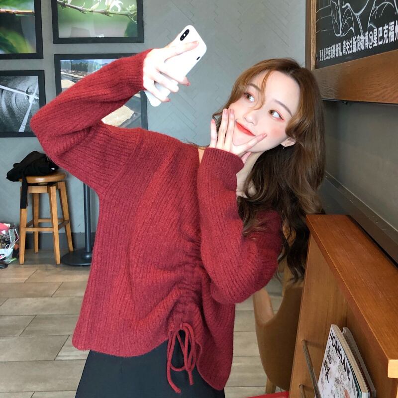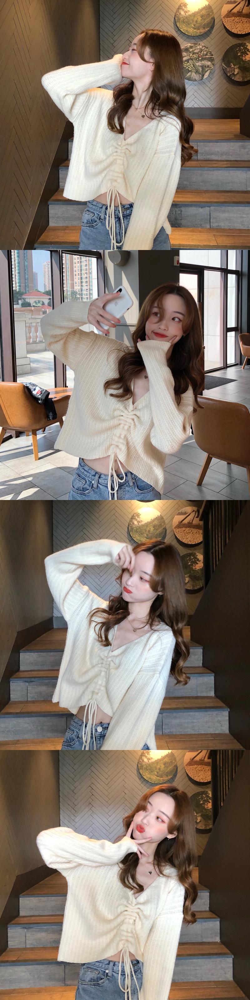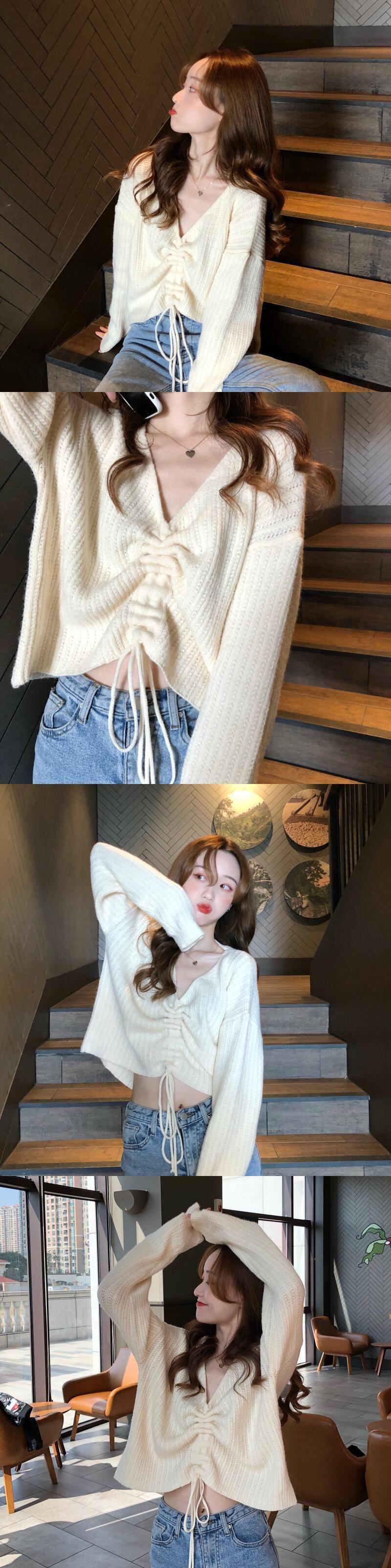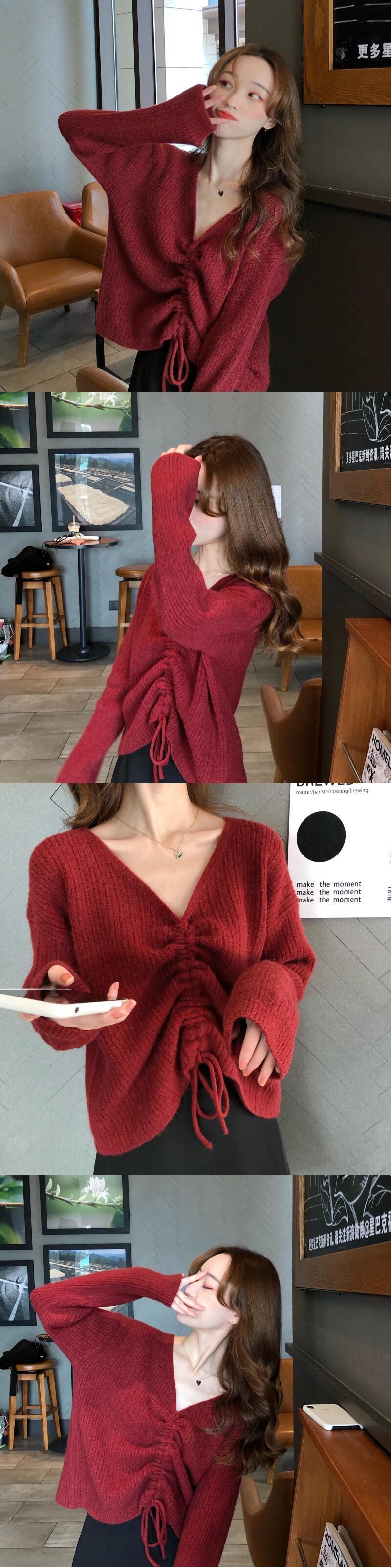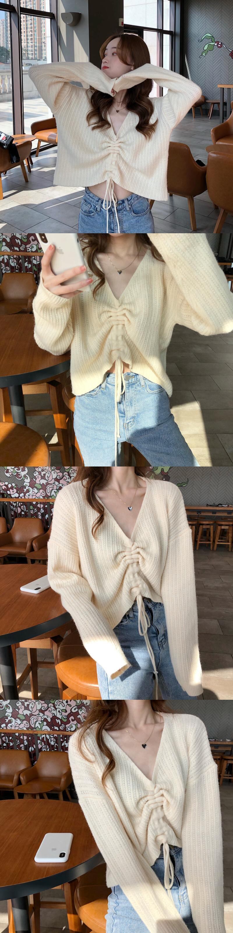 プリーツ 巾着 ニット セーター トップス レディース 春秋 新作 ゆったり アウター オールマッチ 短め 長袖 Vネック セーター ショート ロング スプリング 春物 オータム 秋物 7460073979348674 | framboise21