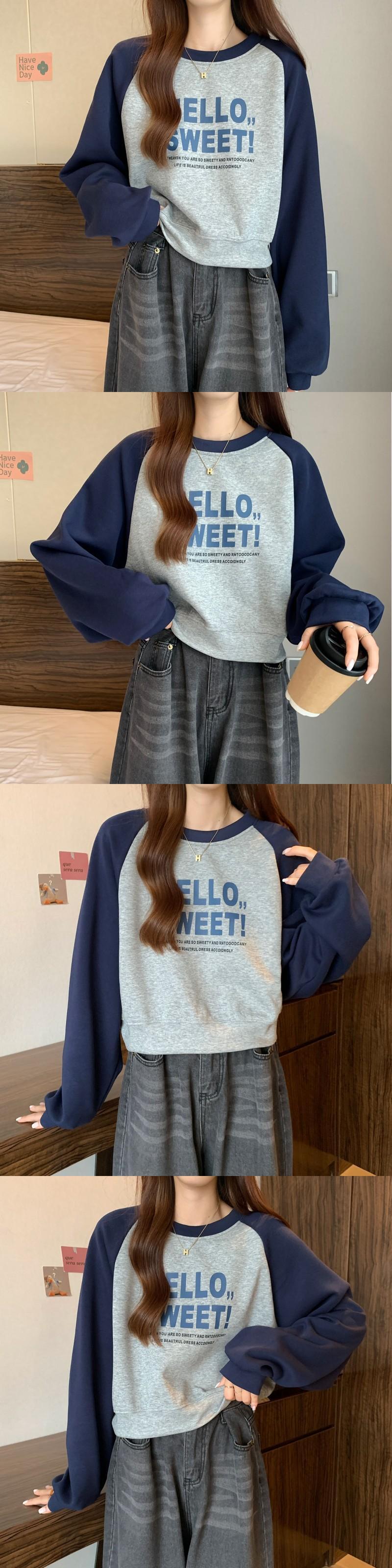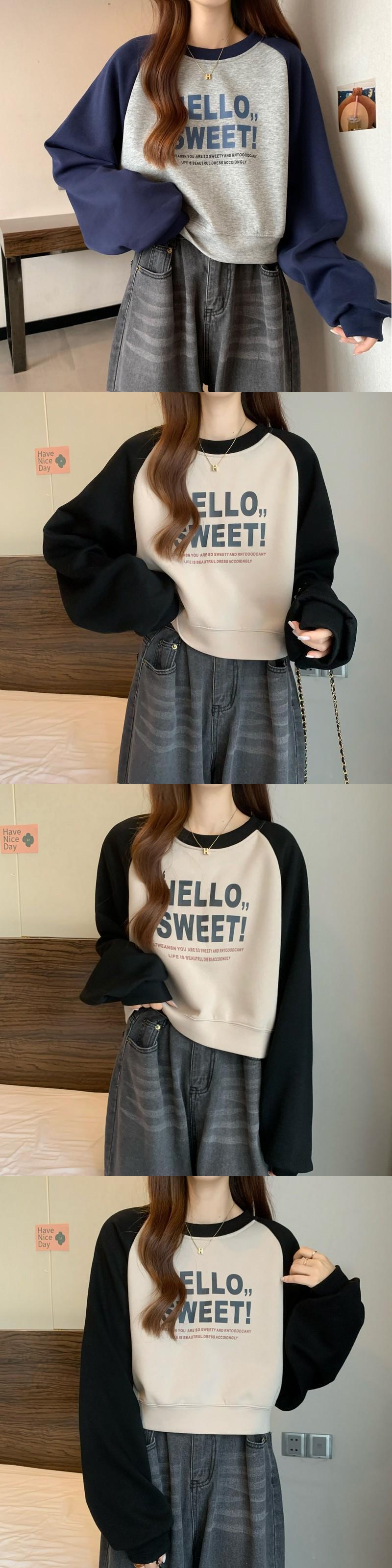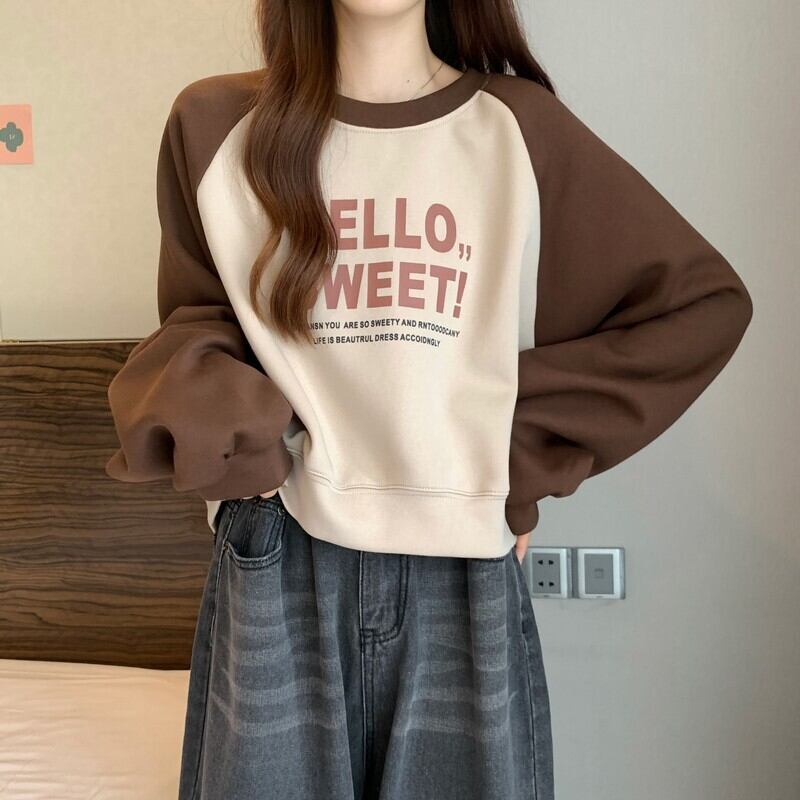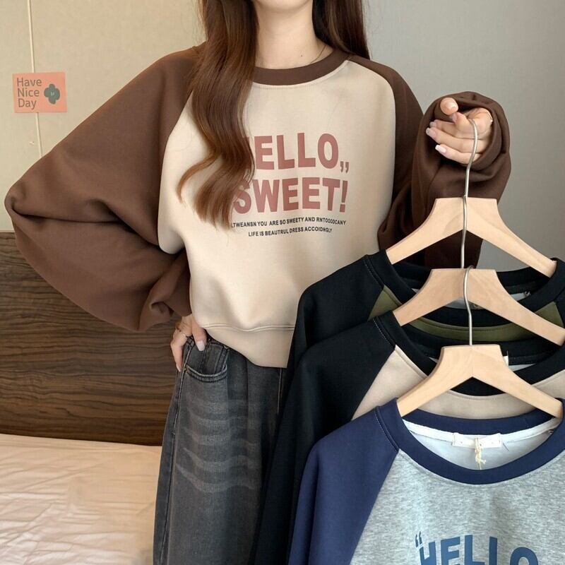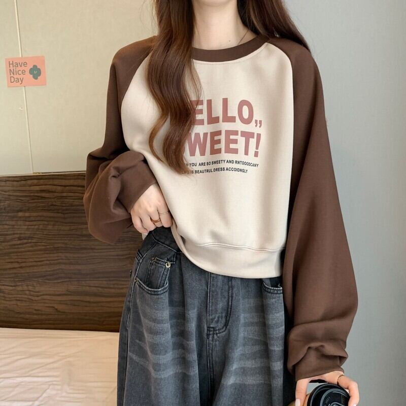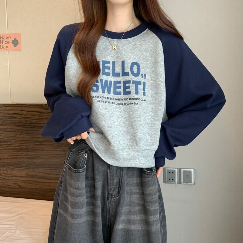 アメリカンレトロコントラストカラーラグランラウンドネックレターセーターレディース春秋長袖ゆったりゆったりスモールショートトップ ロング スプリング 春物 オータム 秋物 Oネック 7460012148342308 | framboise21
