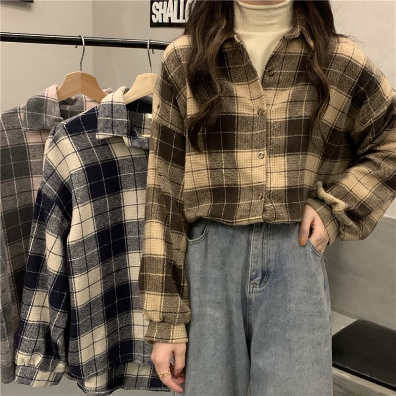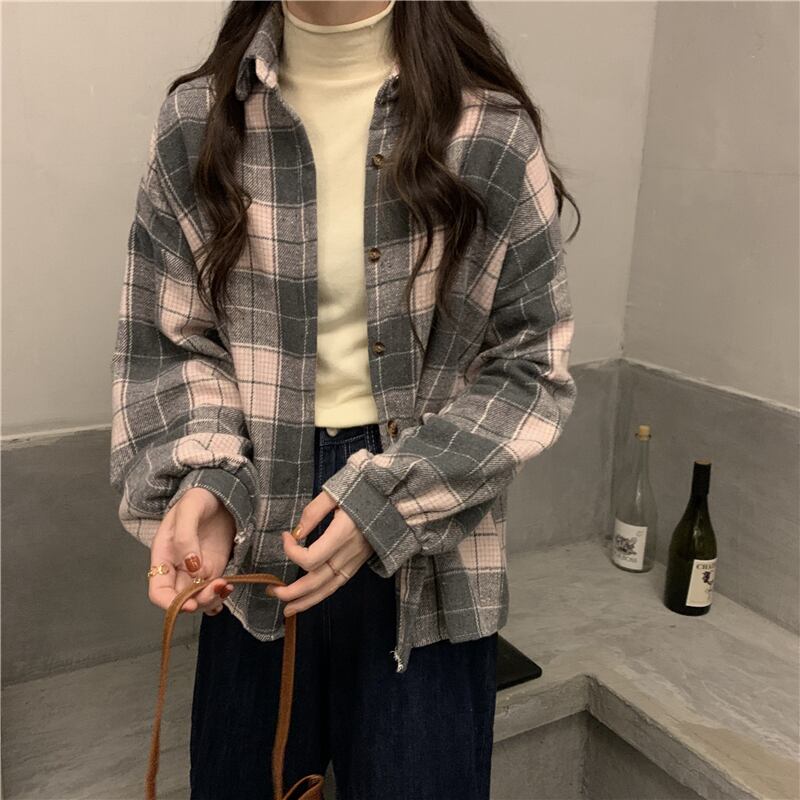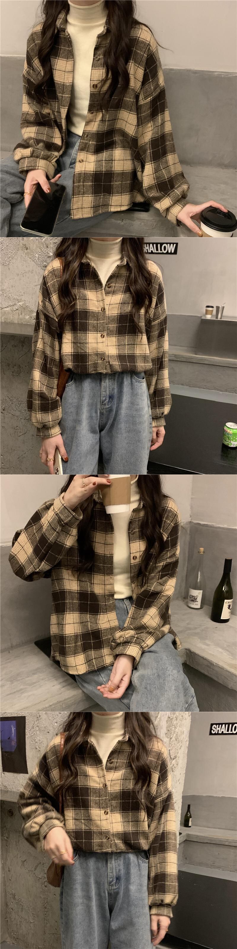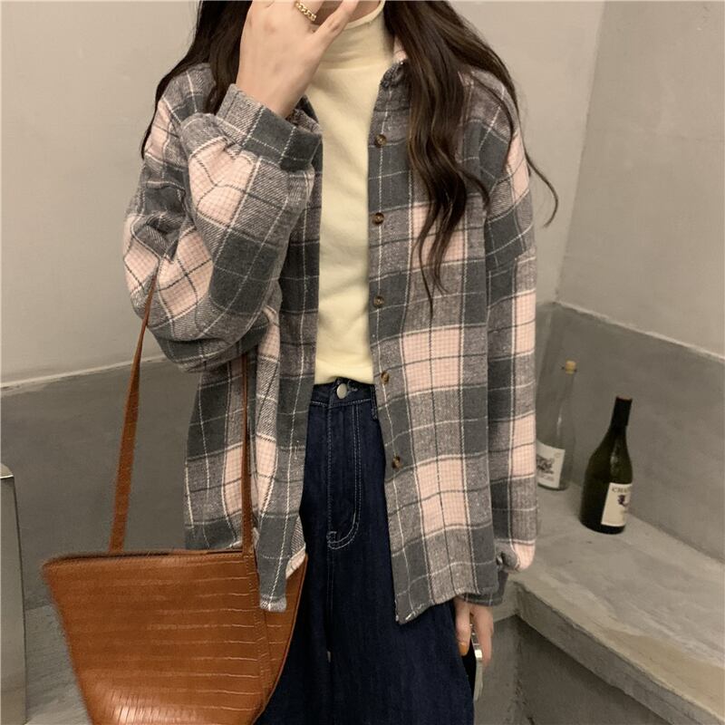 厚みのある起毛チェック柄シャツジャケット女性の秋と冬のゆるい BF スタイルシャツ 2022 新しいオールマッチカジュアルトップ オータム 秋物 ウィンター 冬物 7460057844320668 | framboise21