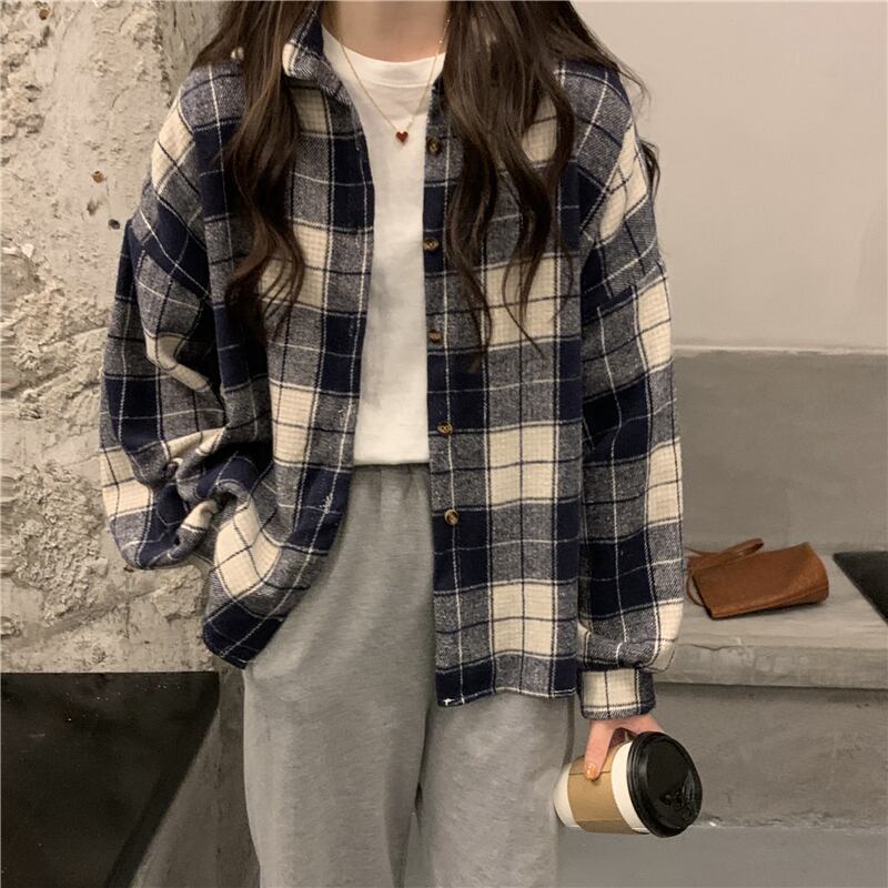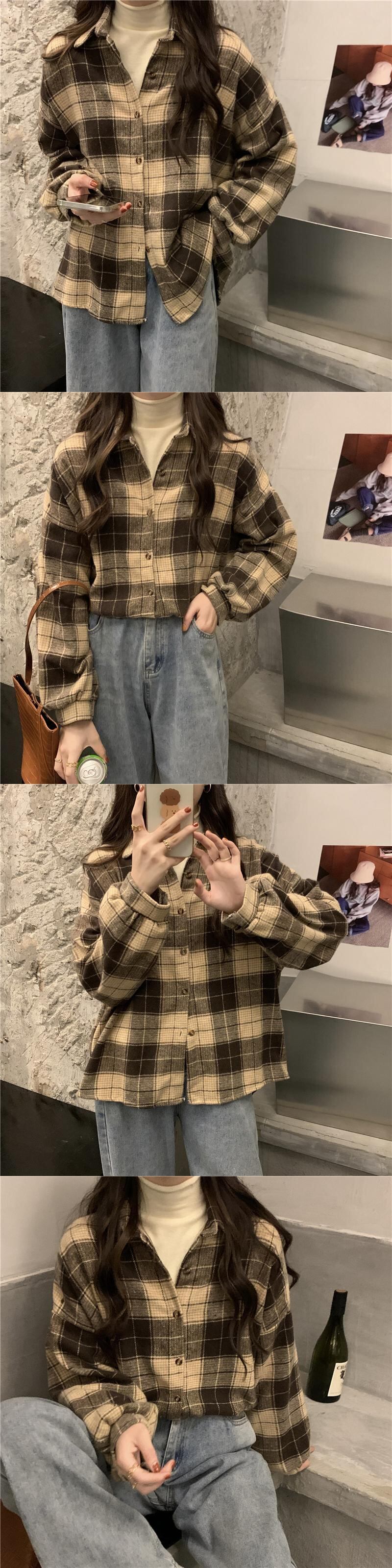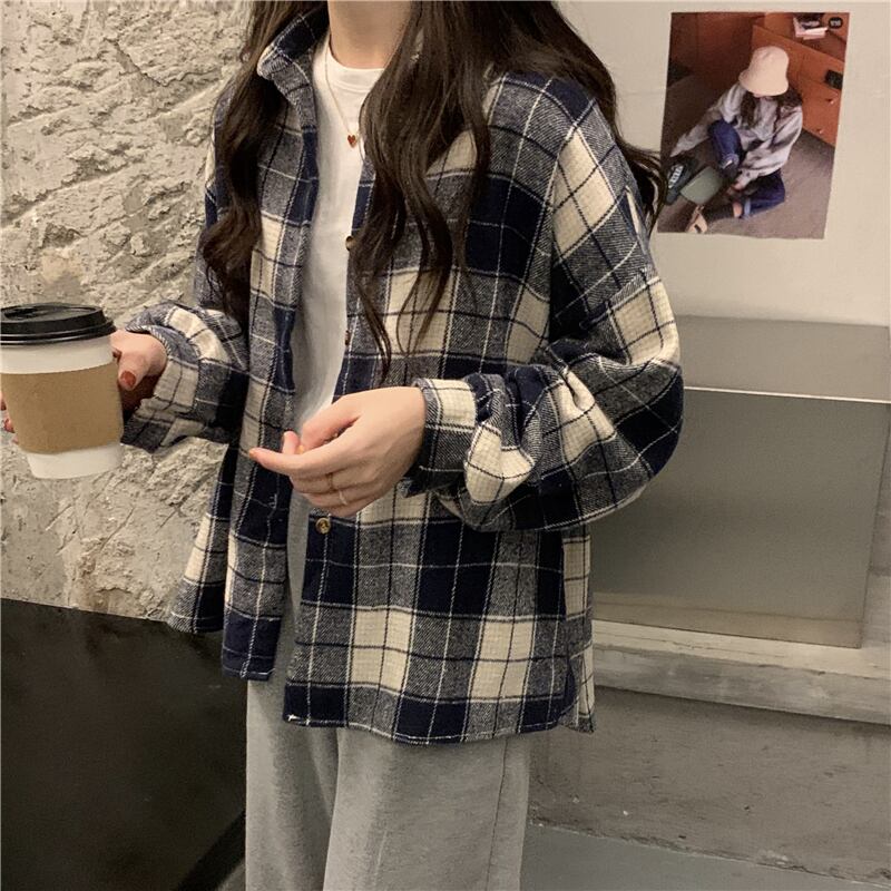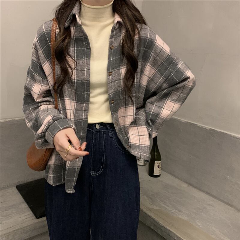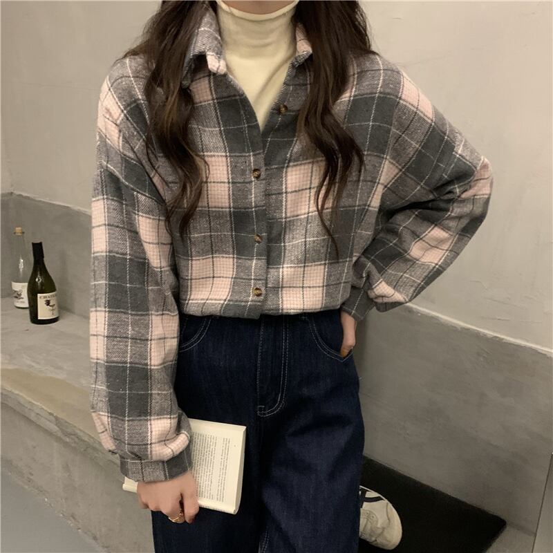 厚みのある起毛チェック柄シャツジャケット女性の秋と冬のゆるい BF スタイルシャツ 2022 新しいオールマッチカジュアルトップ オータム 秋物 ウィンター 冬物 7460057844320668 | framboise21