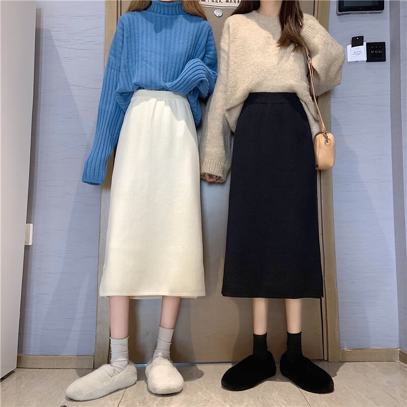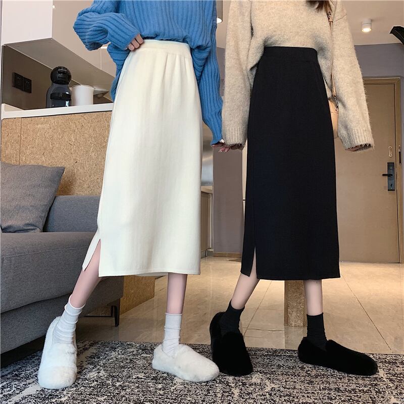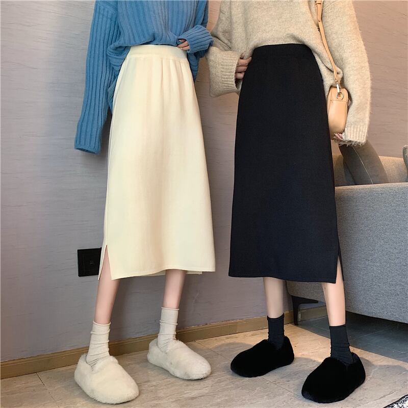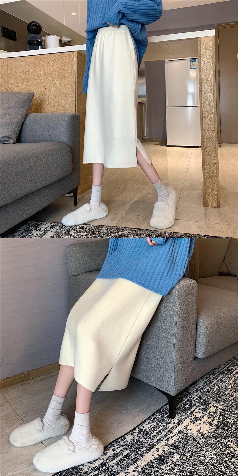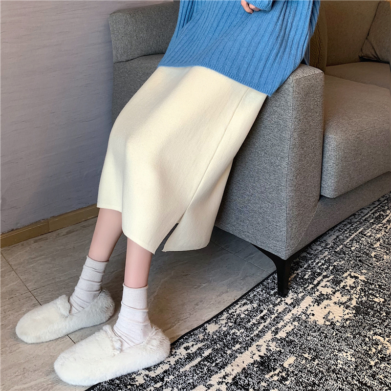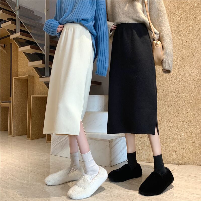 オフホワイト ニットスカート レディース 秋冬 ハイウエスト バッグ ヒップ Aライン ロングスカート ハーフスカート 小さめ ミドル丈 秋冬 ハイウェスト オータム 秋物 ウィンター 冬物 7460033921886161 | framboise21