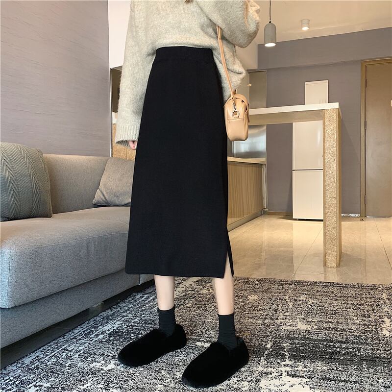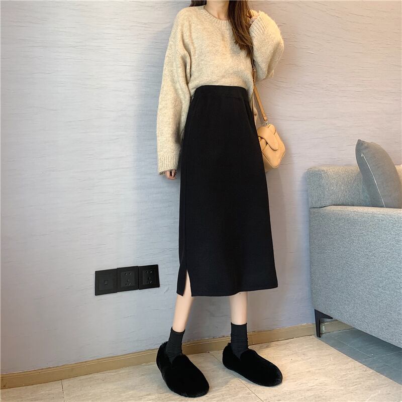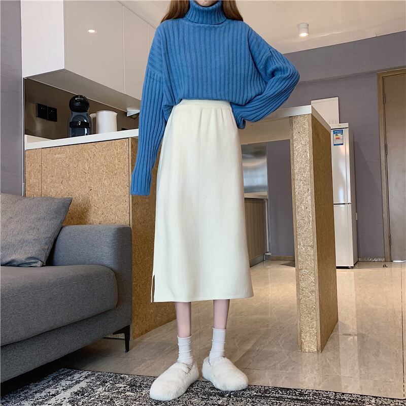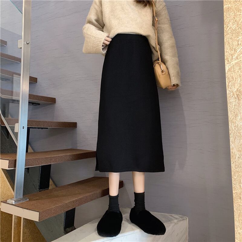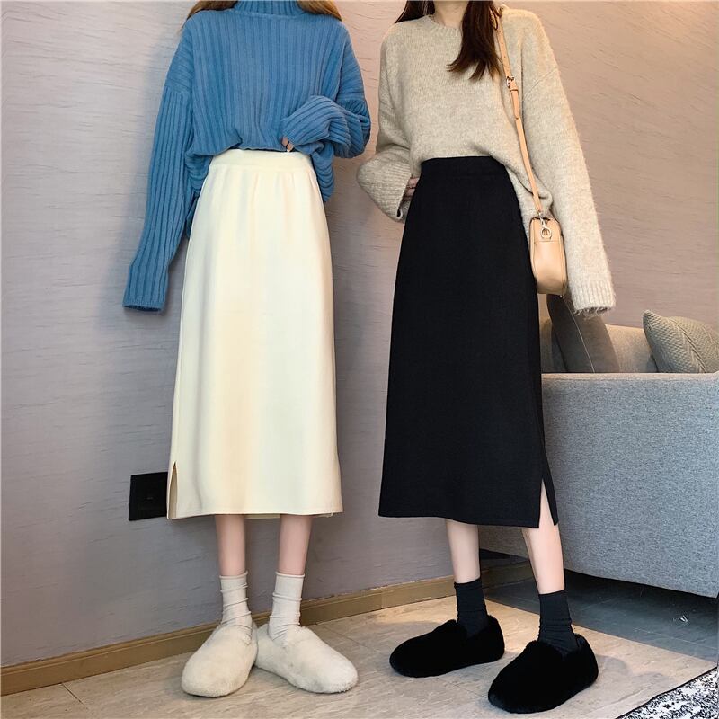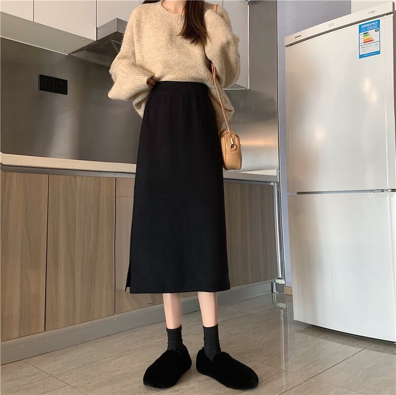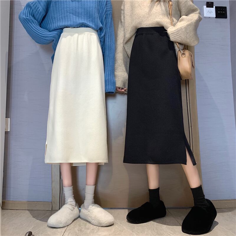 オフホワイト ニットスカート レディース 秋冬 ハイウエスト バッグ ヒップ Aライン ロングスカート ハーフスカート 小さめ ミドル丈 秋冬 ハイウェスト オータム 秋物 ウィンター 冬物 7460033921886161 | framboise21