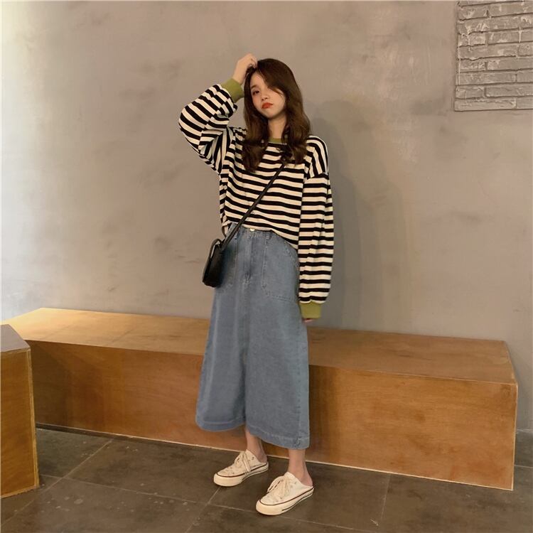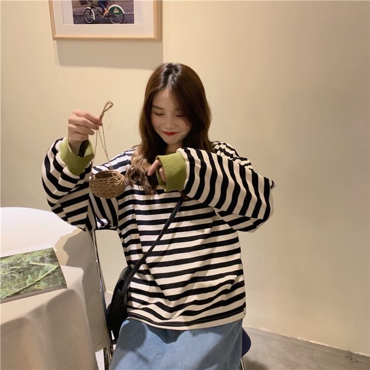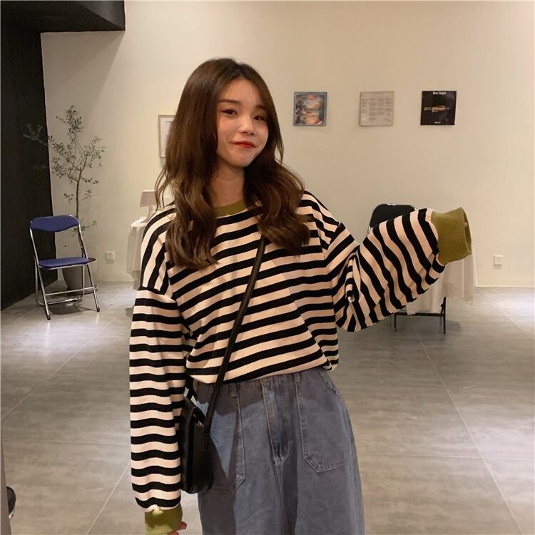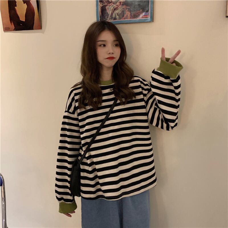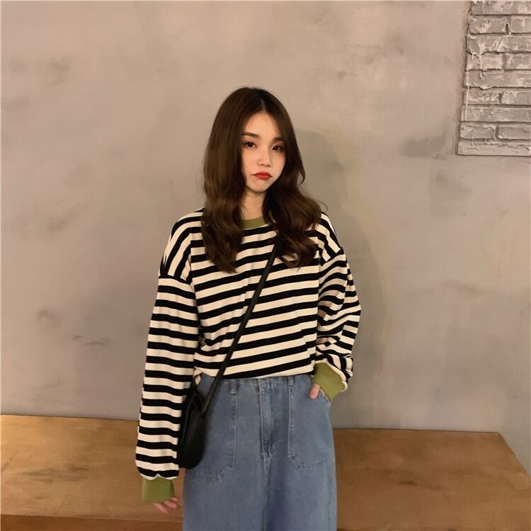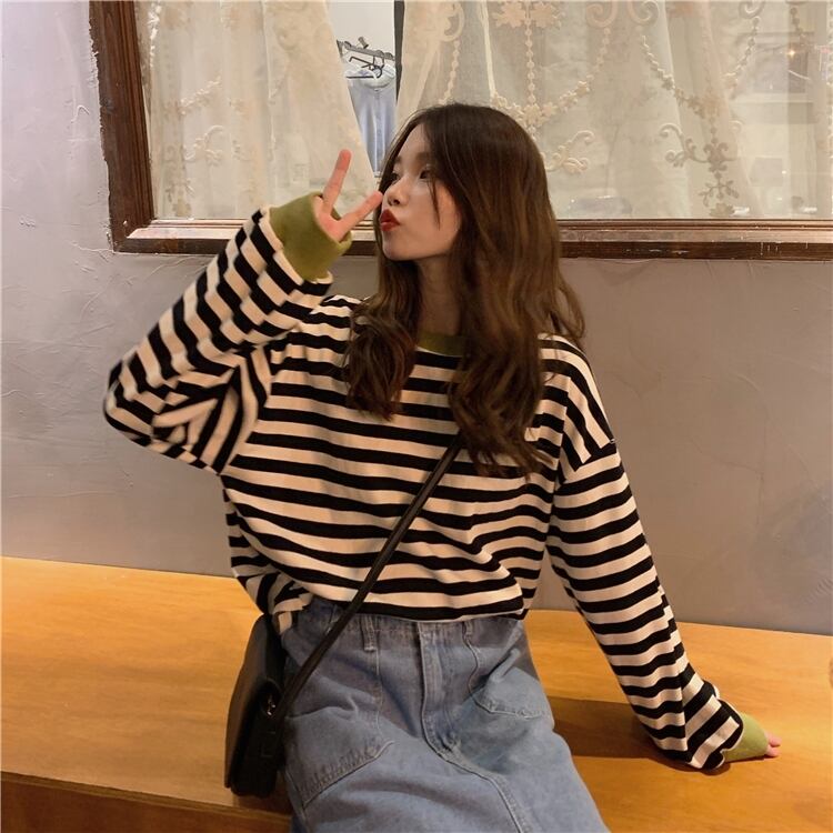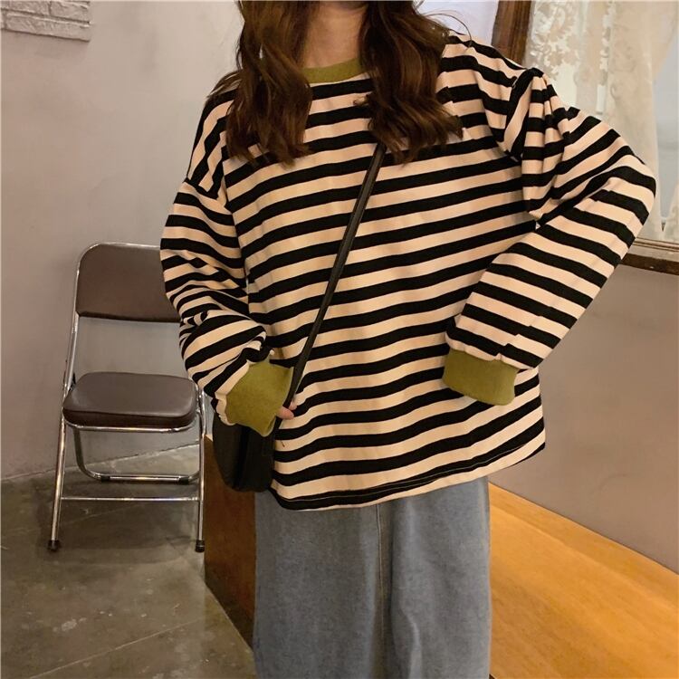 2022 初秋の新ゆるくて薄いネット赤ファッションラウンドネックプルオーバーストライプステッチ長袖セータートップ女性の潮 ロング レッド オータム 秋物 Oネック 7460073574454629 | framboise21