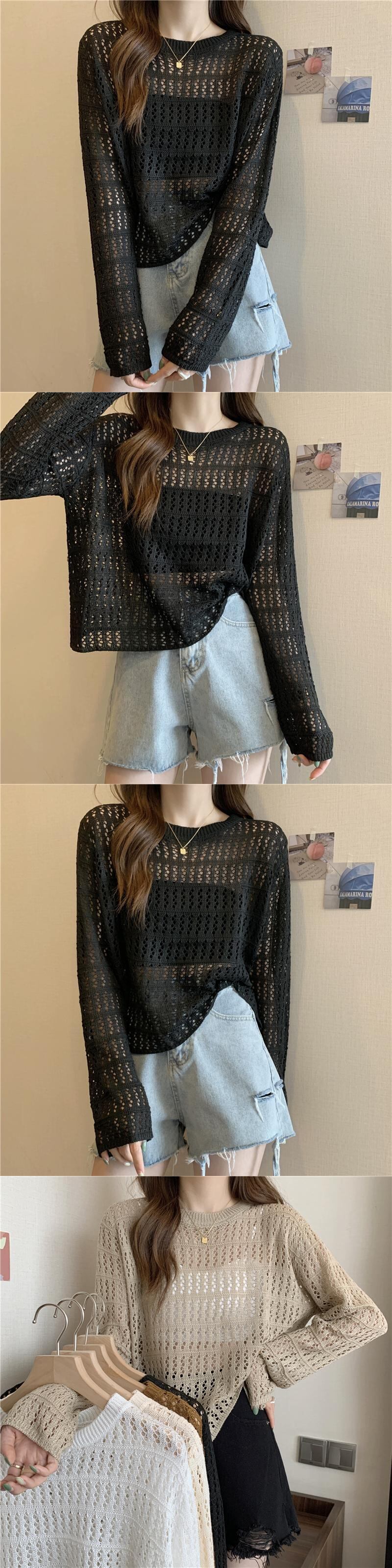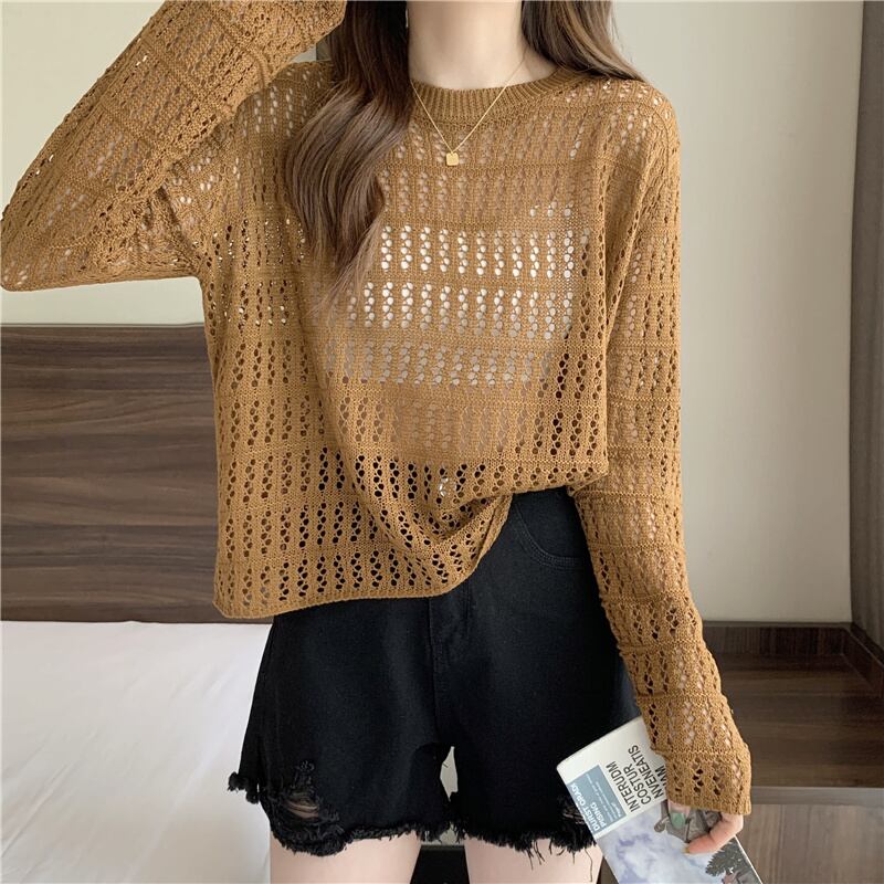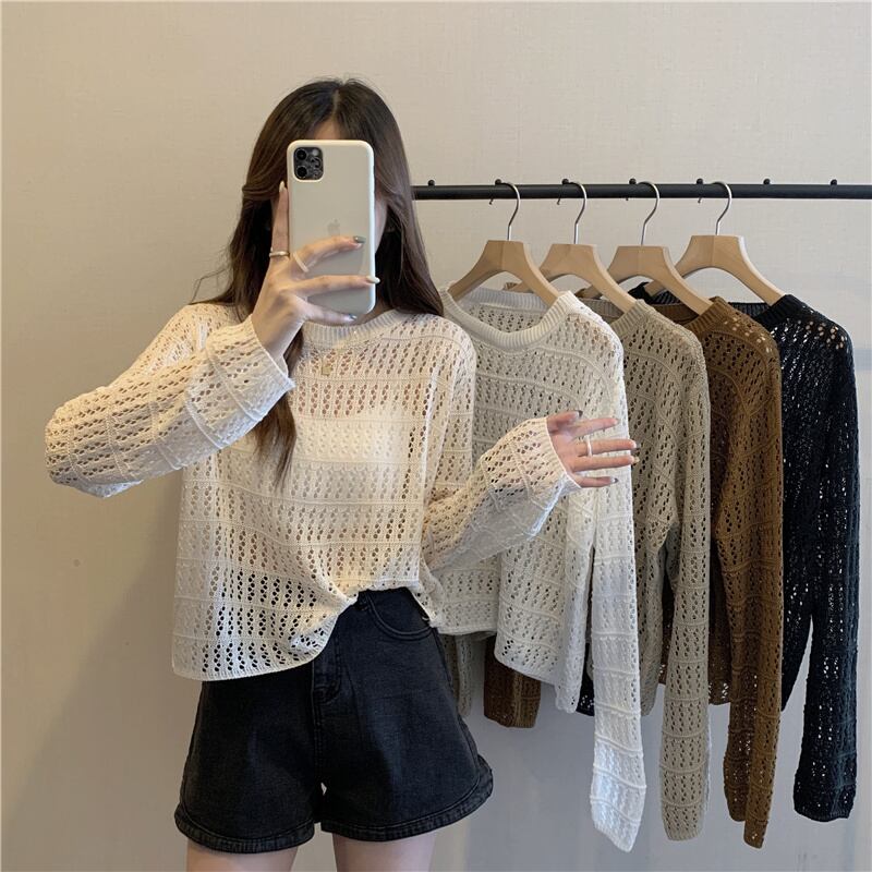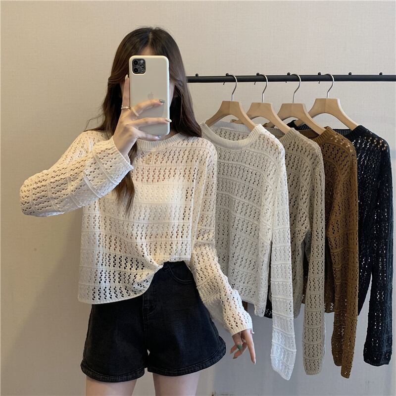 ラウンドネック中空ニットセーター女性のバージョン 2022 夏薄いセクション日焼け止めアウターブラウス緩い薄いトップ サマー 夏物 Oネック 7460046084190348 | framboise21