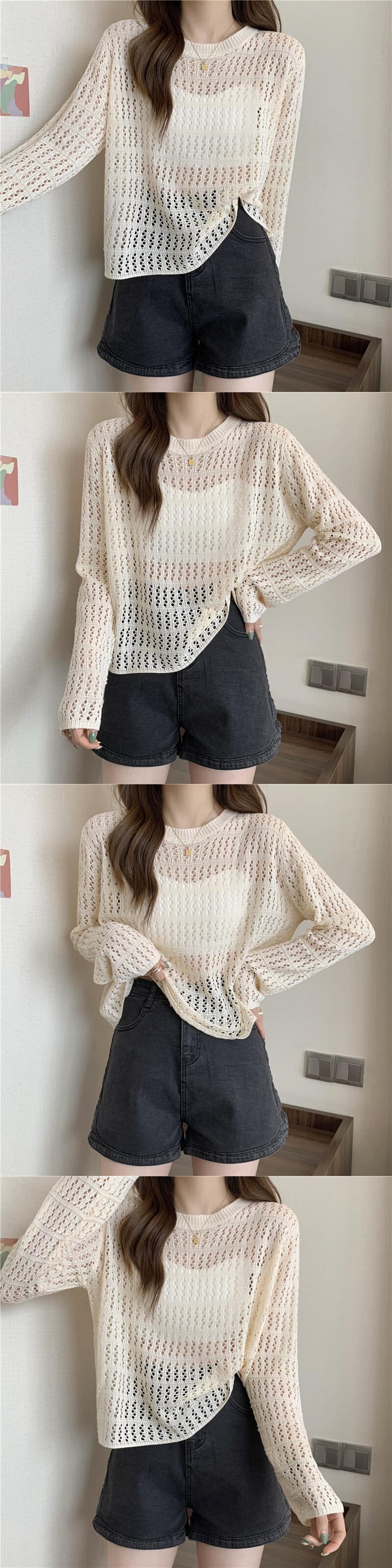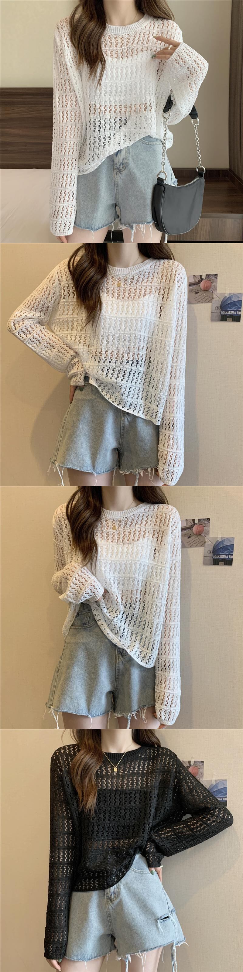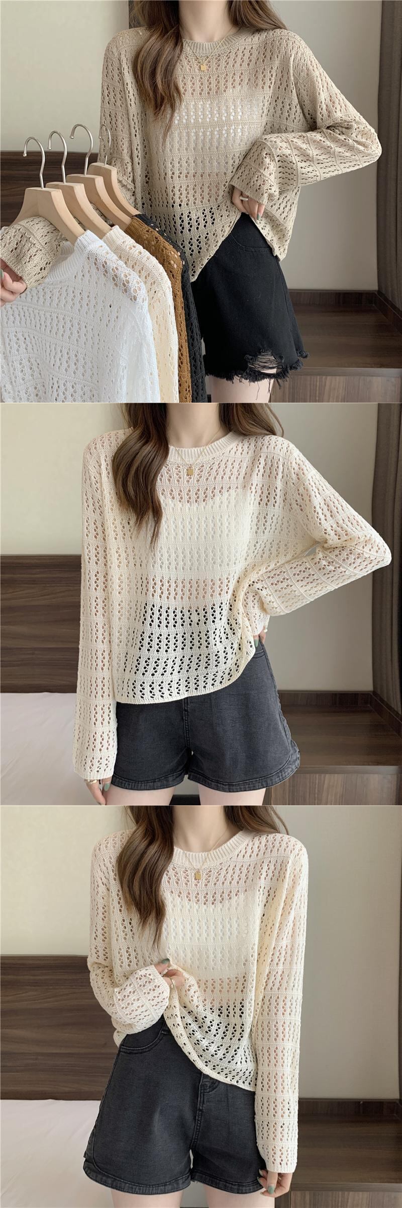 ラウンドネック中空ニットセーター女性のバージョン 2022 夏薄いセクション日焼け止めアウターブラウス緩い薄いトップ サマー 夏物 Oネック 7460046084190348 | framboise21