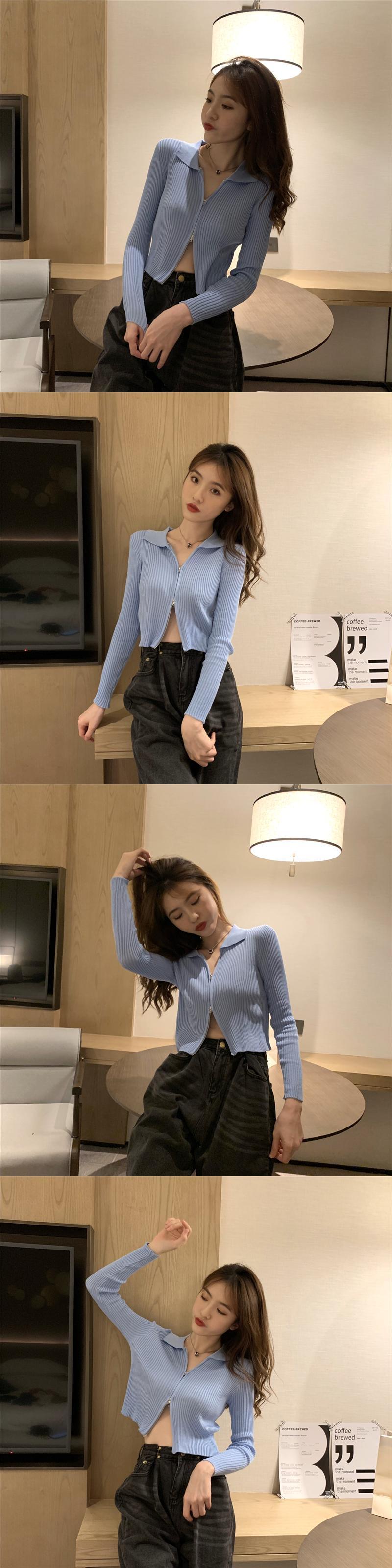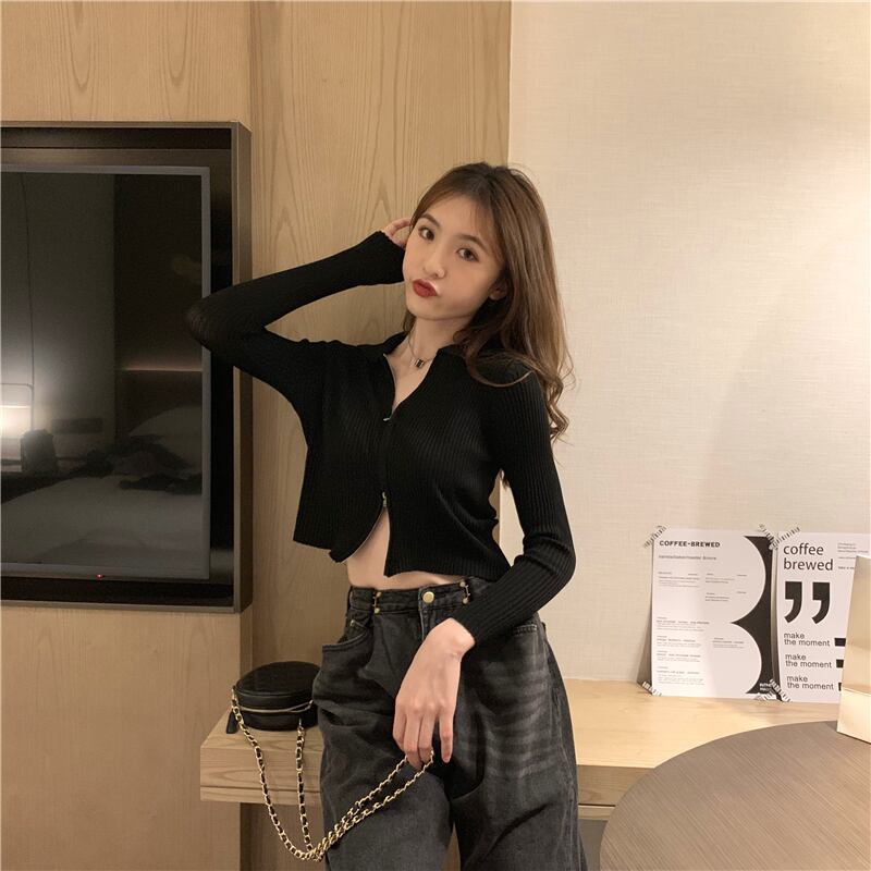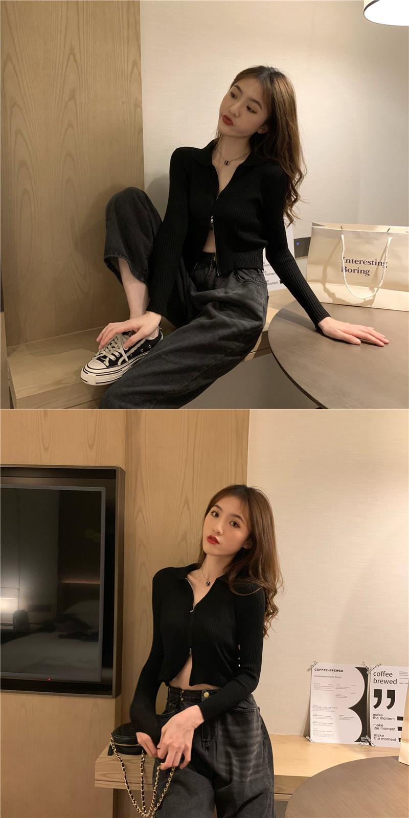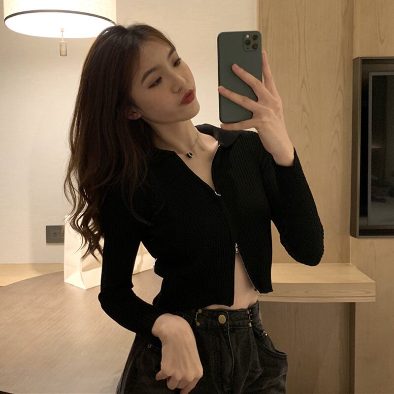秋の女性ネット赤ファッション バージョン イン セクシーな双頭ジッパー襟長袖ニット ショート コート カーディガン トップ ロング レッド オータム 秋物 7460045609889752 | framboise21
