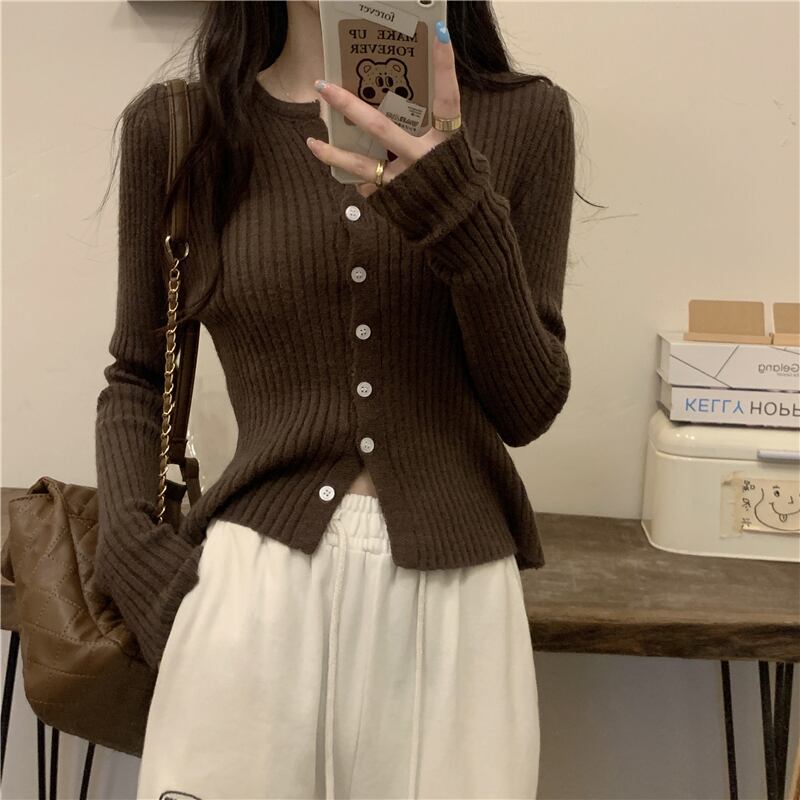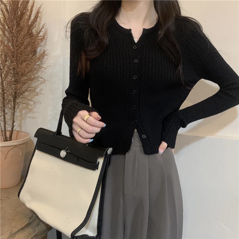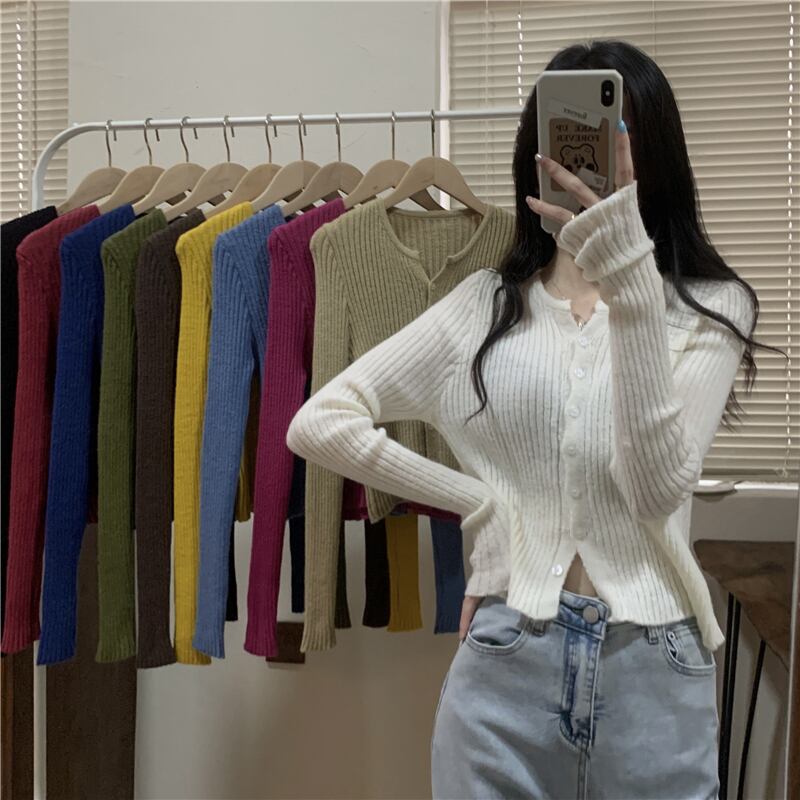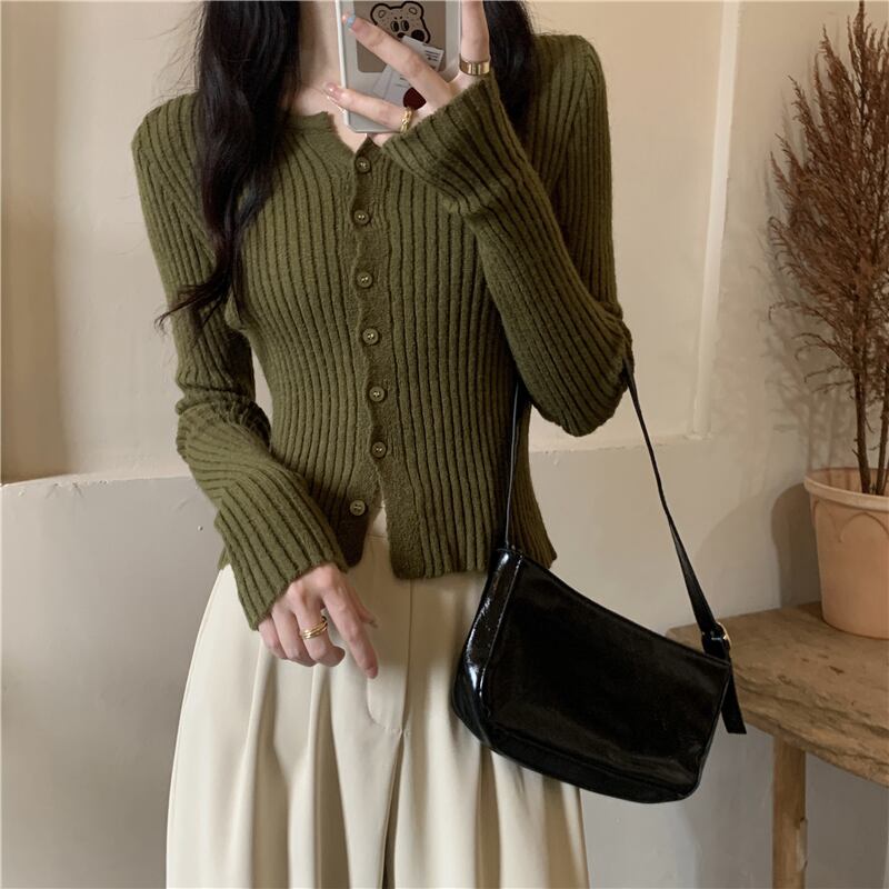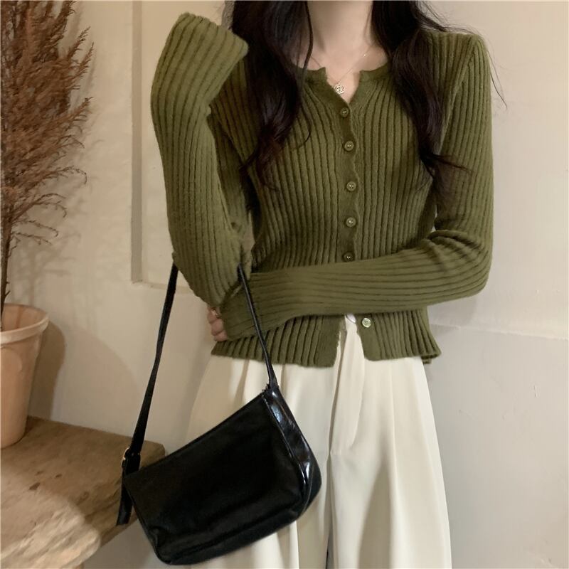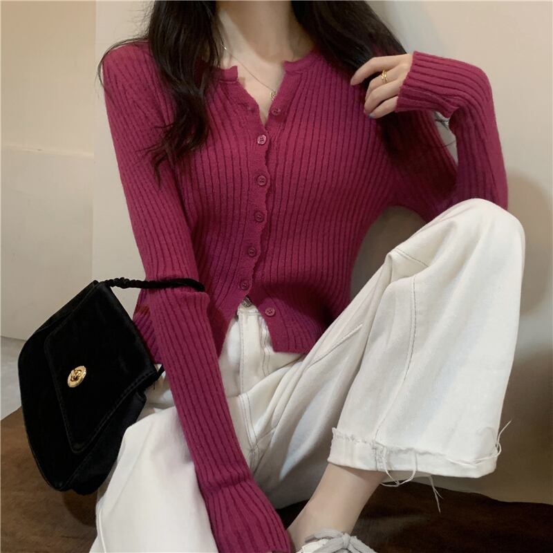 無地ボトムスニットカーディガンレディース2022年初秋新作ソフトワキシースリムスリムセータースモールトップインナーウェア オータム 秋物 ソリッドカラー 746004403045518 | framboise21