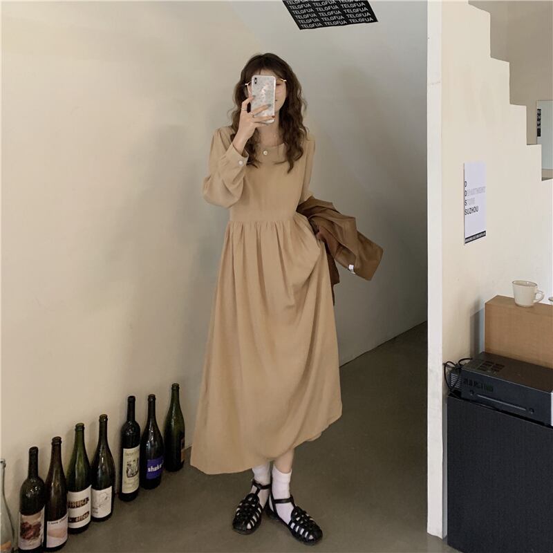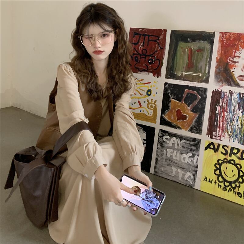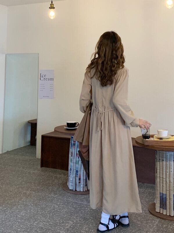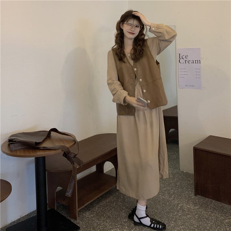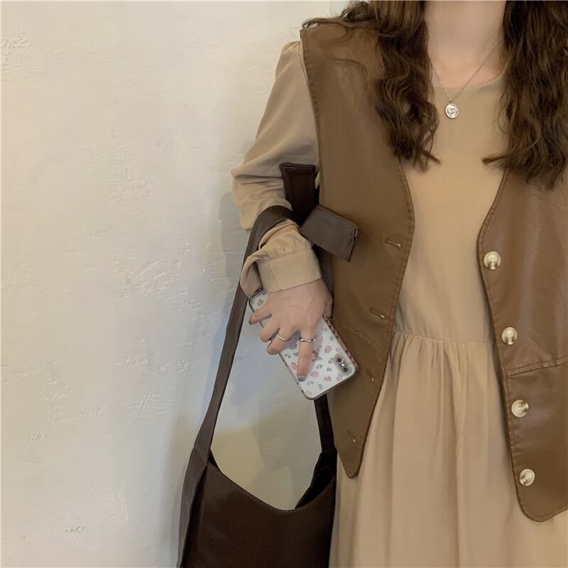 色:アプリコットドレス,コーヒーカラーのレザーベスト