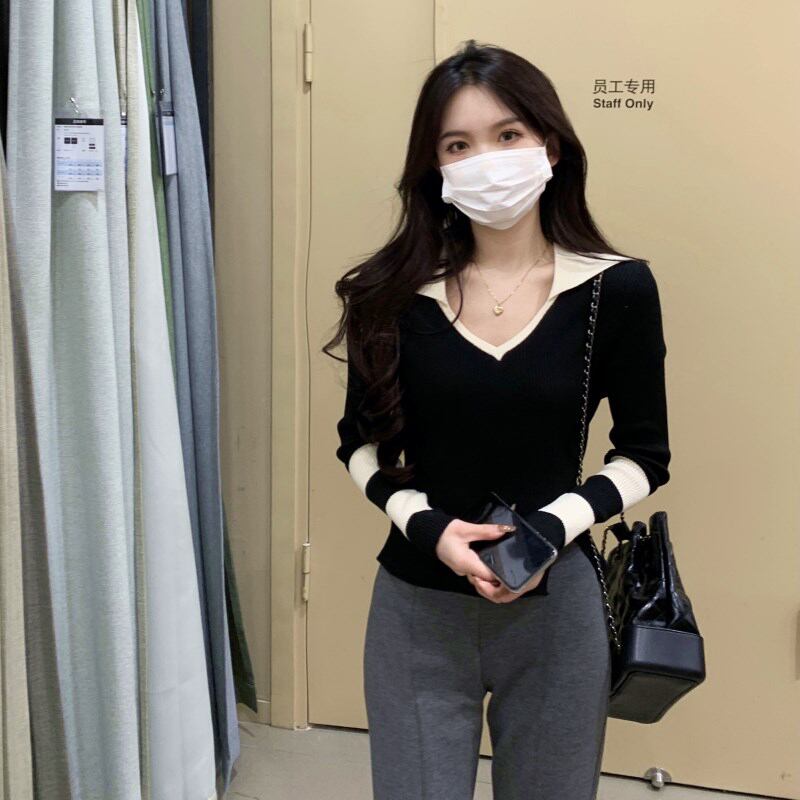 春と秋の婦人服 2022 新しいニットウェア ファッション黒ボトムス シャツ ウエスタン スタイル ハイエンド ショート トップ ブラック スプリング 春物 オータム 秋物 7460074031668459 | framboise21