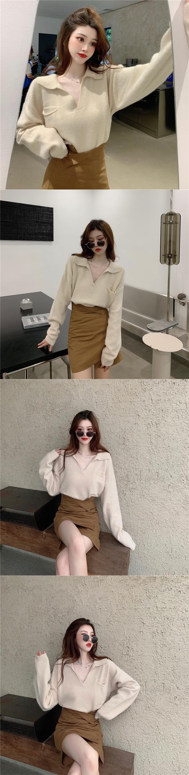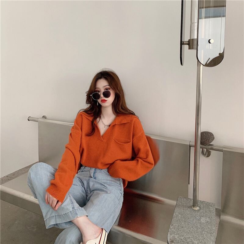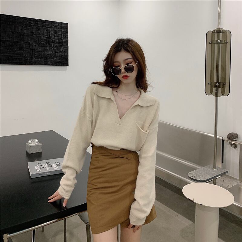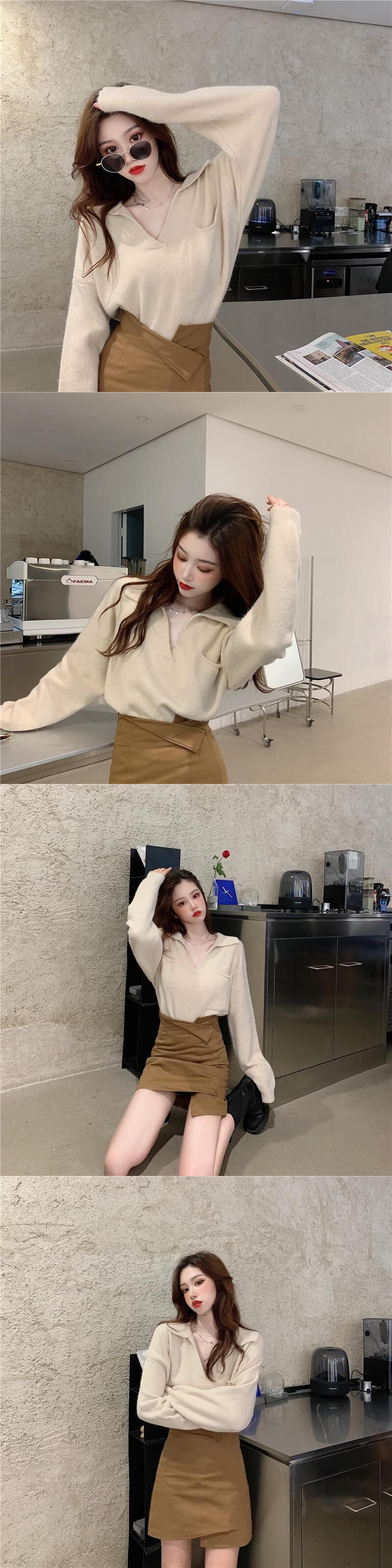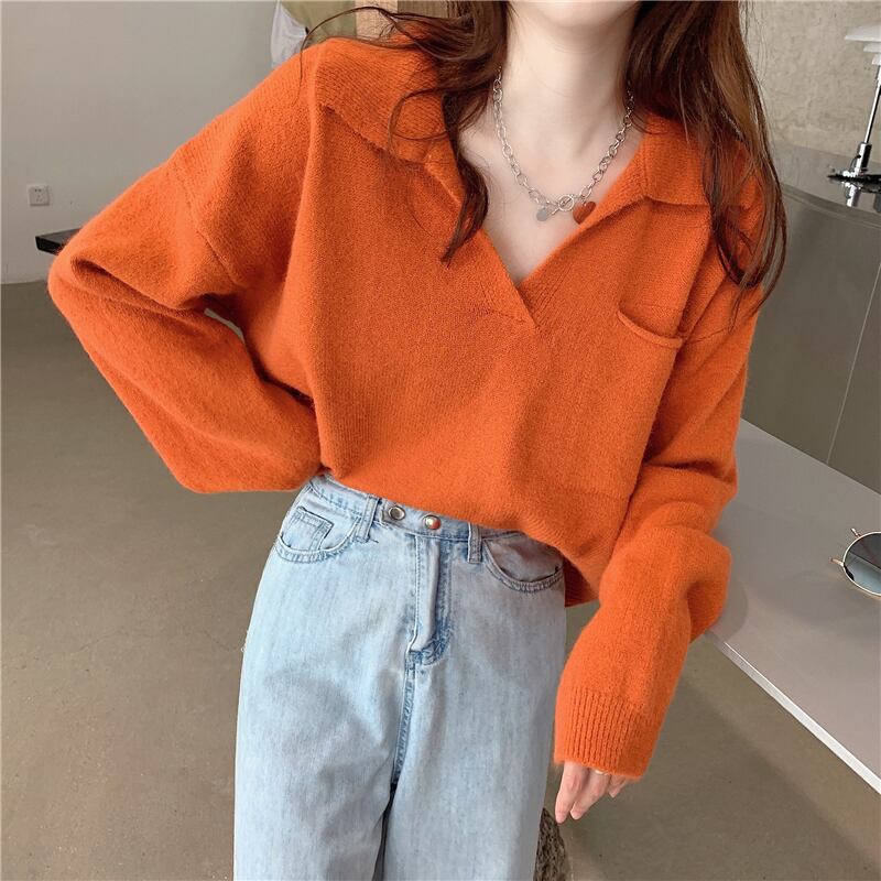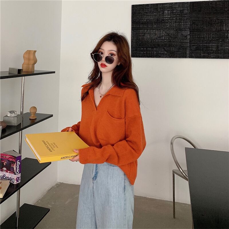 ショート プルオーバー セーター レディース 秋冬 レトロ 怠惰なスタイル ゆったり アウター 優しい ニット ポロシャツ 長袖 トップス トレンド ロング オータム 秋物 ウィンター 冬物 74600457300025 | framboise21