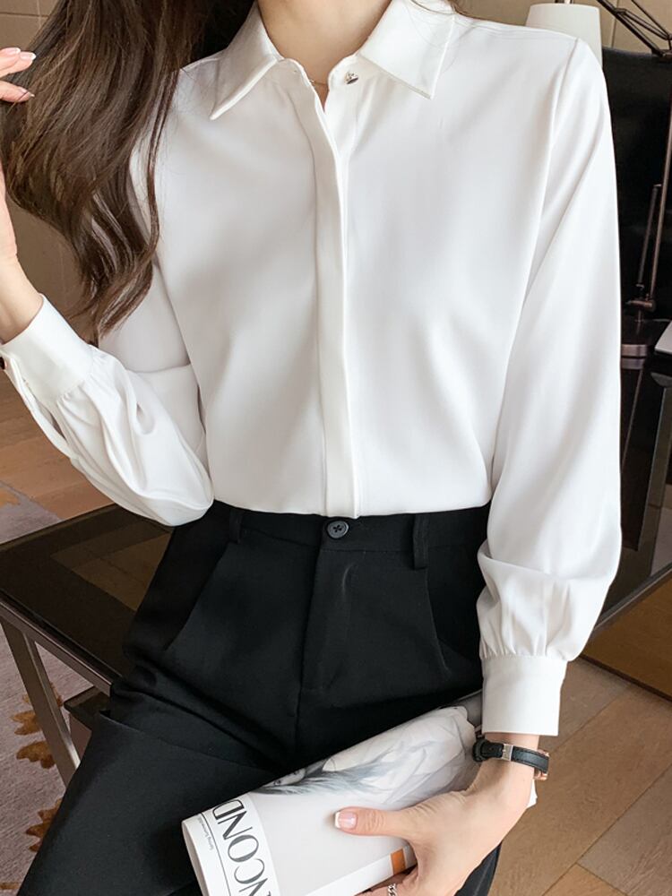 白いプロのシャツの女性の 2022 年秋の新しいデザインの西洋スタイルのゆったりとしたファッション長袖シャツの女性のトップ ロング ホワイト オータム 秋物 7460091834247560 | framboise21