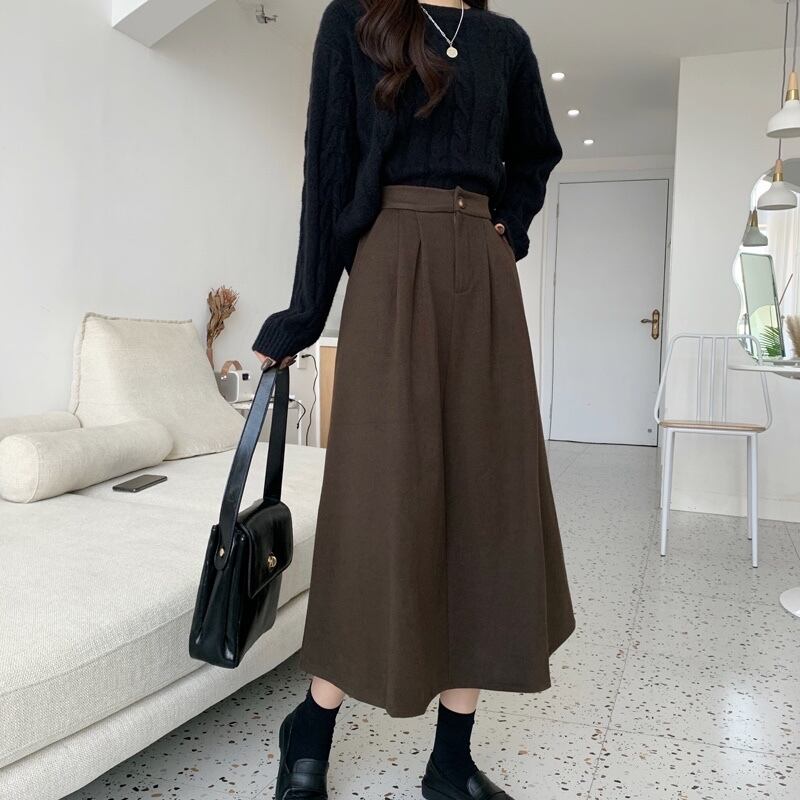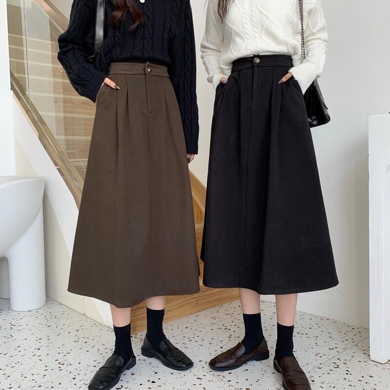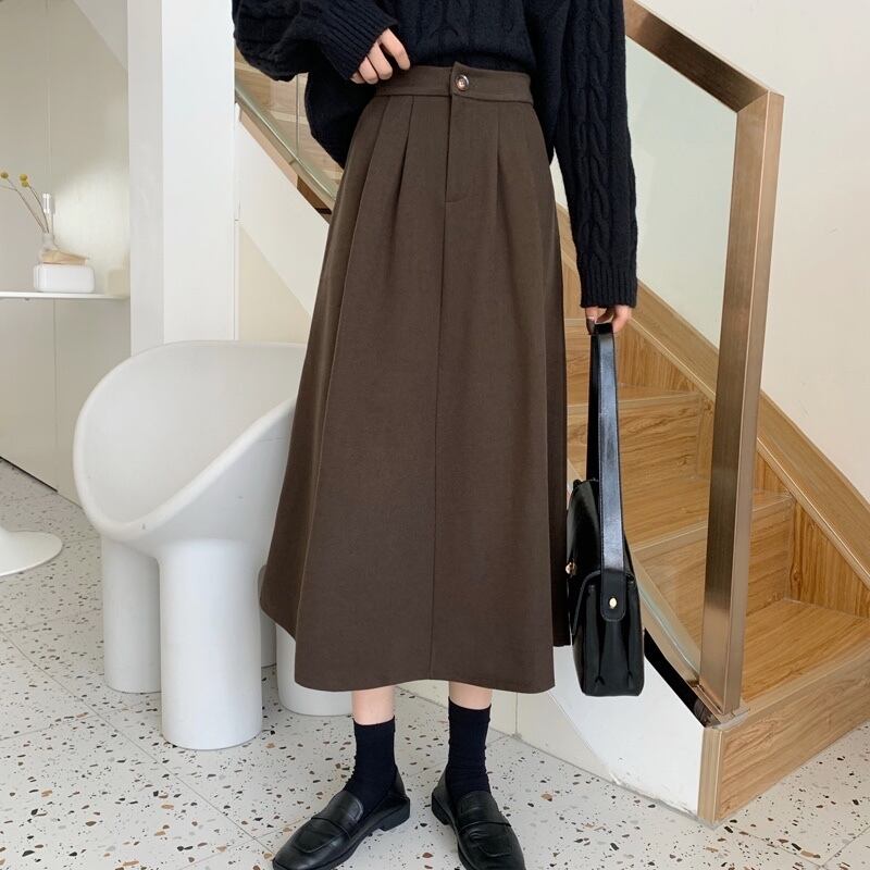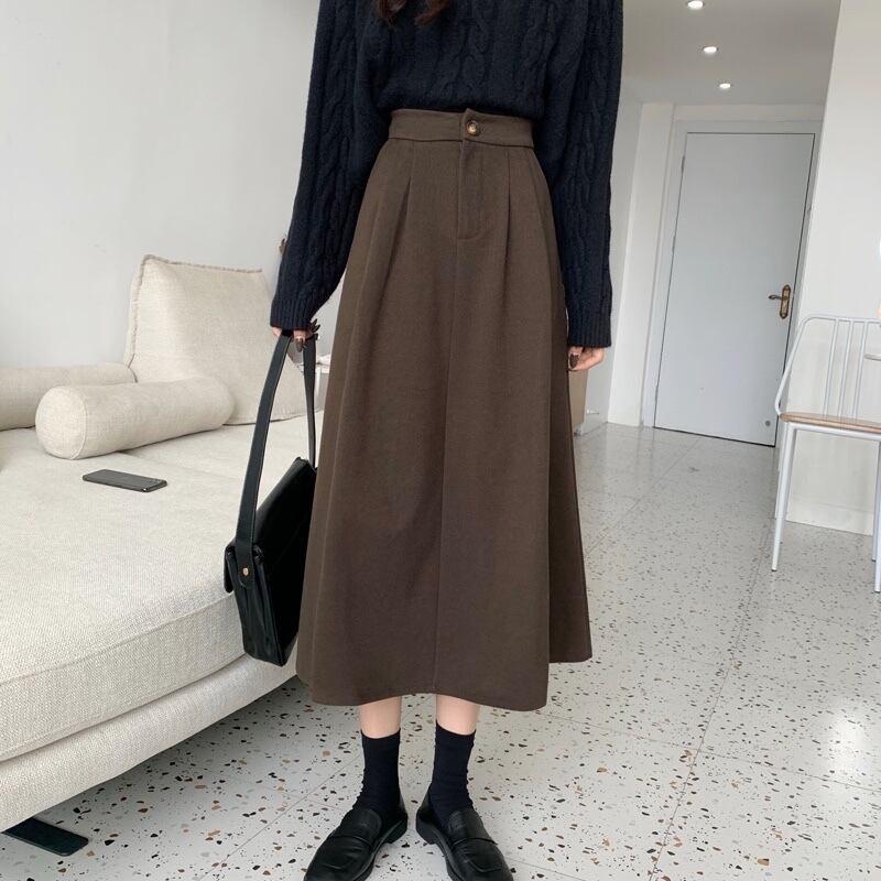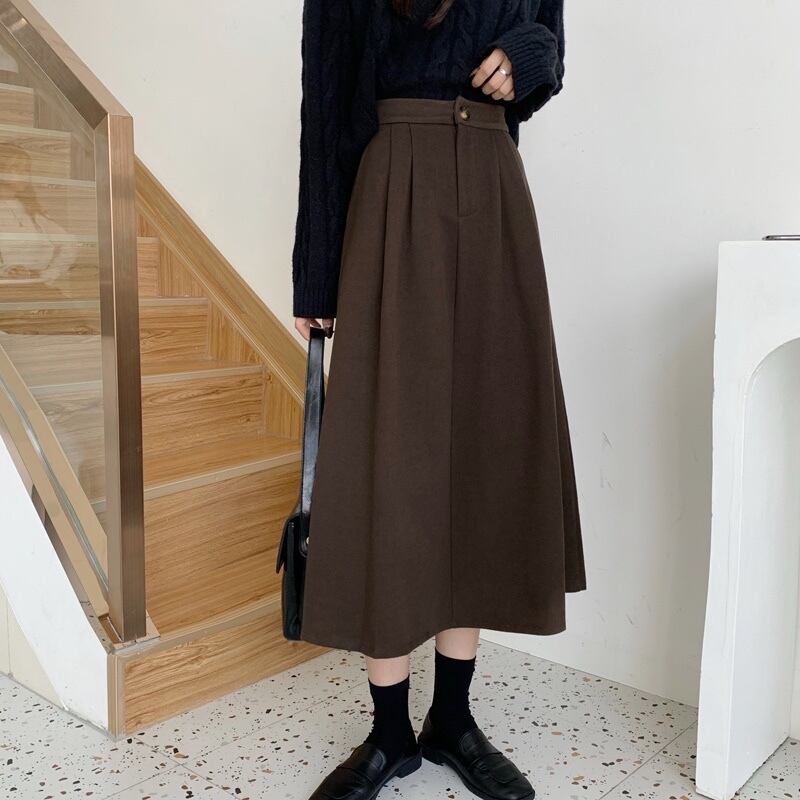 冬はセーター付き、コーヒー色のウールのスカート、女性の秋冬のAラインのロングスカート、ミドル丈のスカート、傘のスカート、冬の小さなスカート オータム 秋物 ウィンター 冬物 7460057673427787 | framboise21