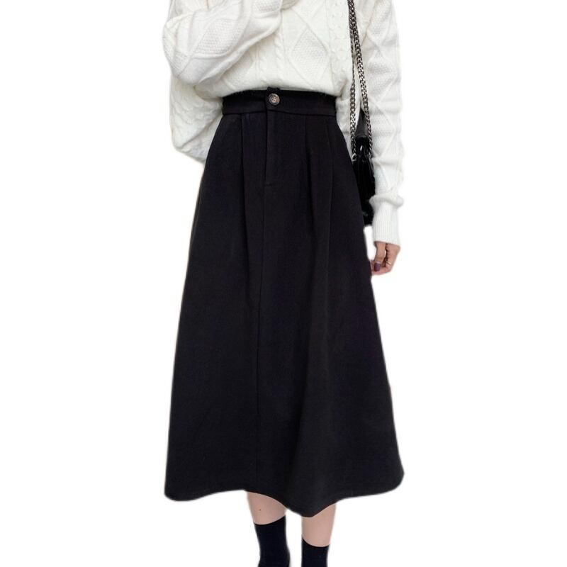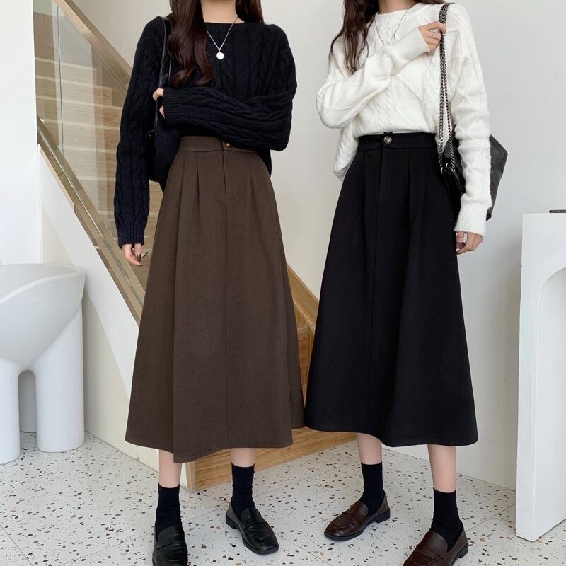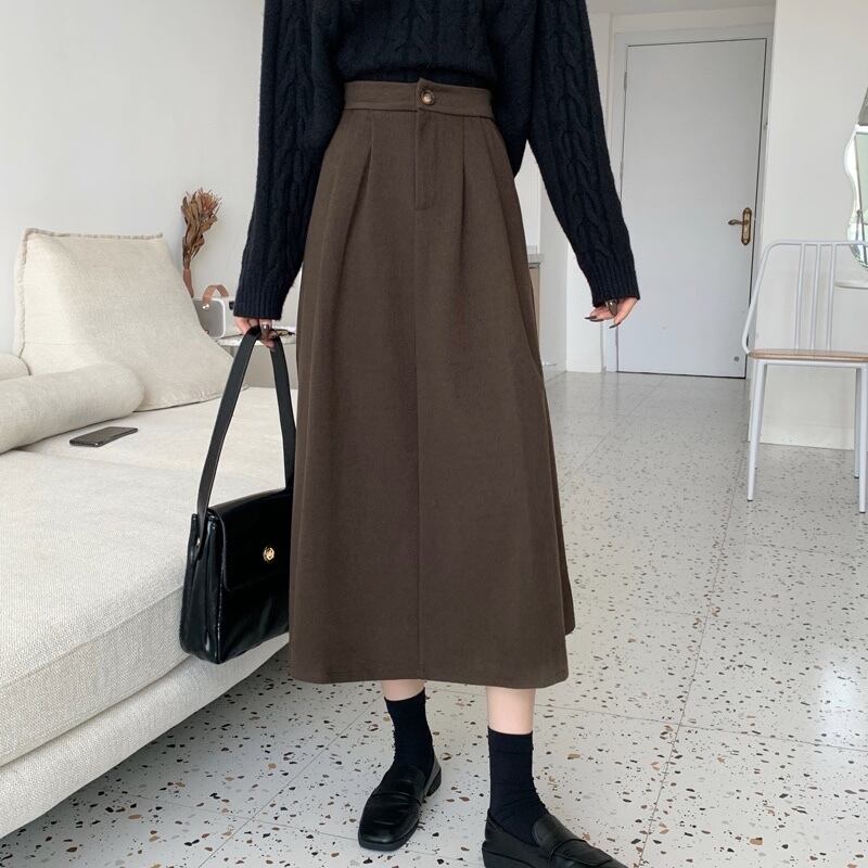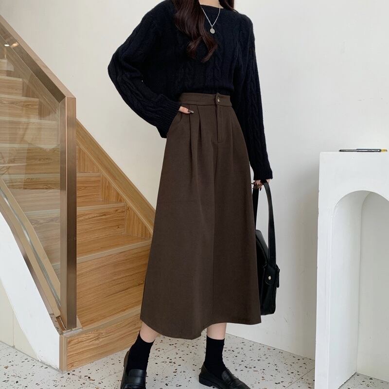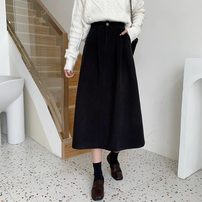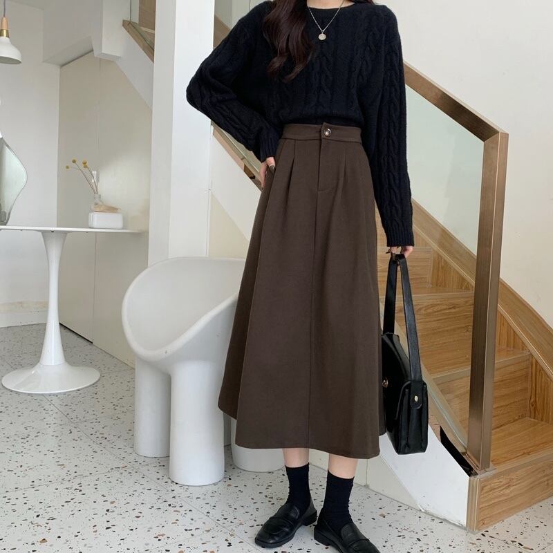冬はセーター付き、コーヒー色のウールのスカート、女性の秋冬のAラインのロングスカート、ミドル丈のスカート、傘のスカート、冬の小さなスカート オータム 秋物 ウィンター 冬物 7460057673427787 | framboise21