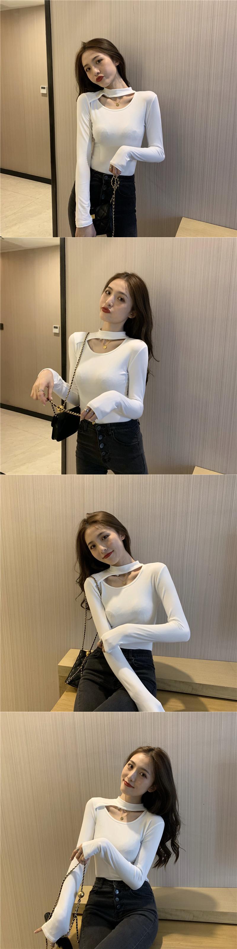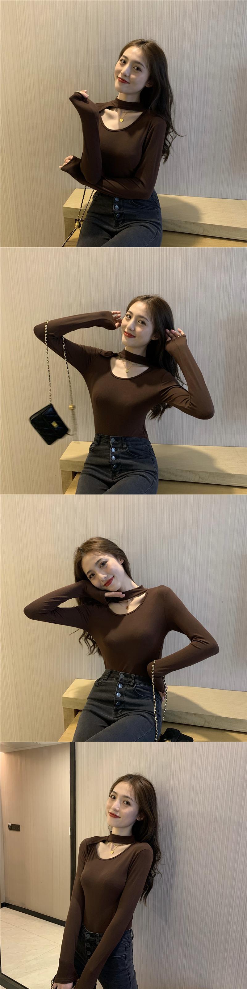 ハーフタートルネックボトムスシャツ秋トップ女性の新しい吊りネックニッチデザインのセクシーな中空スリム長袖 Tシャツ ロング オータム 秋物 7460060775988833 | framboise21