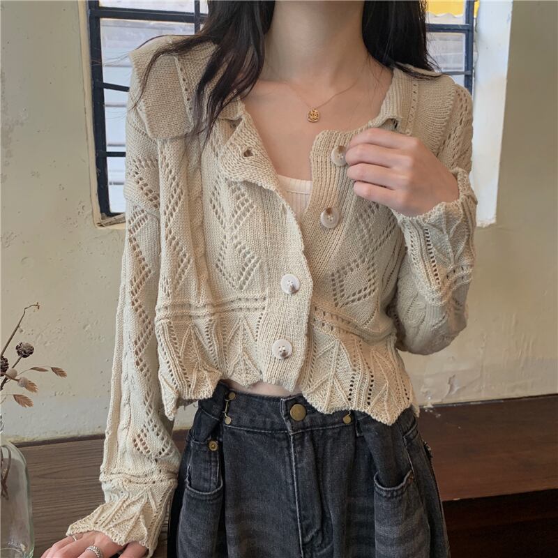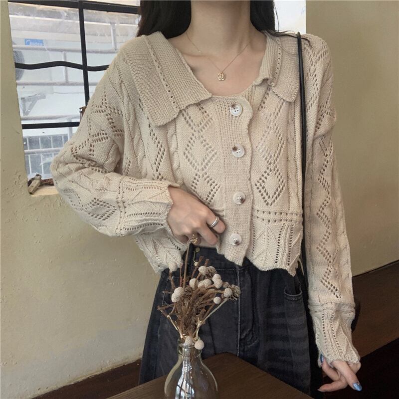 小さな新鮮で甘いトップス初春の女性のニットカーディガンショート中空ニッチフレンチセータースモールコート 大人ガーリー スウィート キュート カジュアル スプリング 春物 746009490611572 | framboise21