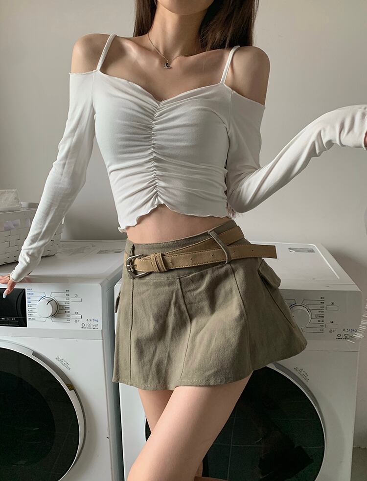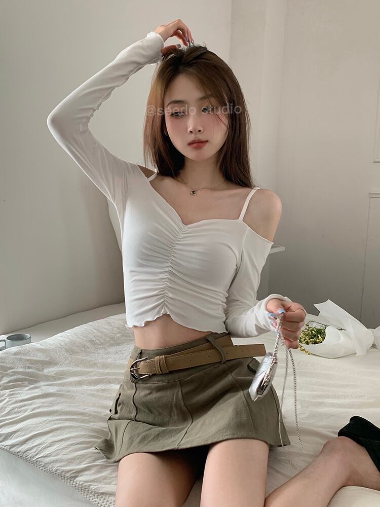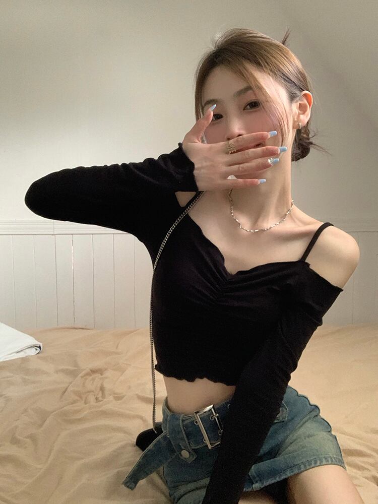 長袖 甘辛ワンショルダー スリング フィッシュボーン セクシー Tシャツ シック ショート 甘辛 ジャズ トップス 薄手 秋 ロング 大人ガーリー スウィート キュート カジュアル オータム 秋物 7460099742931917 | framboise21