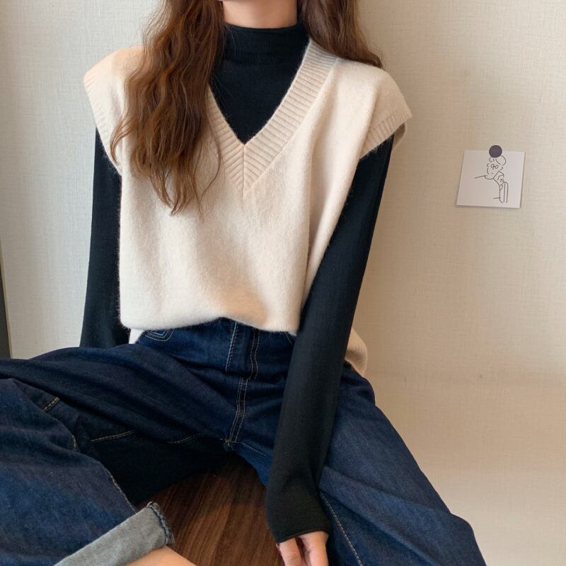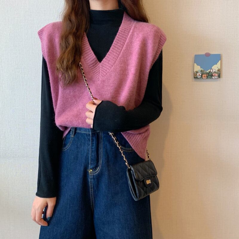 ニットベスト ベスト レディース 秋 洋風 怠惰なスタイル ゆったり アウター Vネック セーター レイヤード ノースリーブ ベスト トップス レッド オータム 秋物 7460017791575783 | framboise21