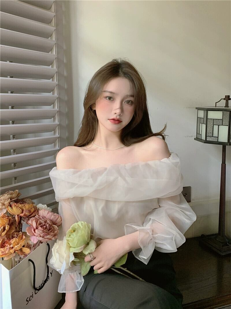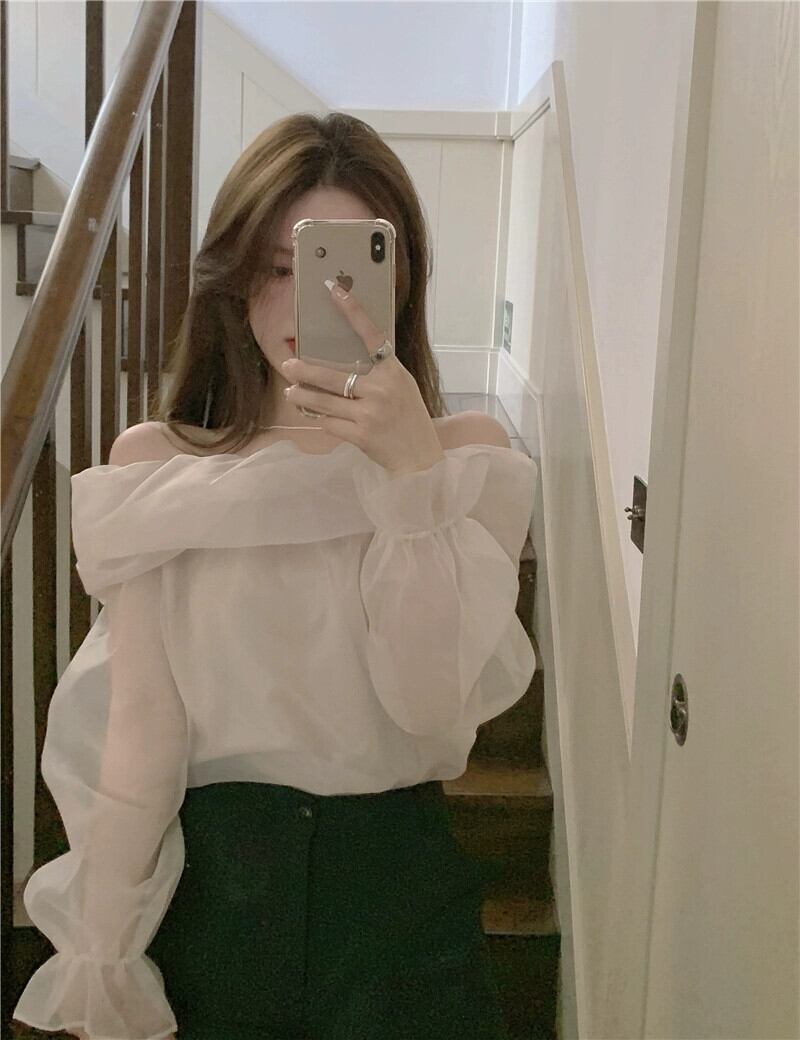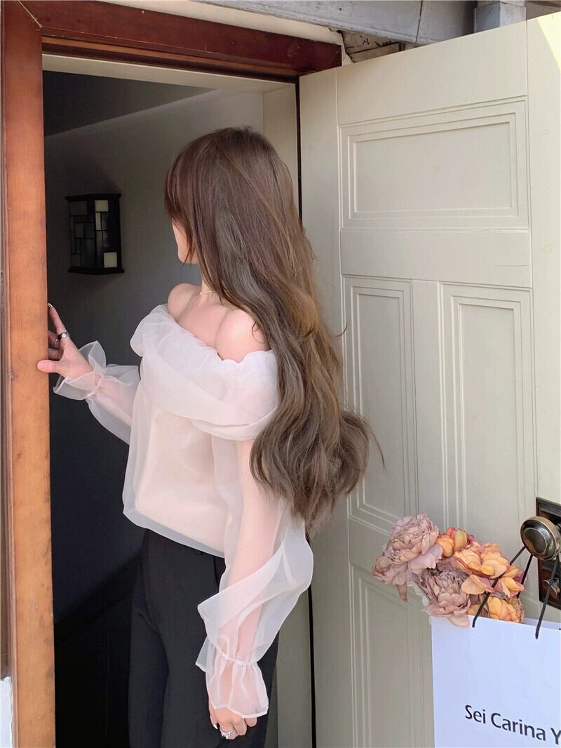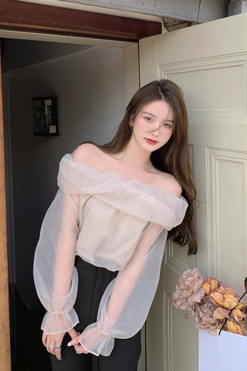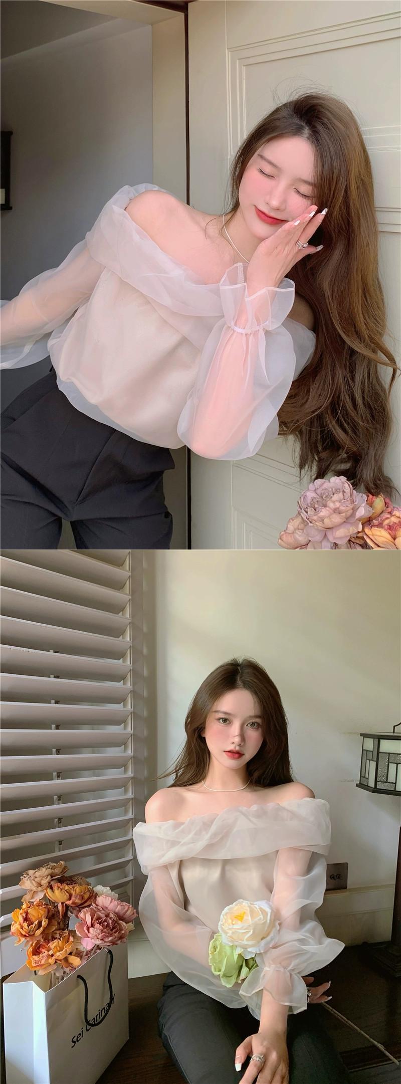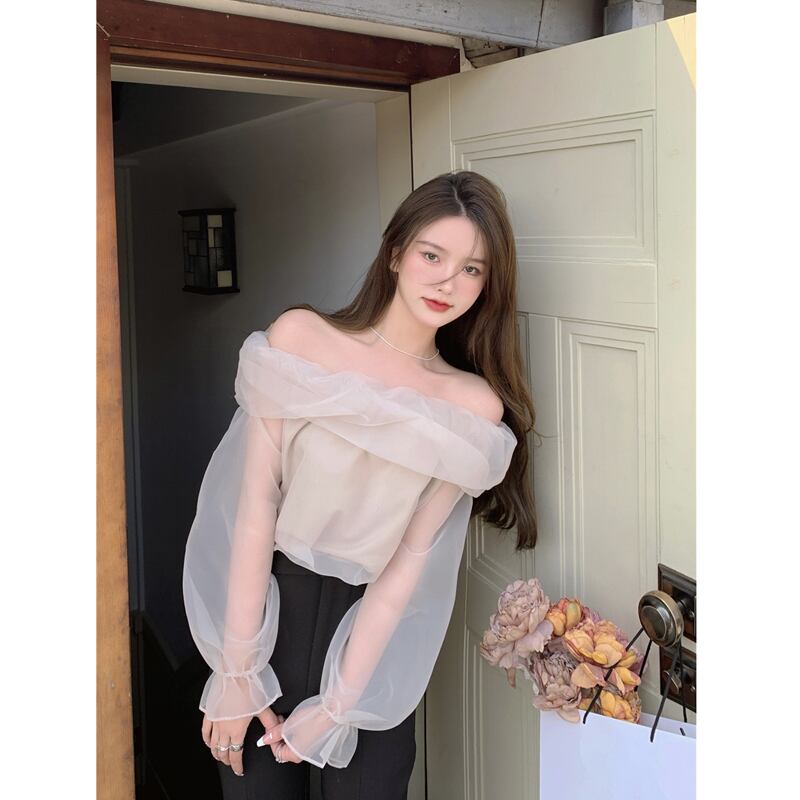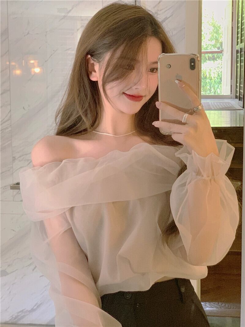 ワンショルダーメッシュトップレディース春夏フレンチデザイン甘いオフショルダーレース長袖シャツショートシャツトレンド ロング 大人ガーリー スウィート キュート カジュアル スプリング 春物 サマー 夏物 7460048755471874 | framboise21