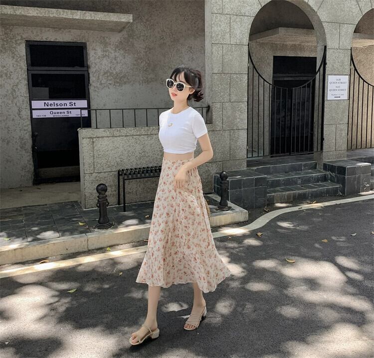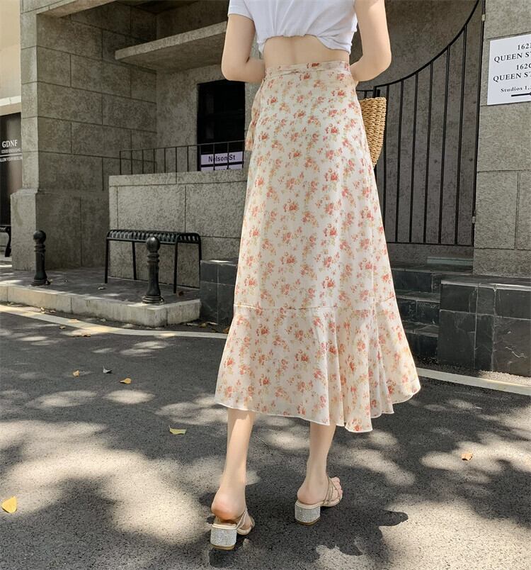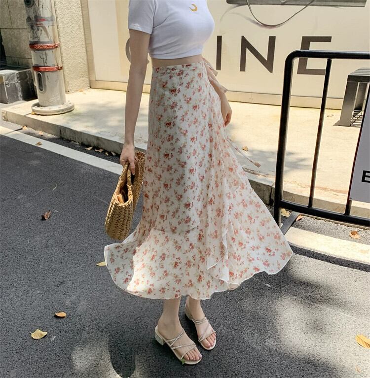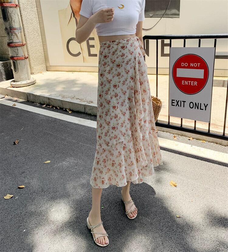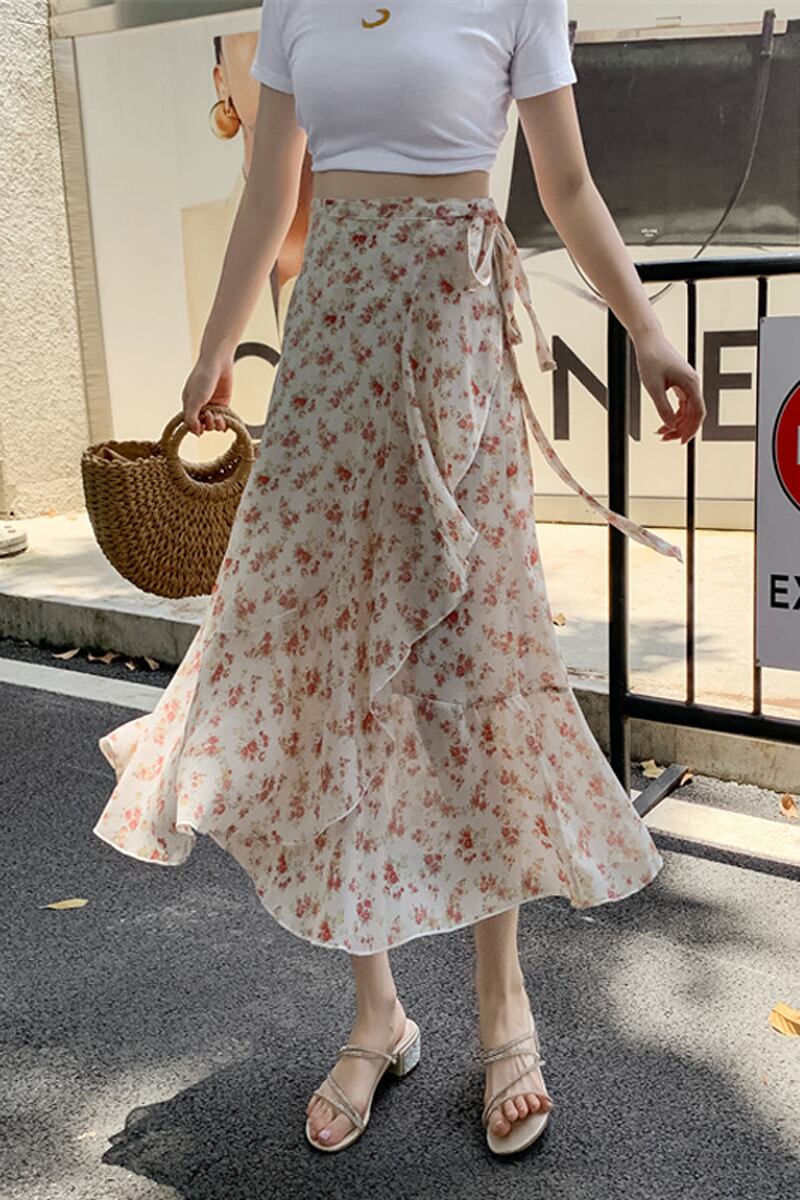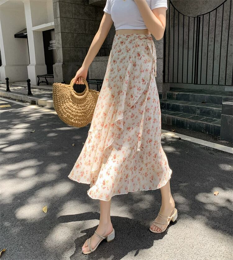 ワンピース花柄スカート レディース 夏 ハイウエスト A ライン スカート デザインは薄くて汎用性の高いミドル丈のシフォン スカートに見えます ハイウェスト サマー 夏物 Aライン 7460063300897991 | framboise21